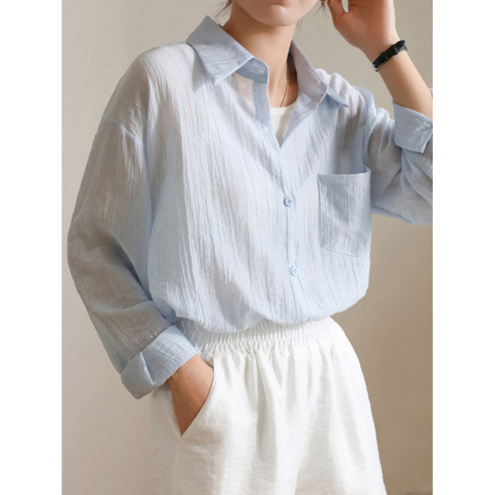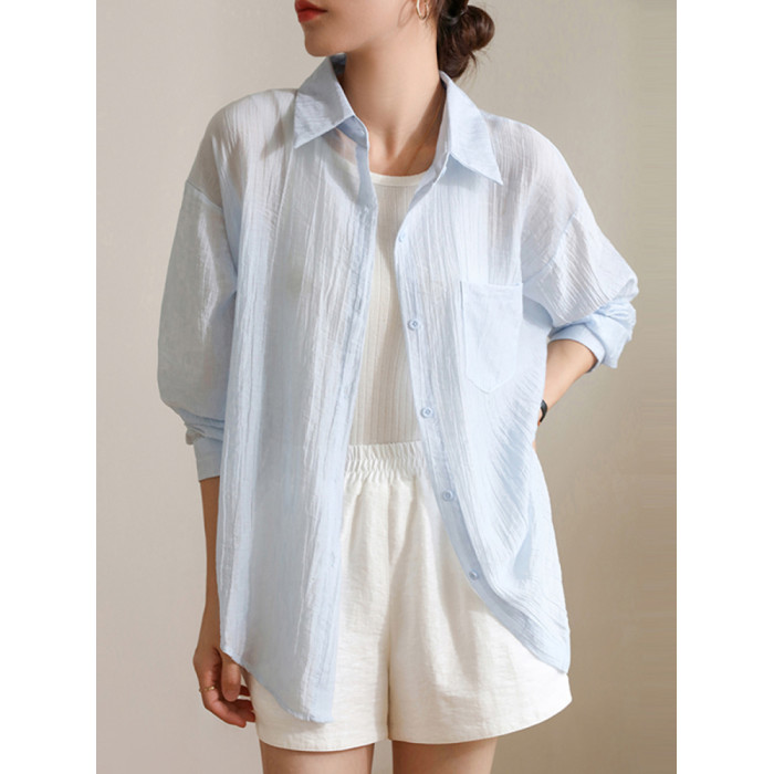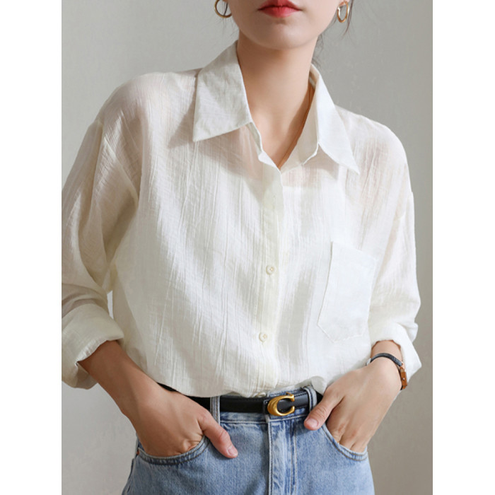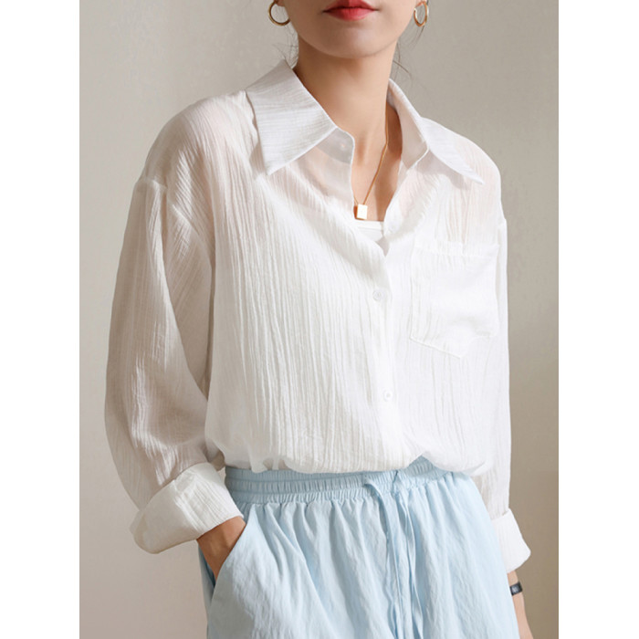 拉夏貝爾白色天絲防曬襯衫女夏季薄款2026年新款寬鬆冰絲開衫外搭