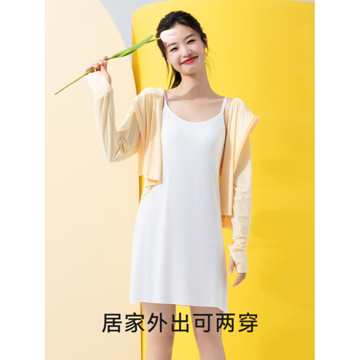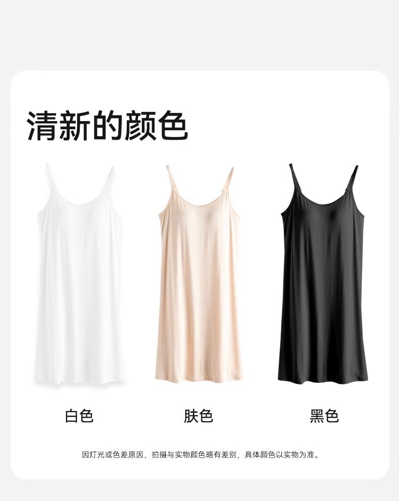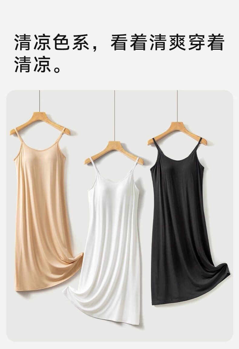 莫代爾吊帶睡裙女帶胸墊2025新款夏季寬鬆涼感薄款大碼打底內襯裙