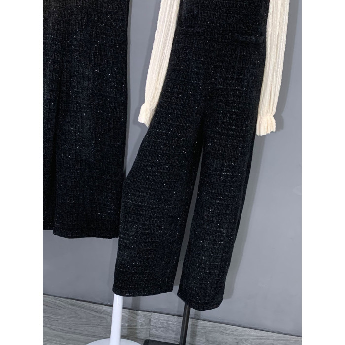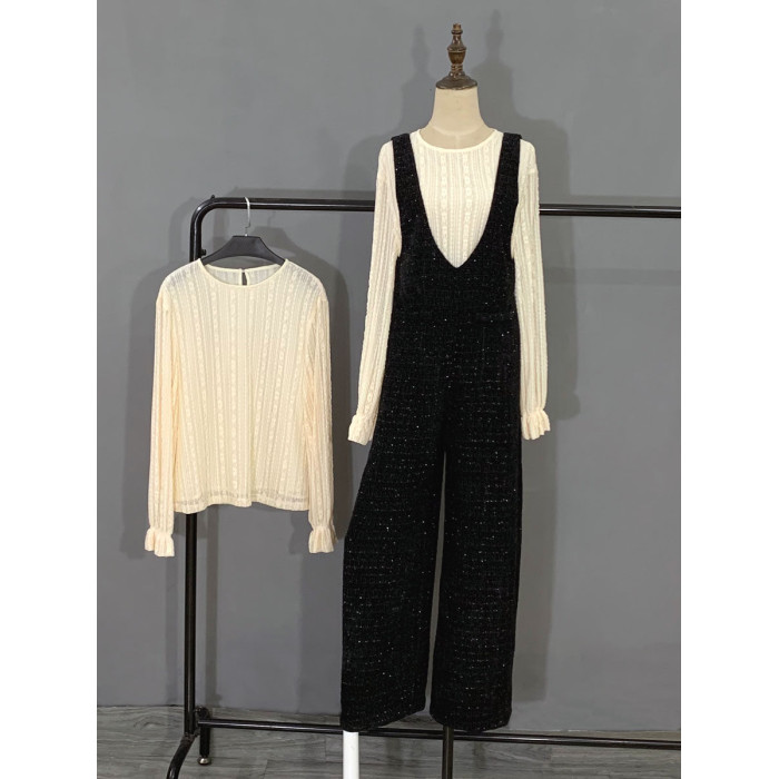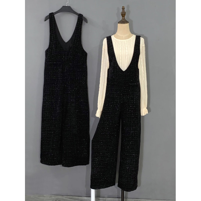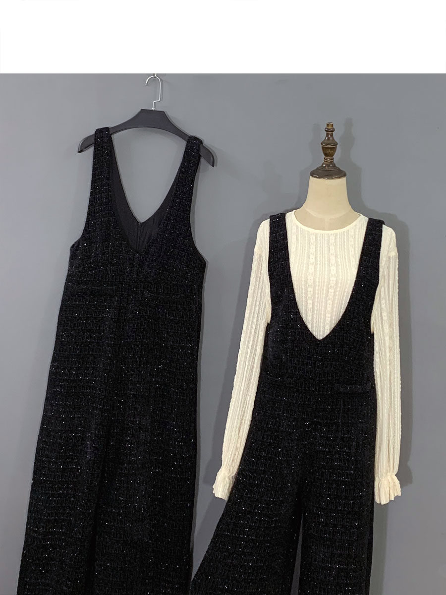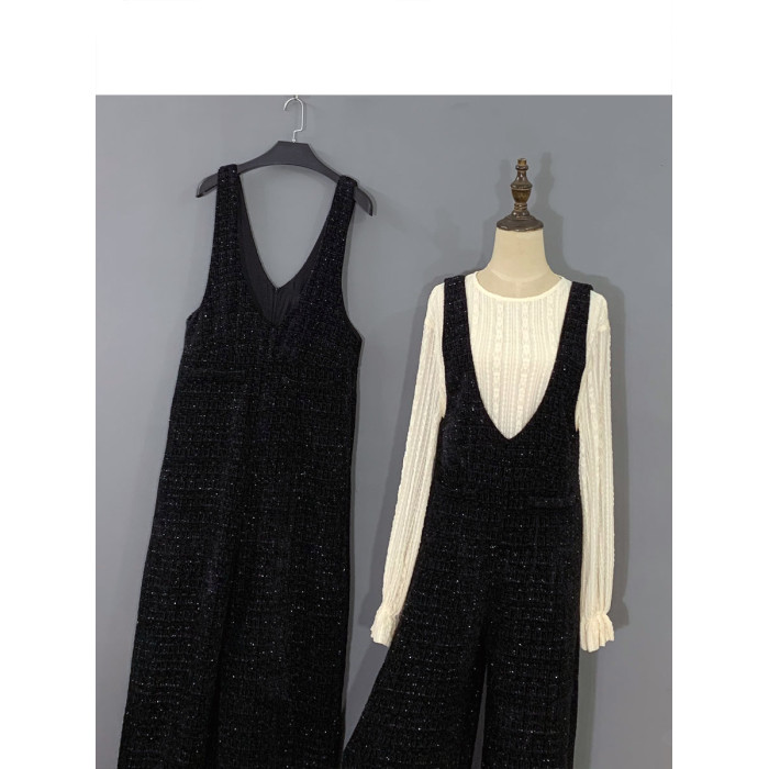 2024春秋新款連體褲黑色小香風百搭背帶褲復古濶腿拖地褲子