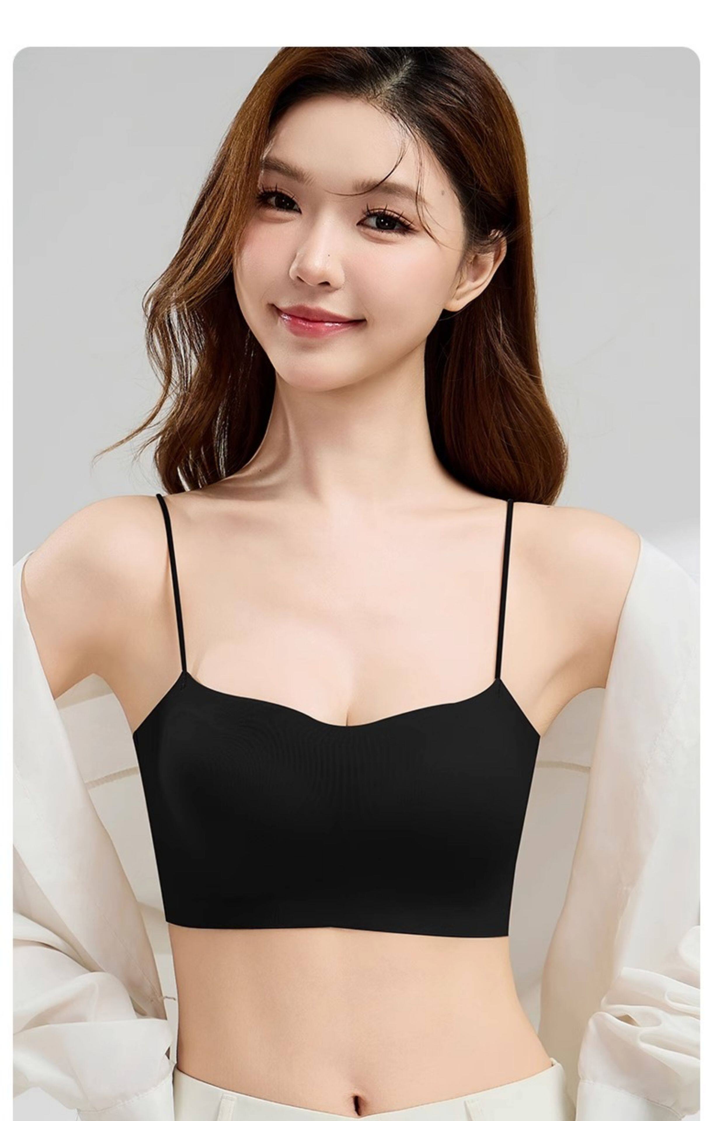 斜肩吊帶裙專用美背內衣細肩帶可外露無痕隱形冰絲抹胸背心式文胸