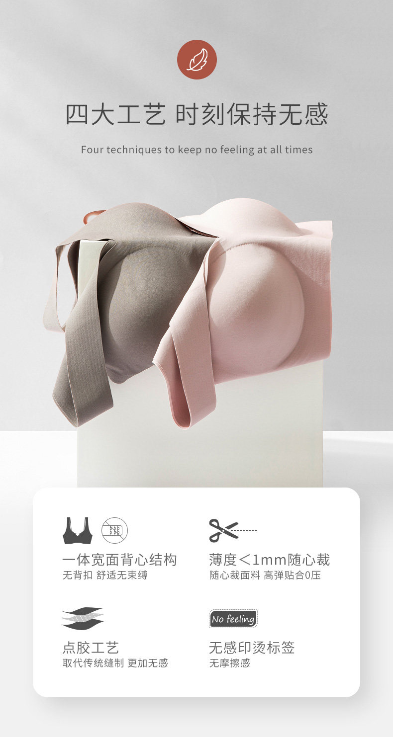 愛慕集團乎兮無痕粉底液內衣女士薄大胸顯小背心無鋼圈聚攏文胸罩