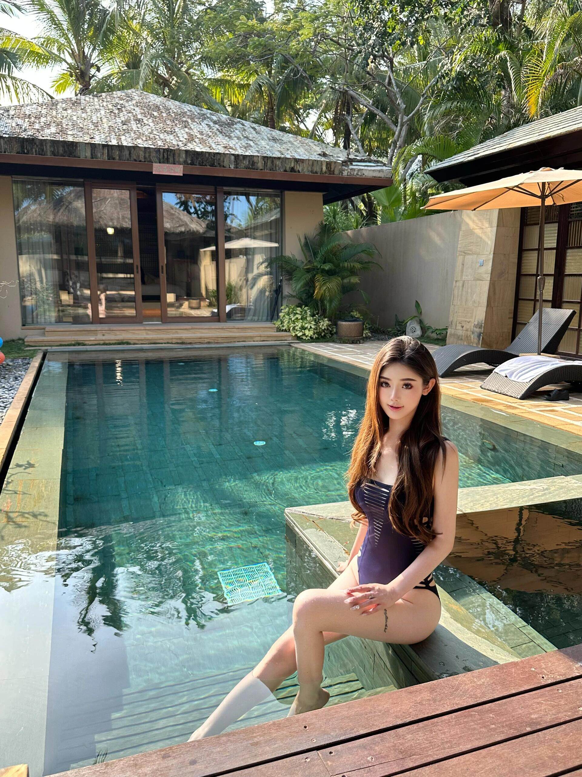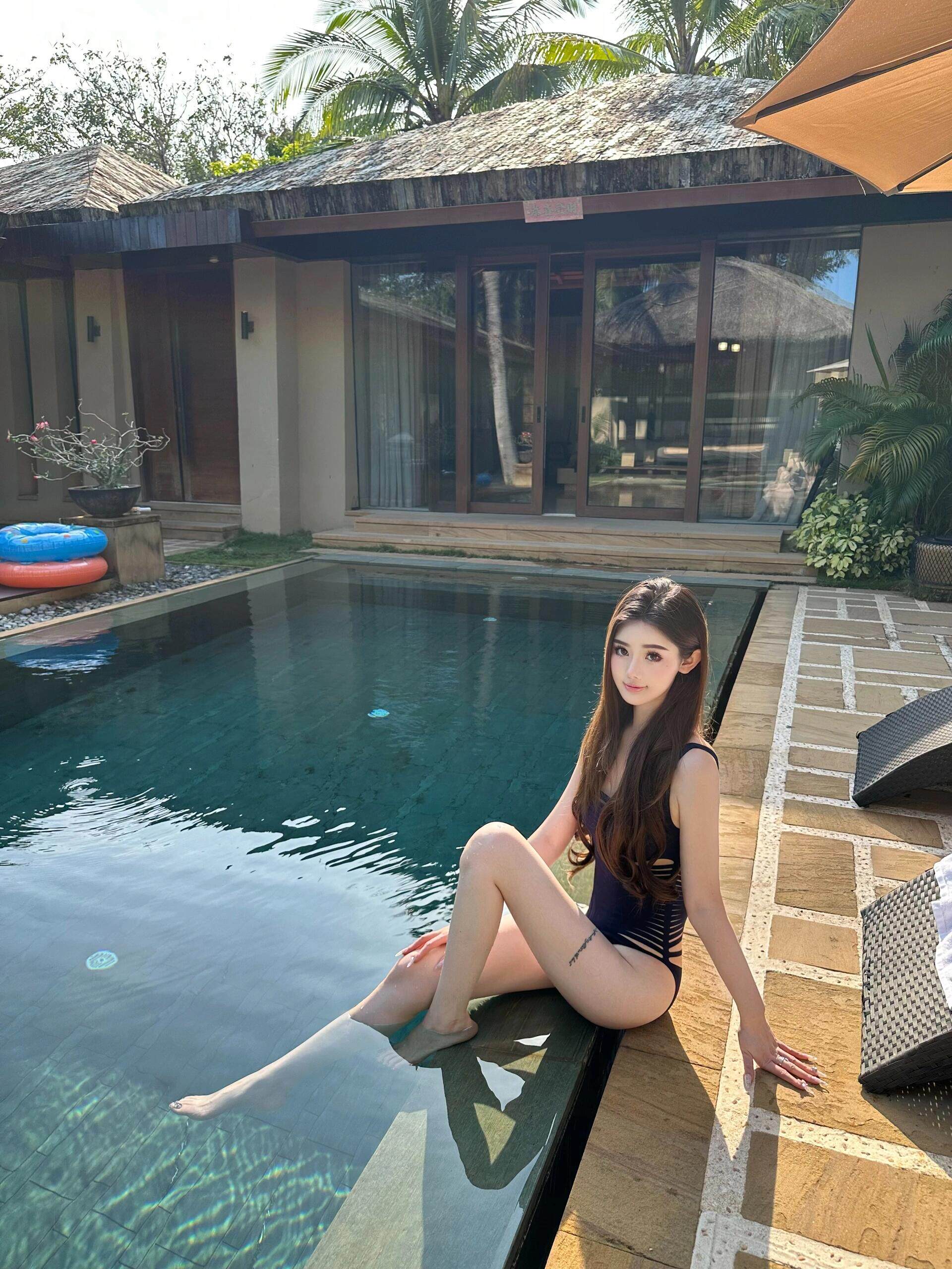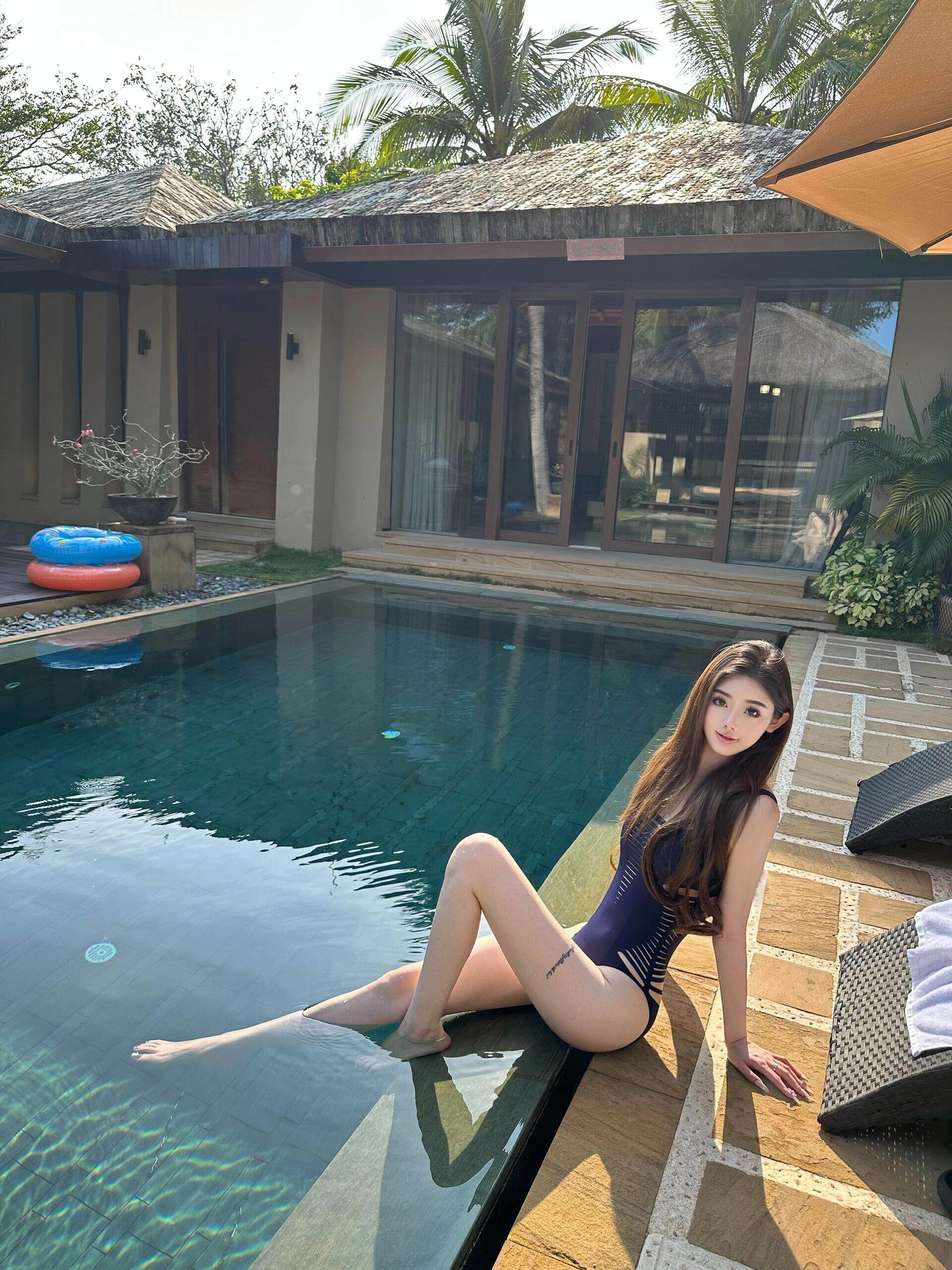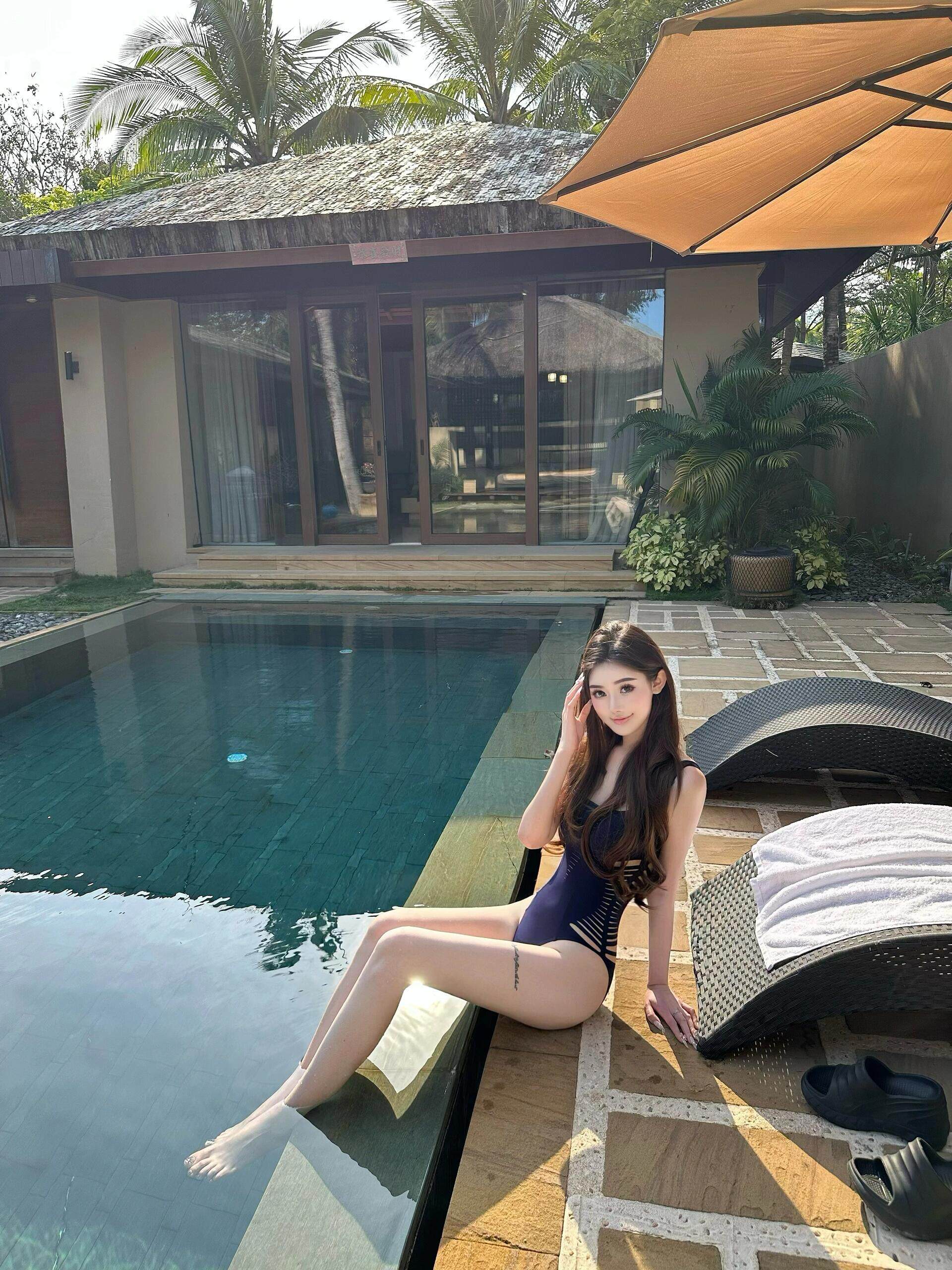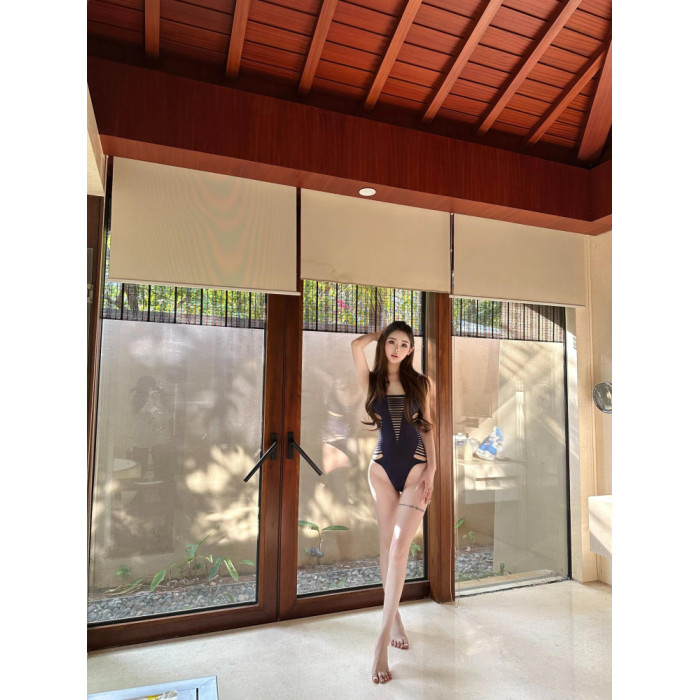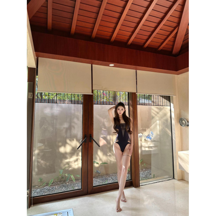 OUTFlT 海島度假風辣妹鏤空連體泳衣女2025新款修身顯瘦沙灘泳裝
