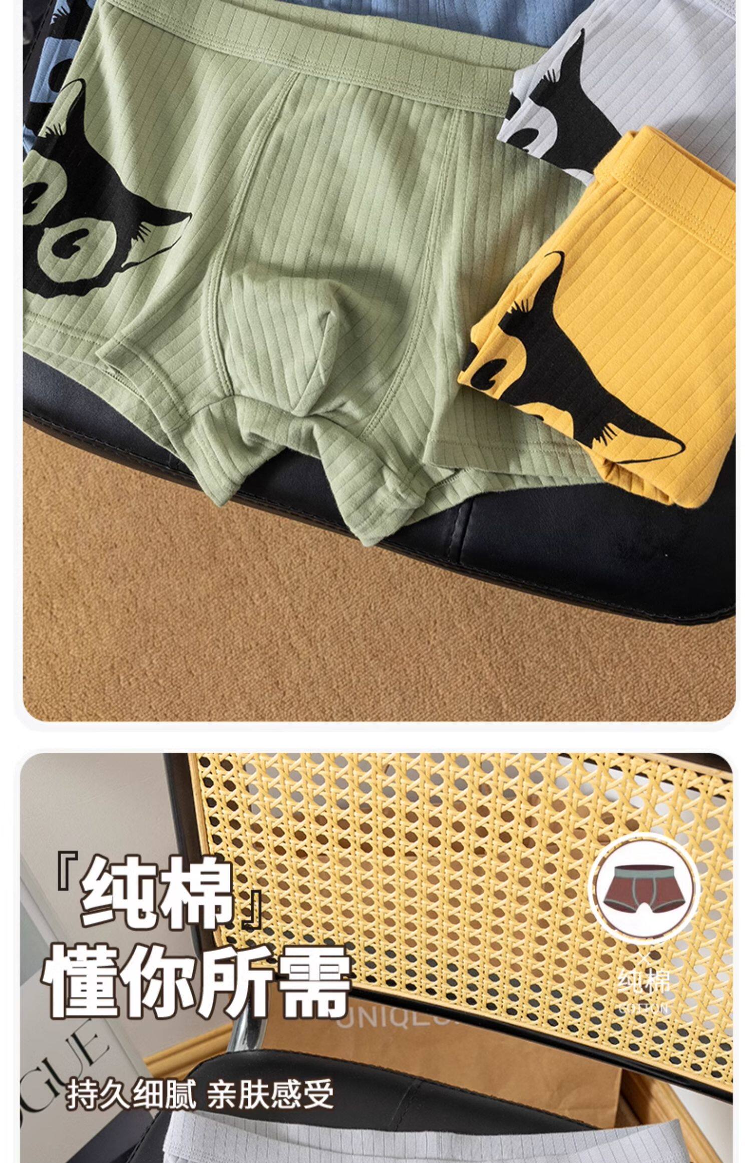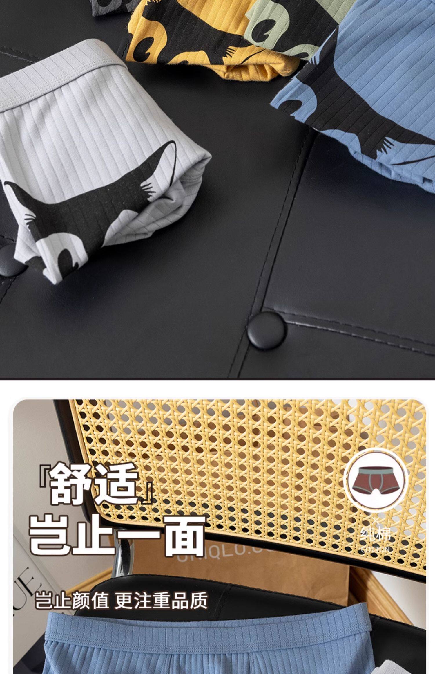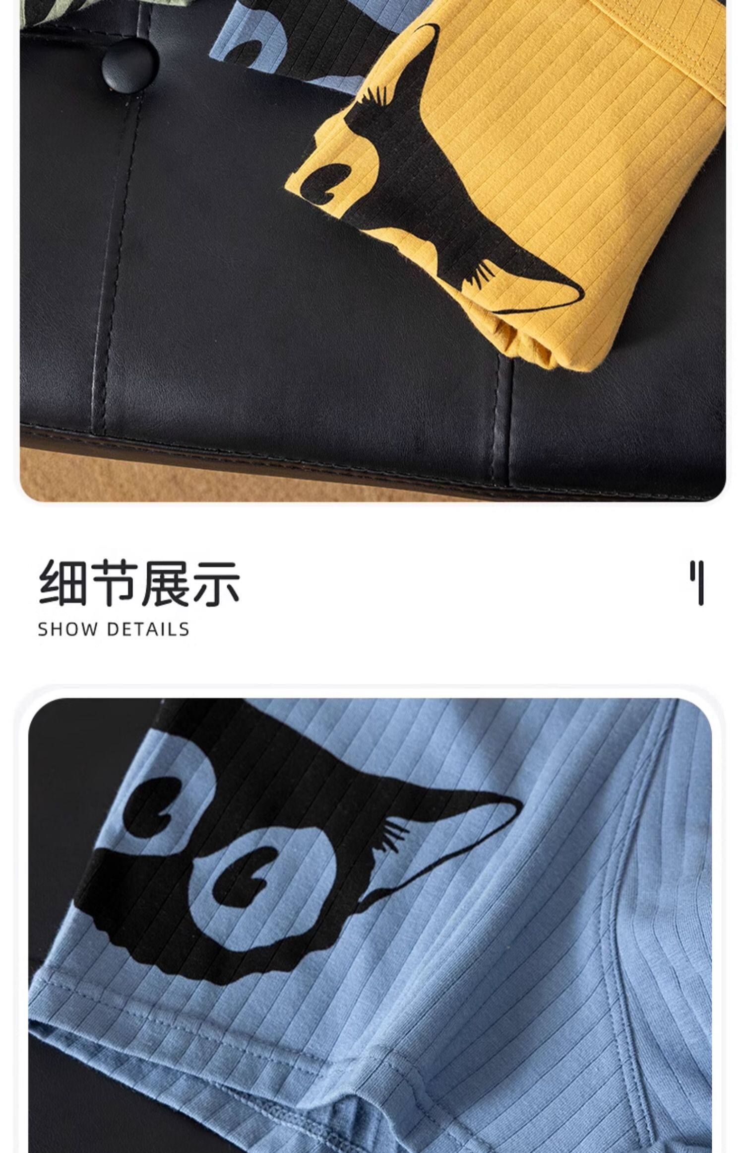 可愛貓咪男生內褲平角褲純棉石墨稀抗菌透氣卡通青少年平角短褲頭