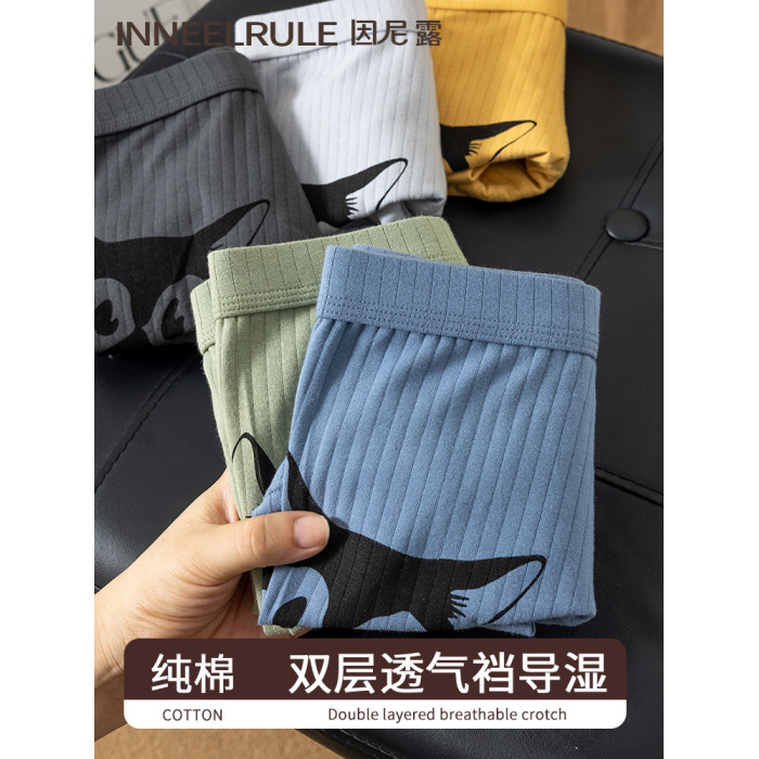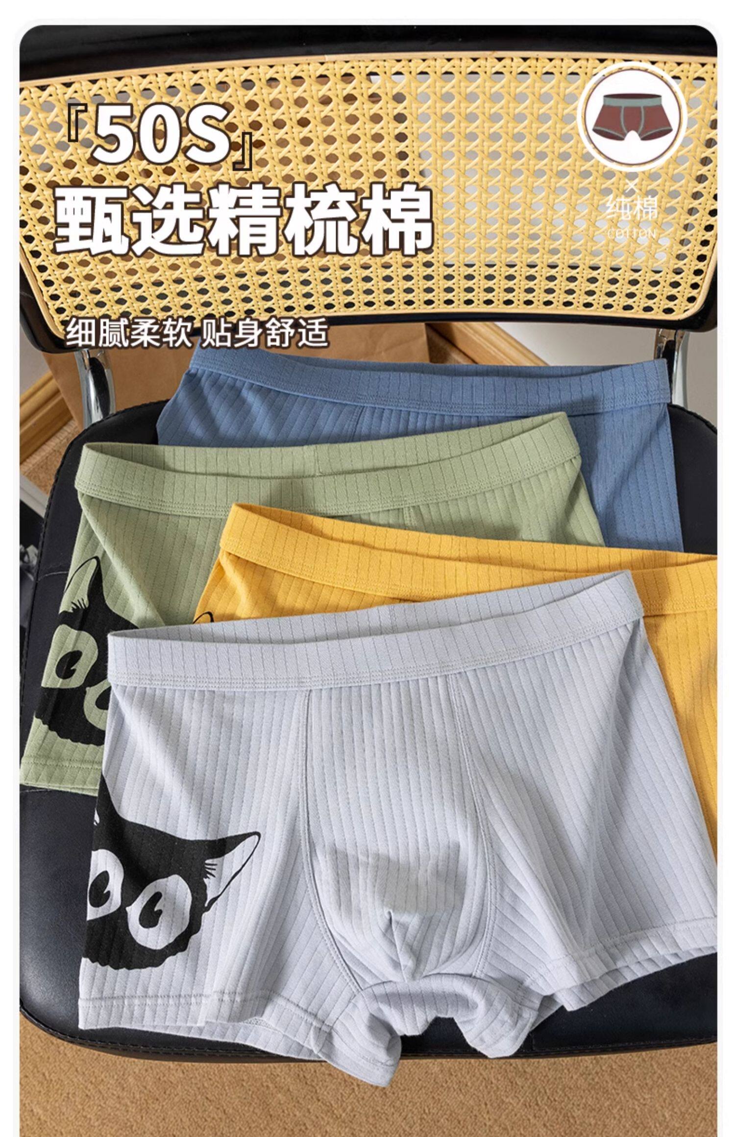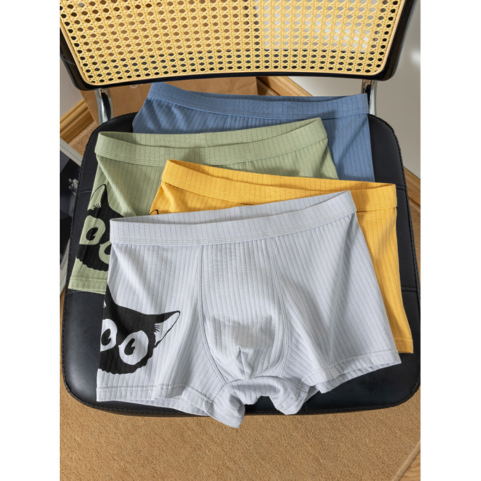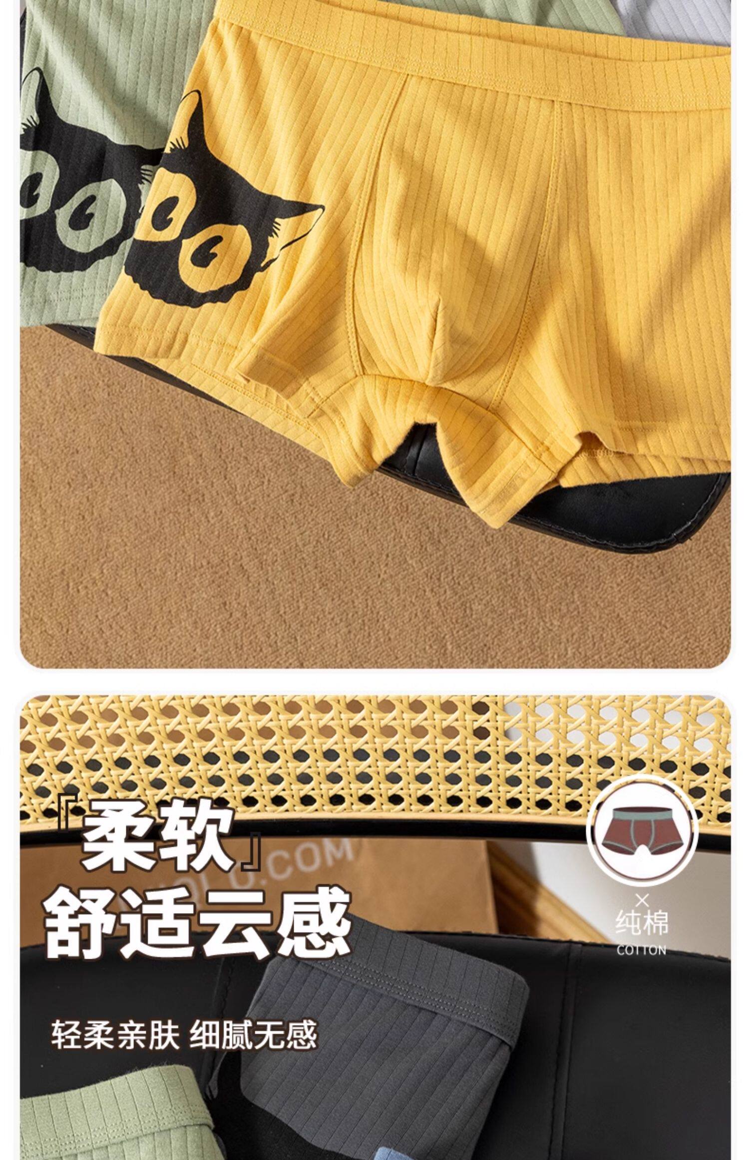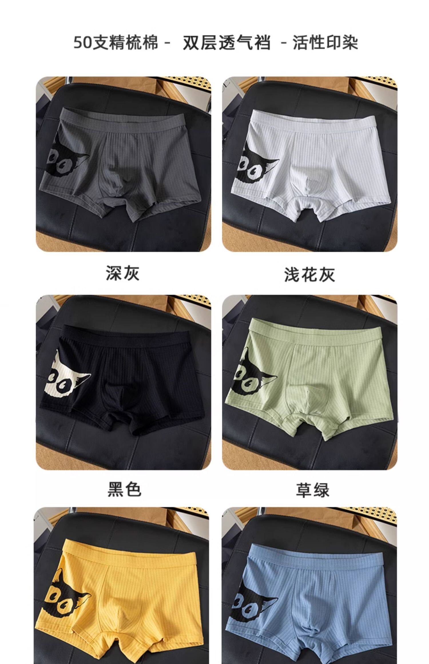 可愛貓咪男生內褲平角褲純棉石墨稀抗菌透氣卡通青少年平角短褲頭
