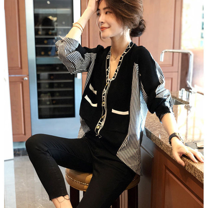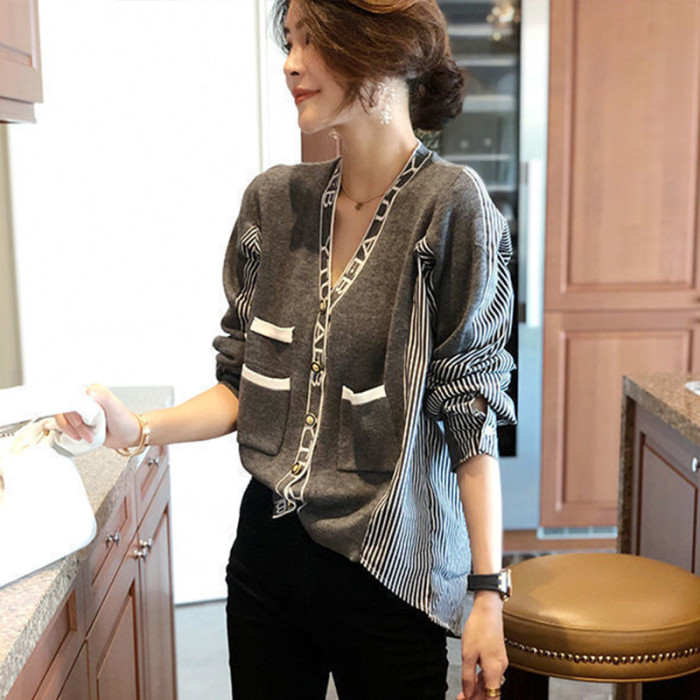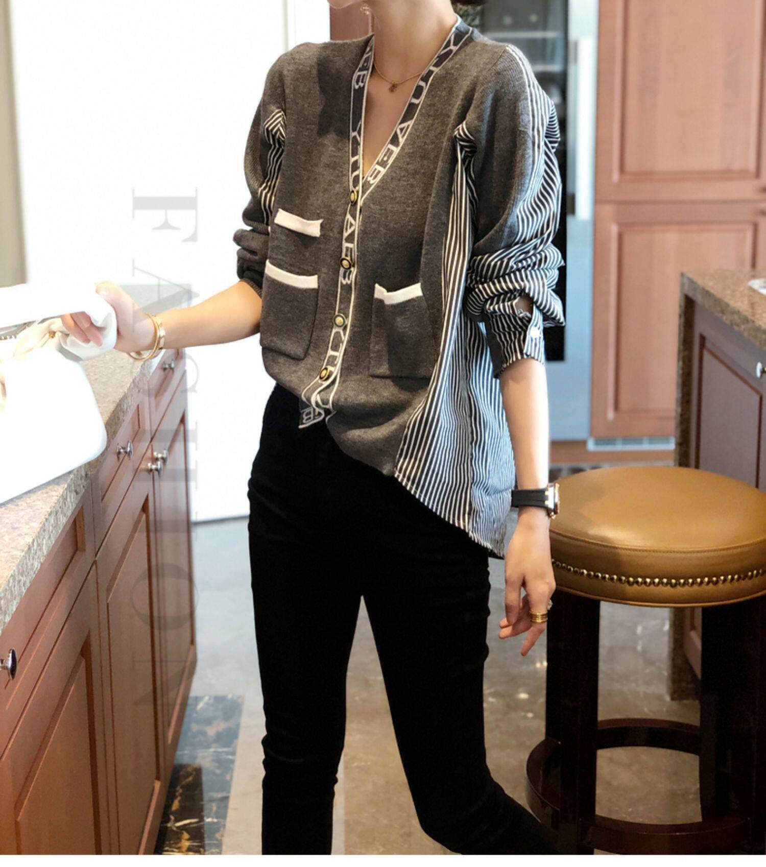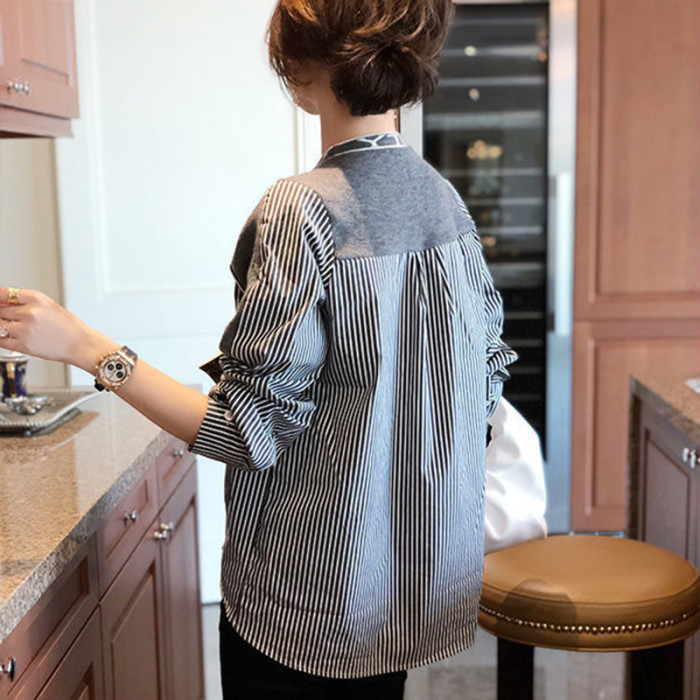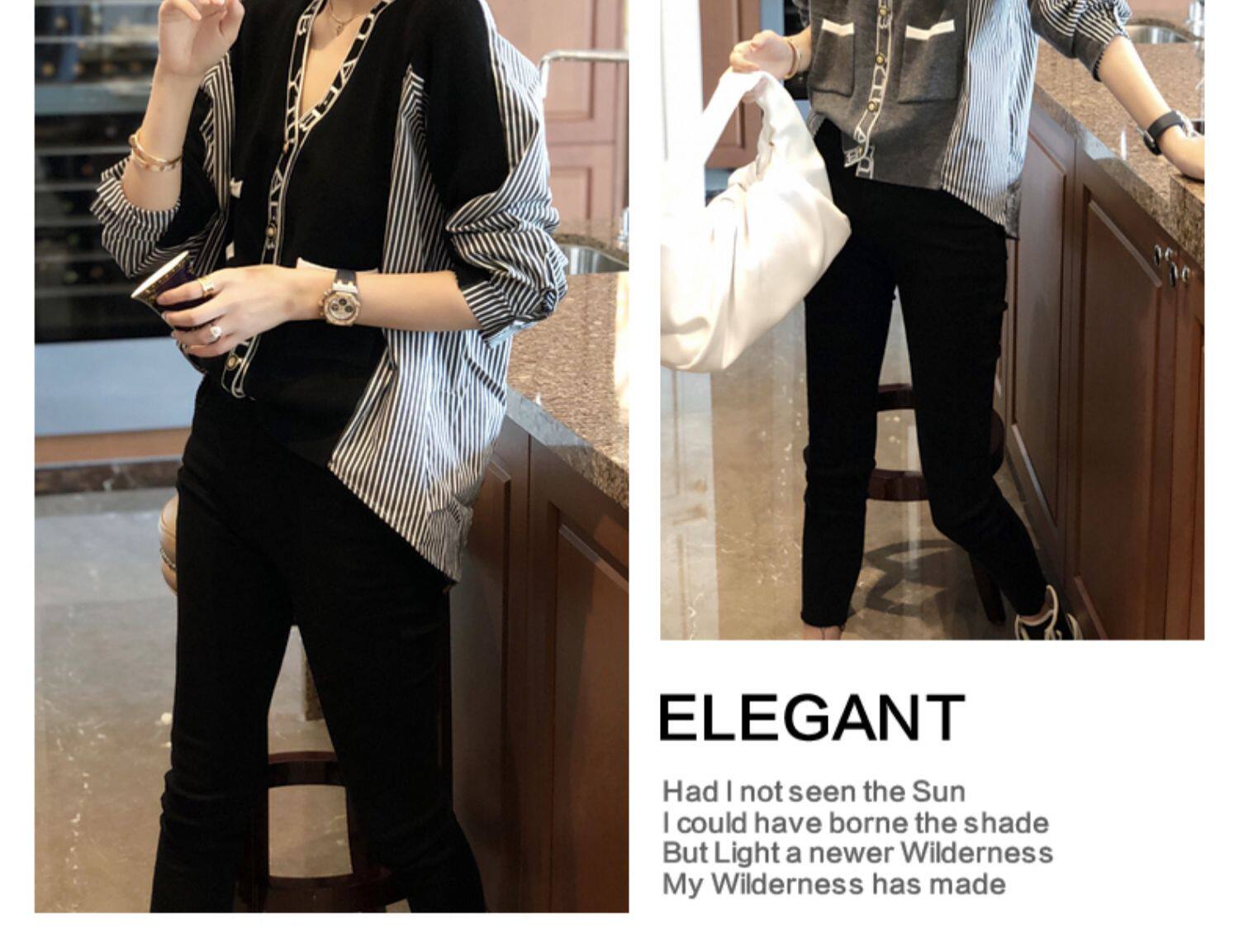 條紋襯衫女2026春秋新款胖妹妹設計感小衆假兩件v領法式上衣襯衣