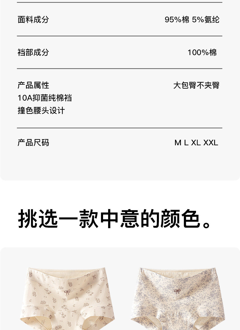 南極人純棉內褲女士10A抗菌2026新款加長襠女生全棉平角四角褲PB