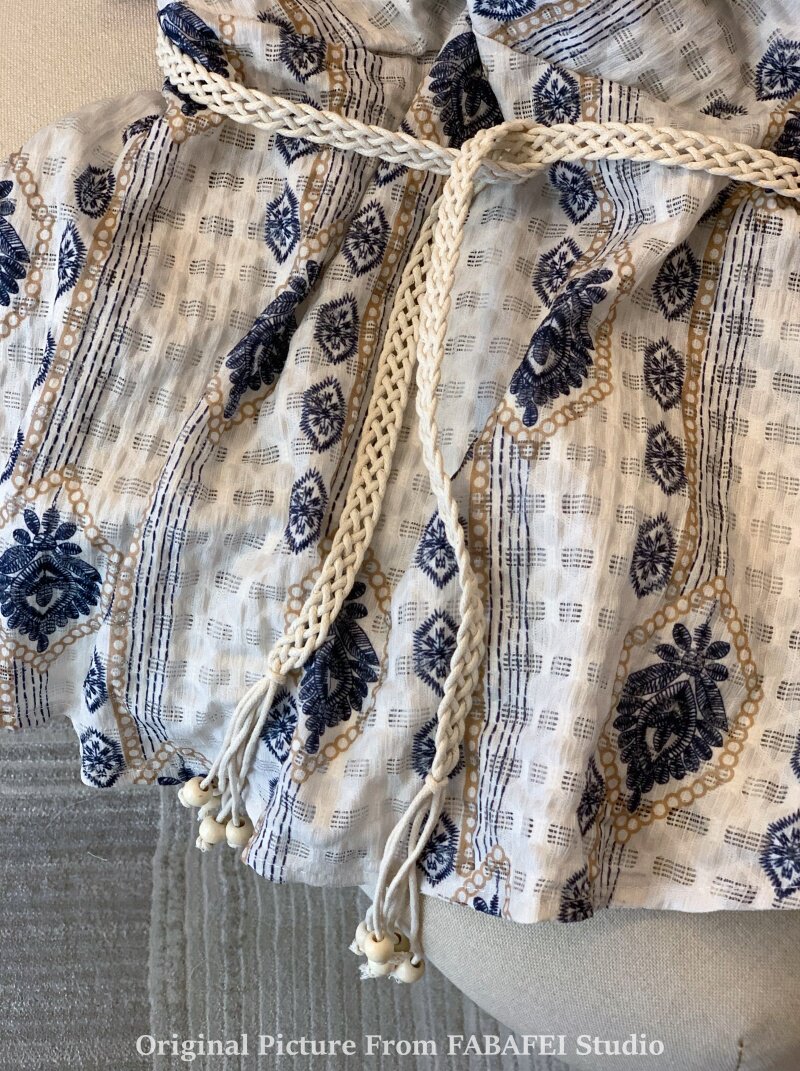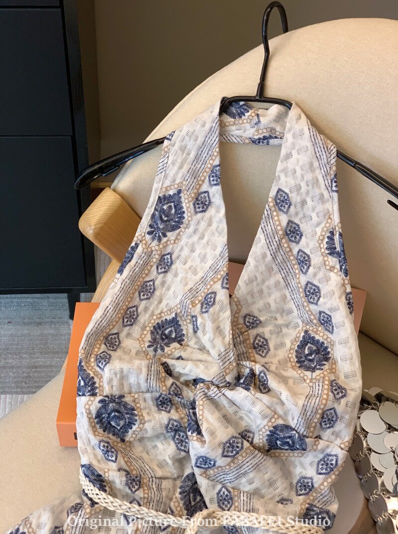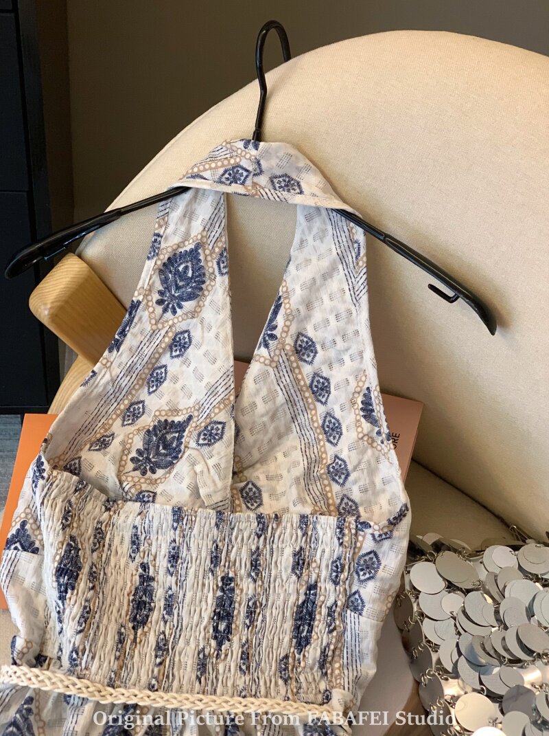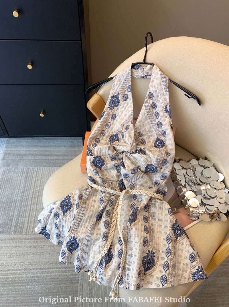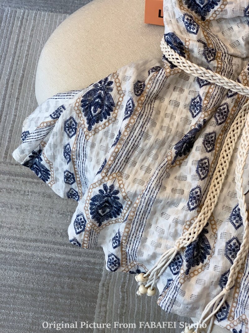 ⭐自畱爆款推薦~波西米亞風刺綉碎花掛脖襯衫女夏款法式遮肚子上衣