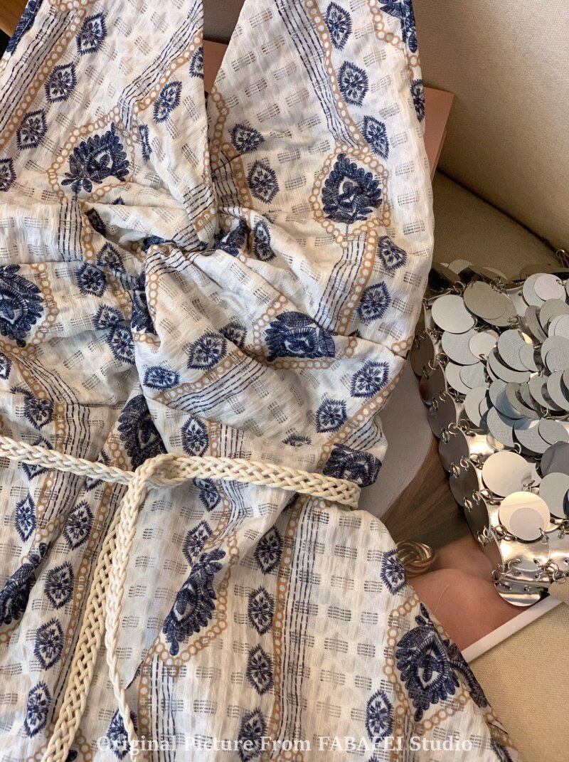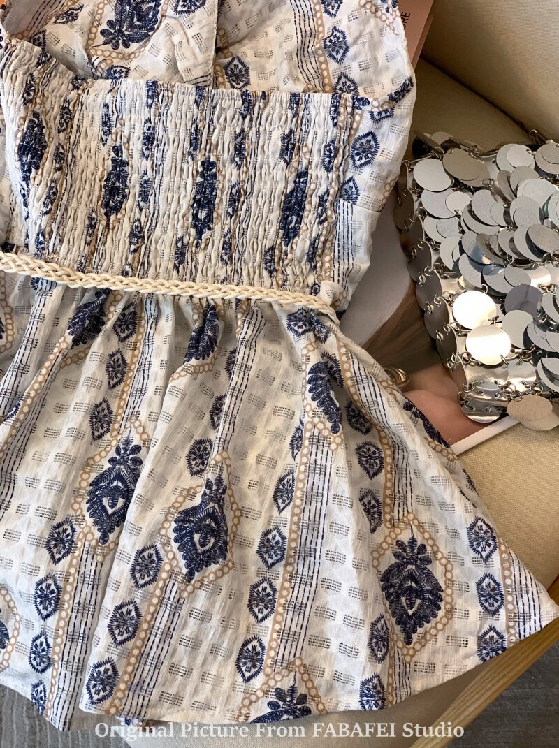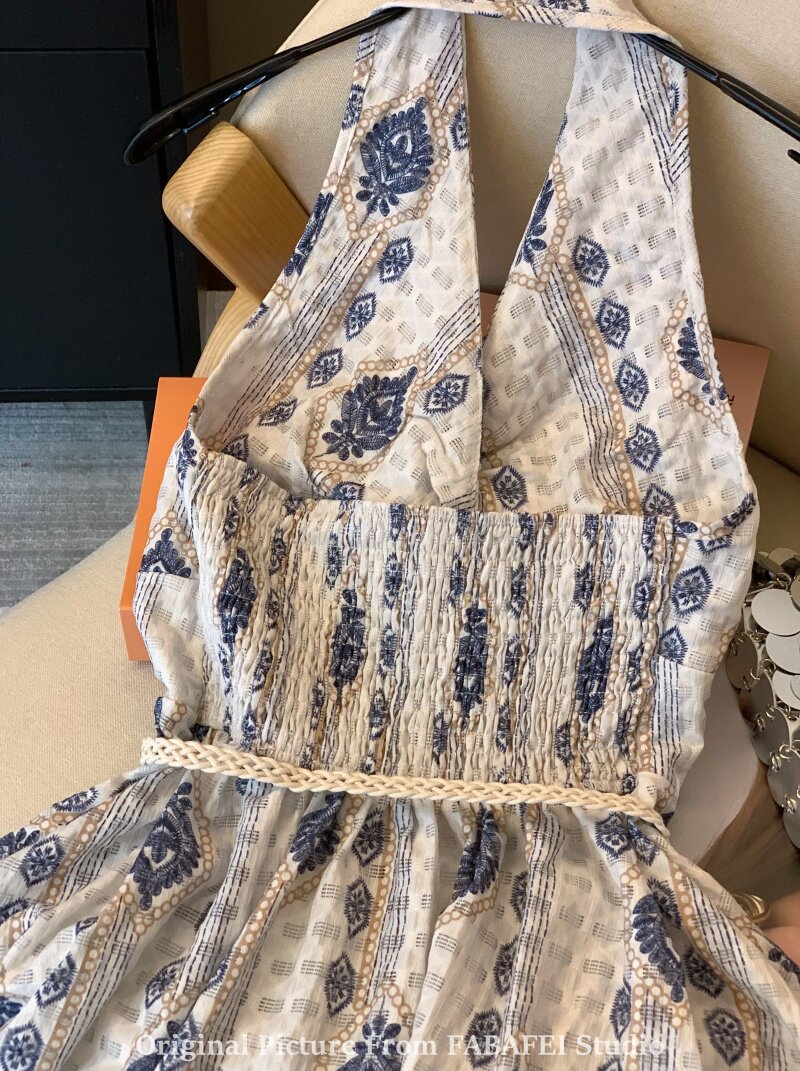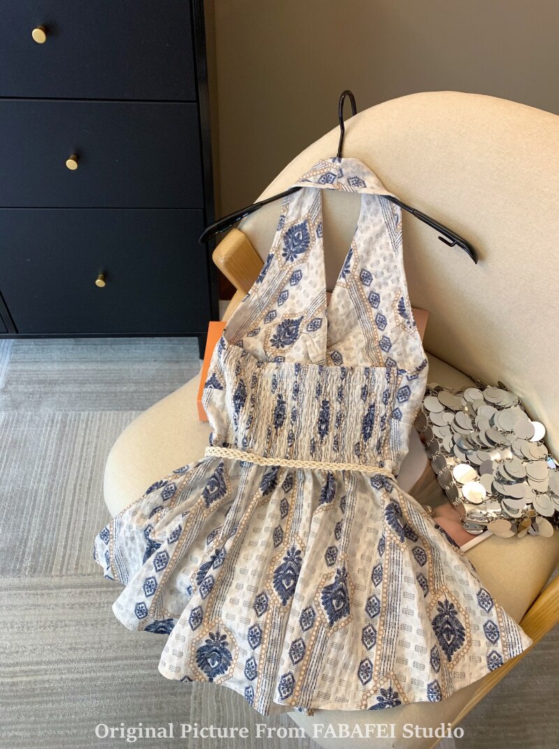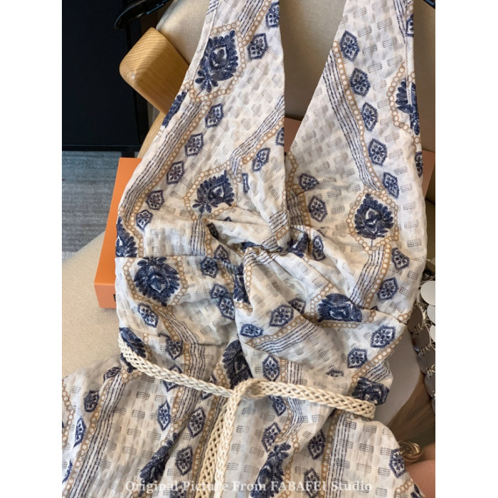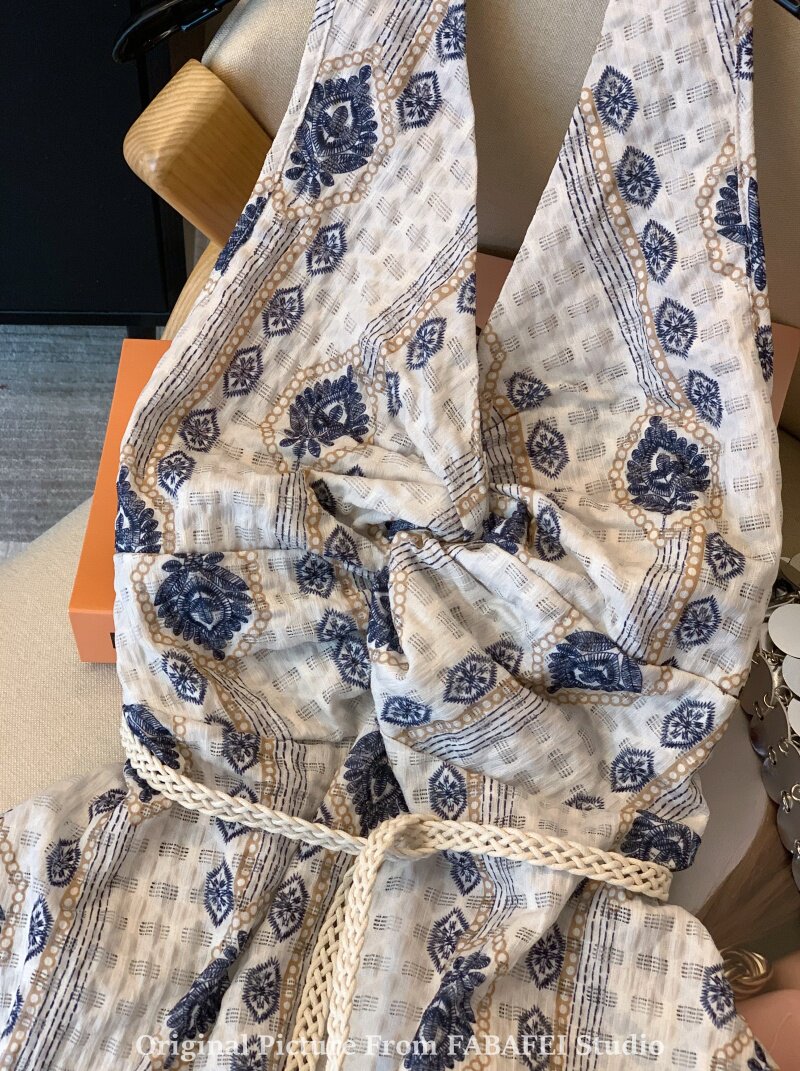 ⭐自畱爆款推薦~波西米亞風刺綉碎花掛脖襯衫女夏款法式遮肚子上衣
