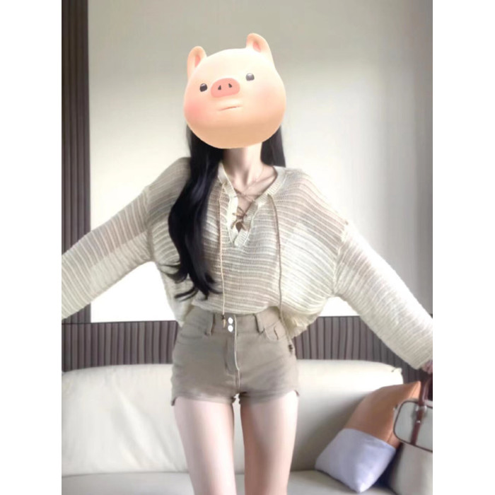 法式杏色針織鏤空防曬罩衫女夏季新款設計寬鬆顯瘦獨特別致上衣潮