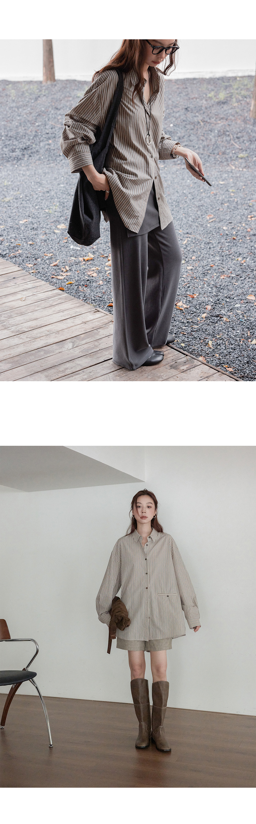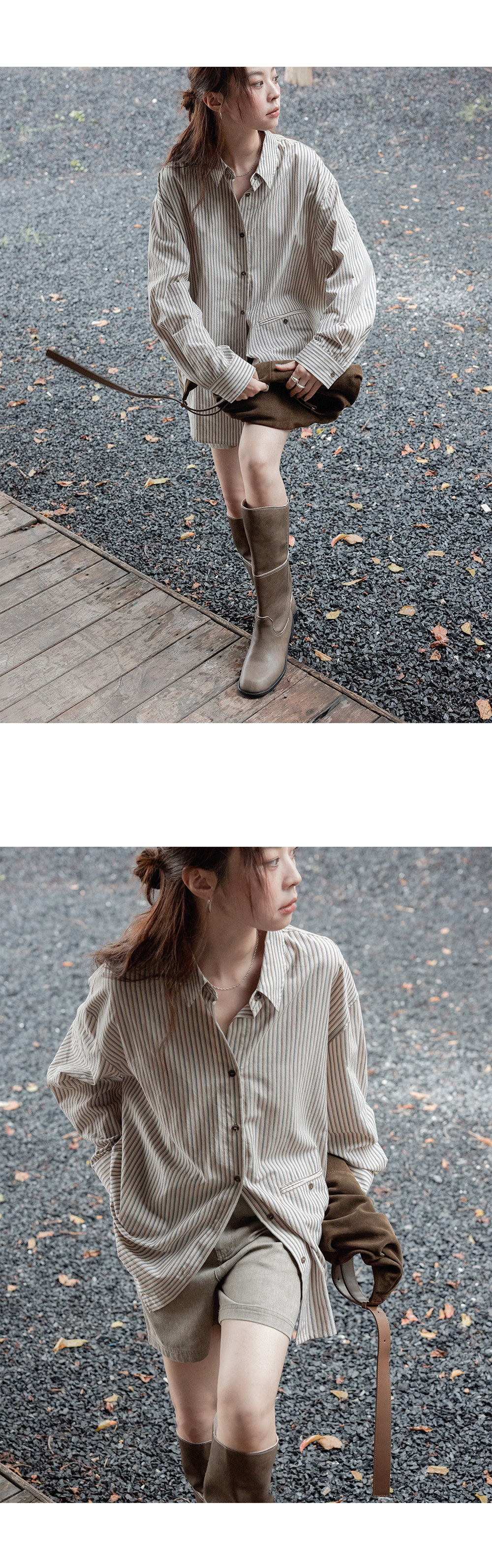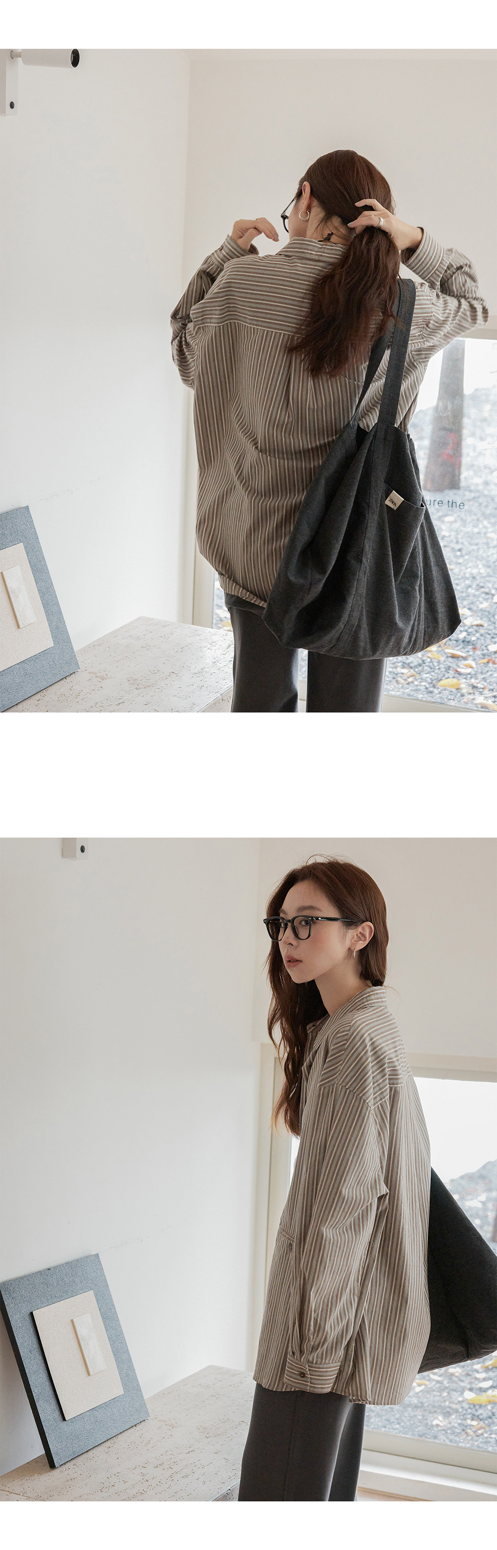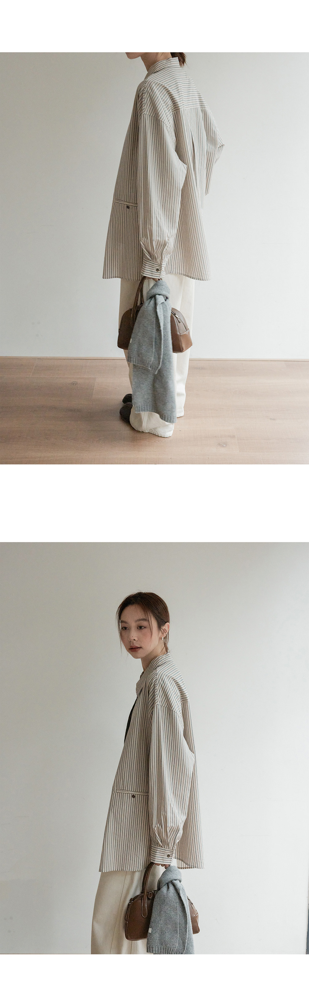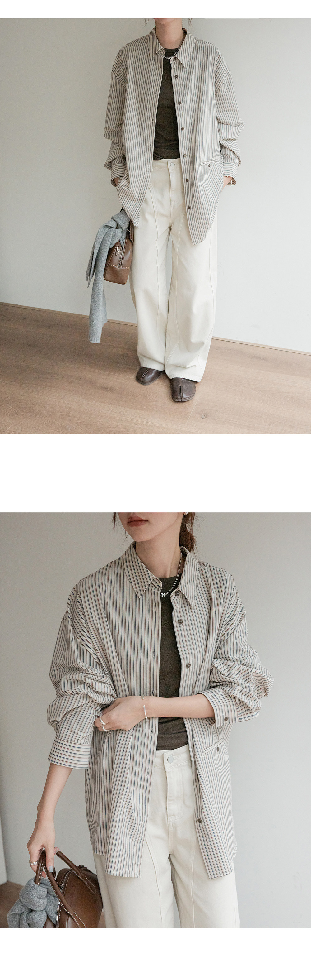 VNOOK 色織棉條紋長袖襯衫女秋季新款寬鬆設計感小衆上衣繙領襯衣