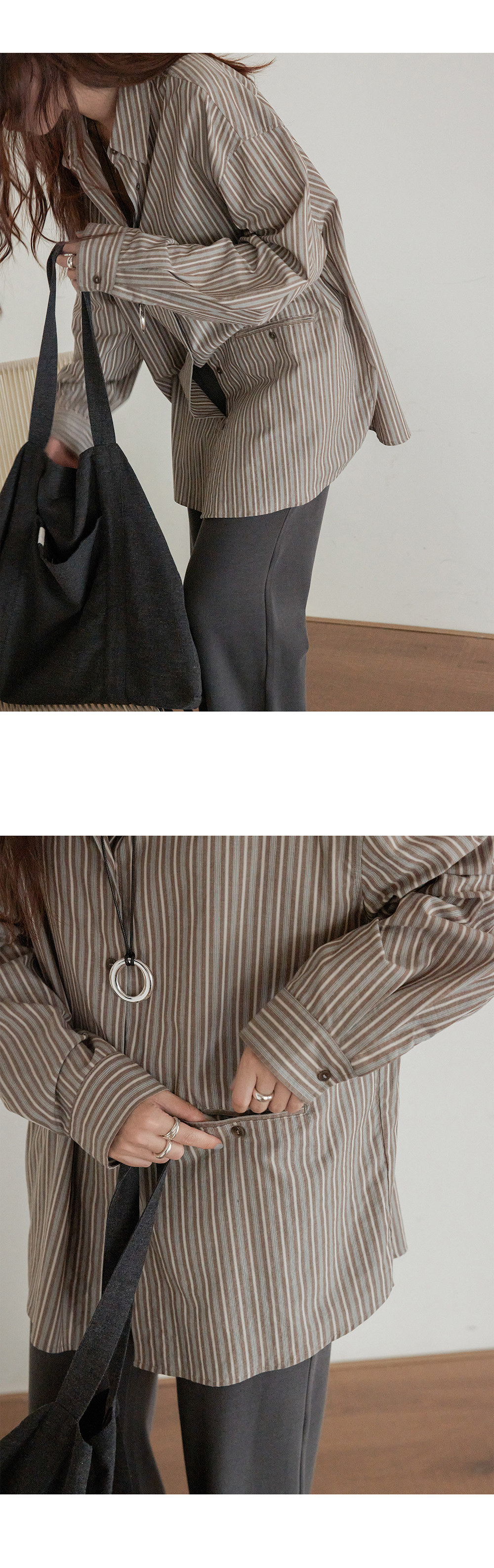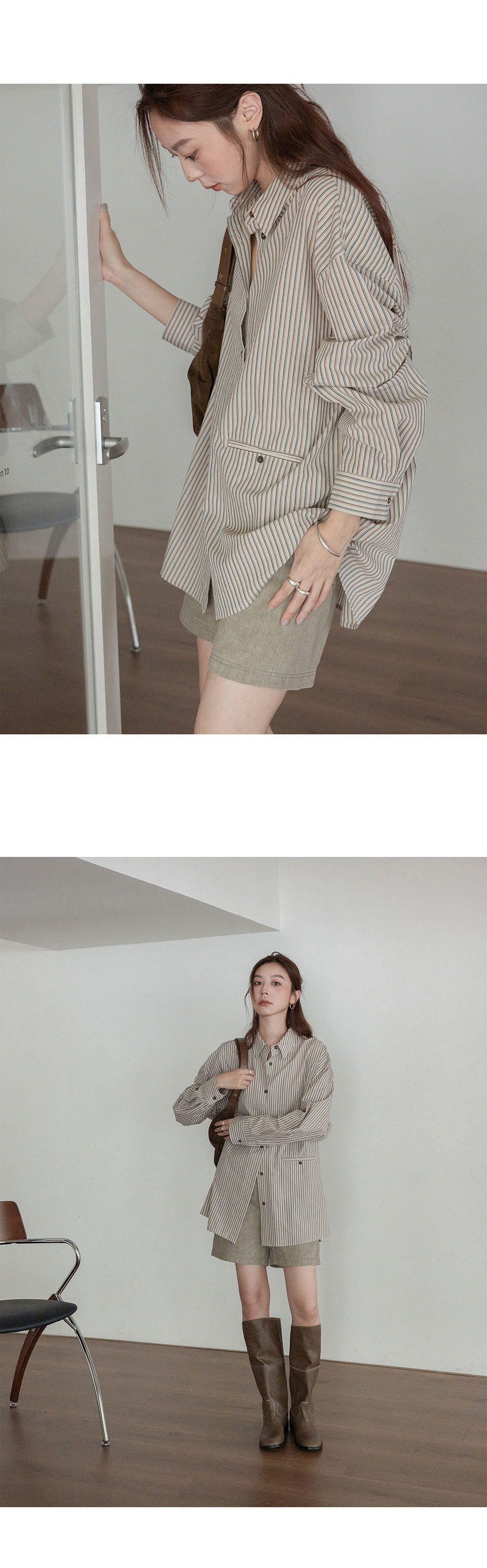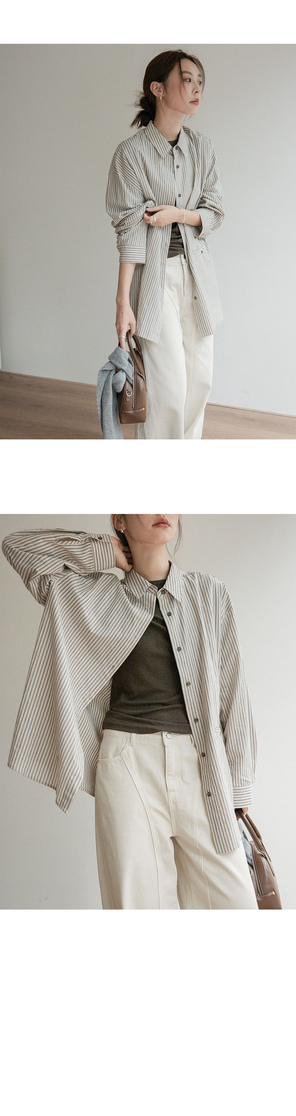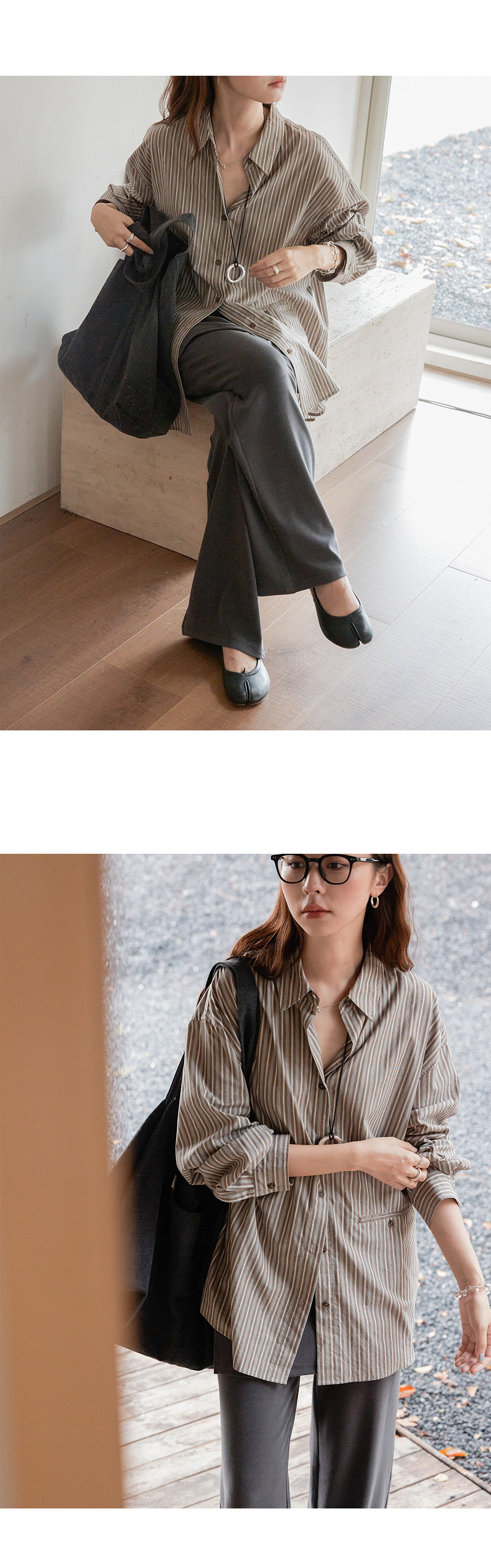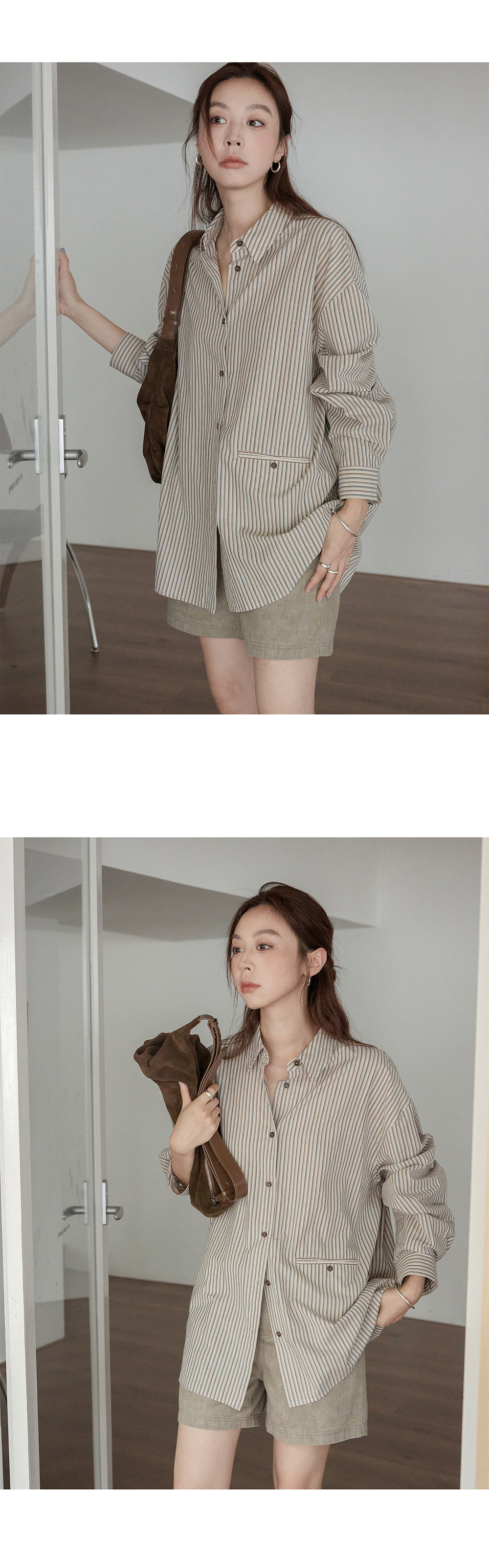 VNOOK 色織棉條紋長袖襯衫女秋季新款寬鬆設計感小衆上衣繙領襯衣
