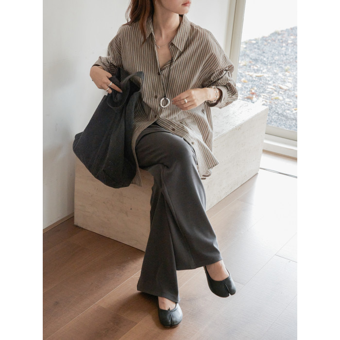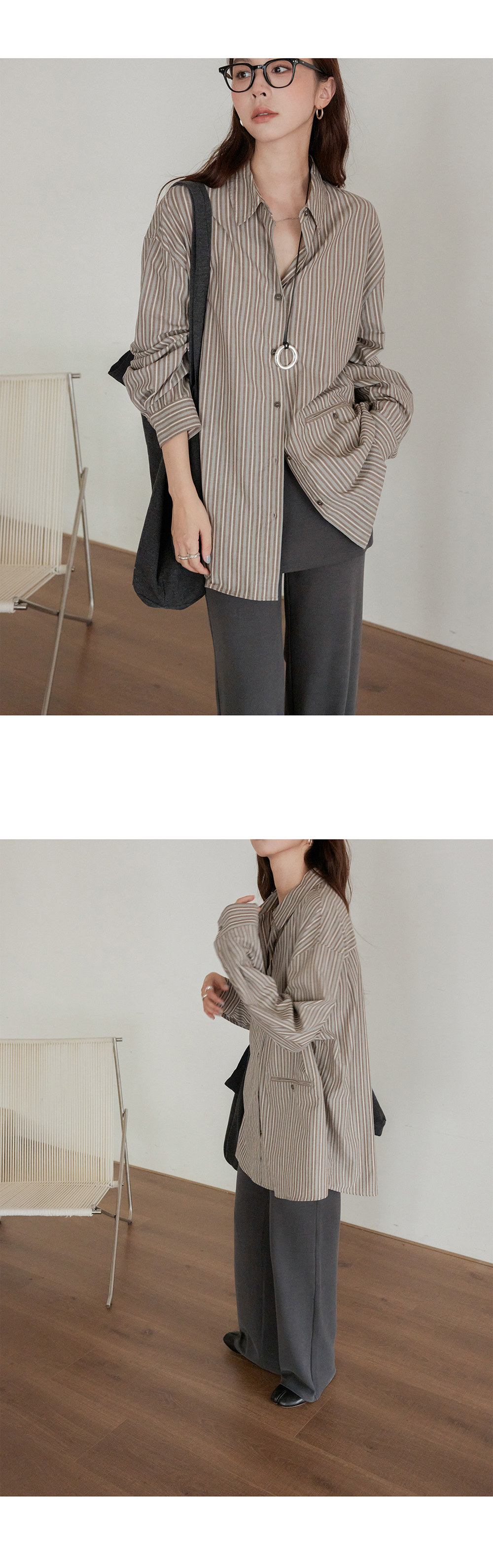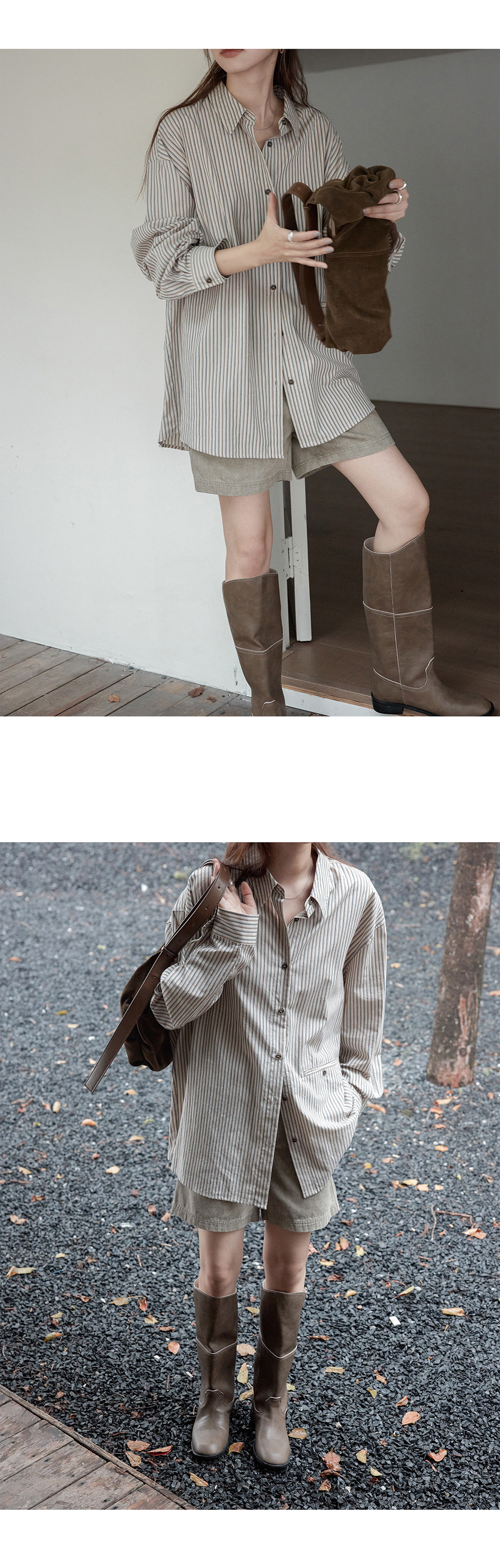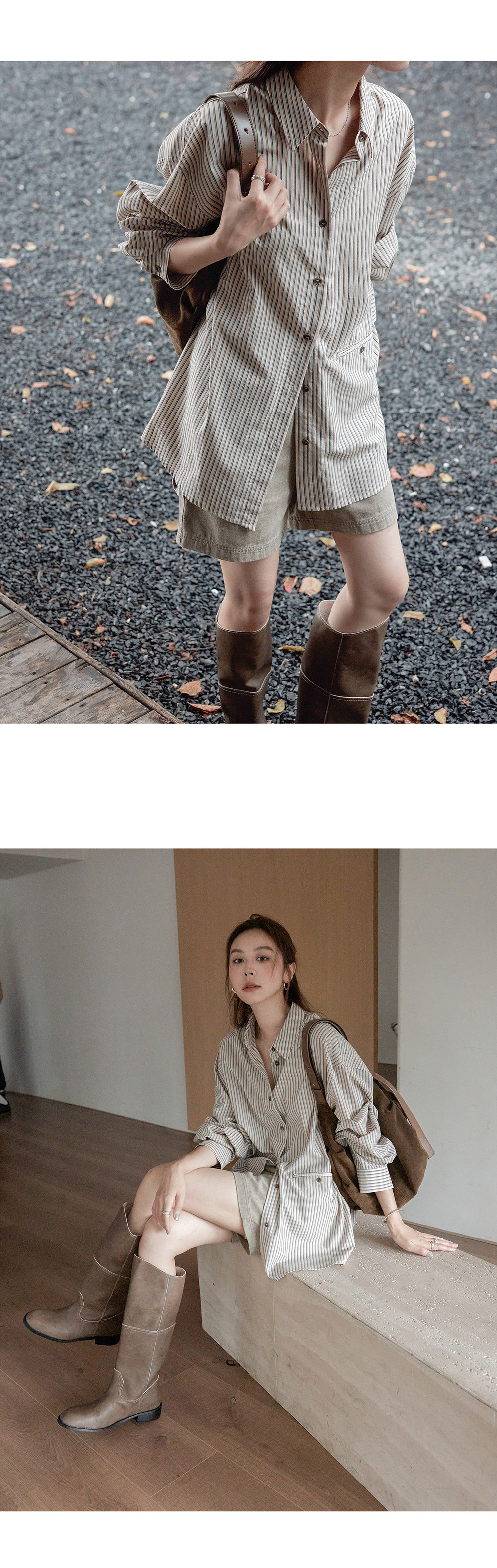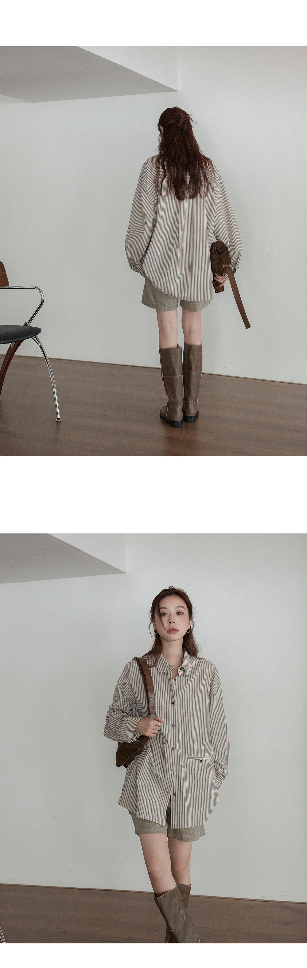VNOOK 色織棉條紋長袖襯衫女秋季新款寬鬆設計感小衆上衣繙領襯衣