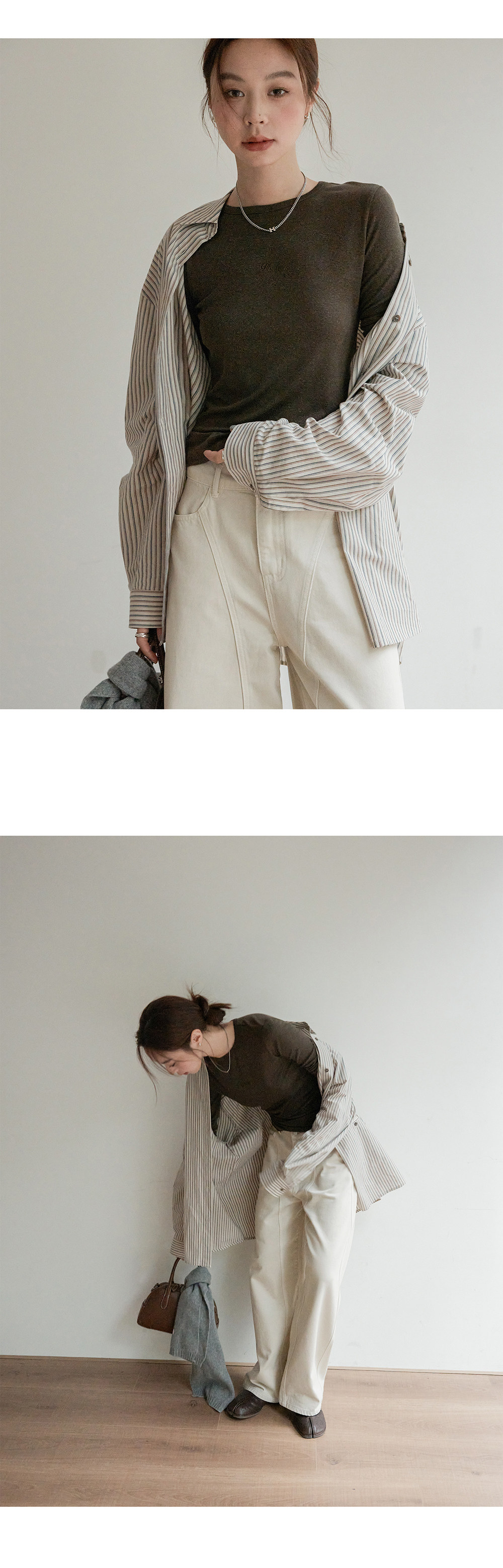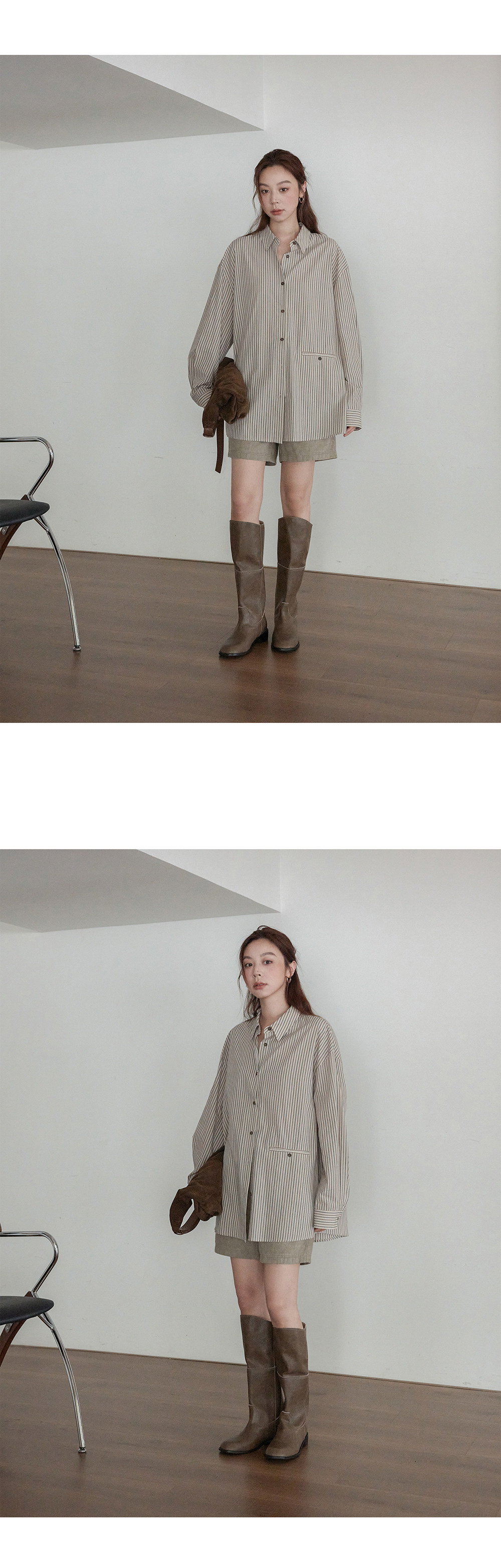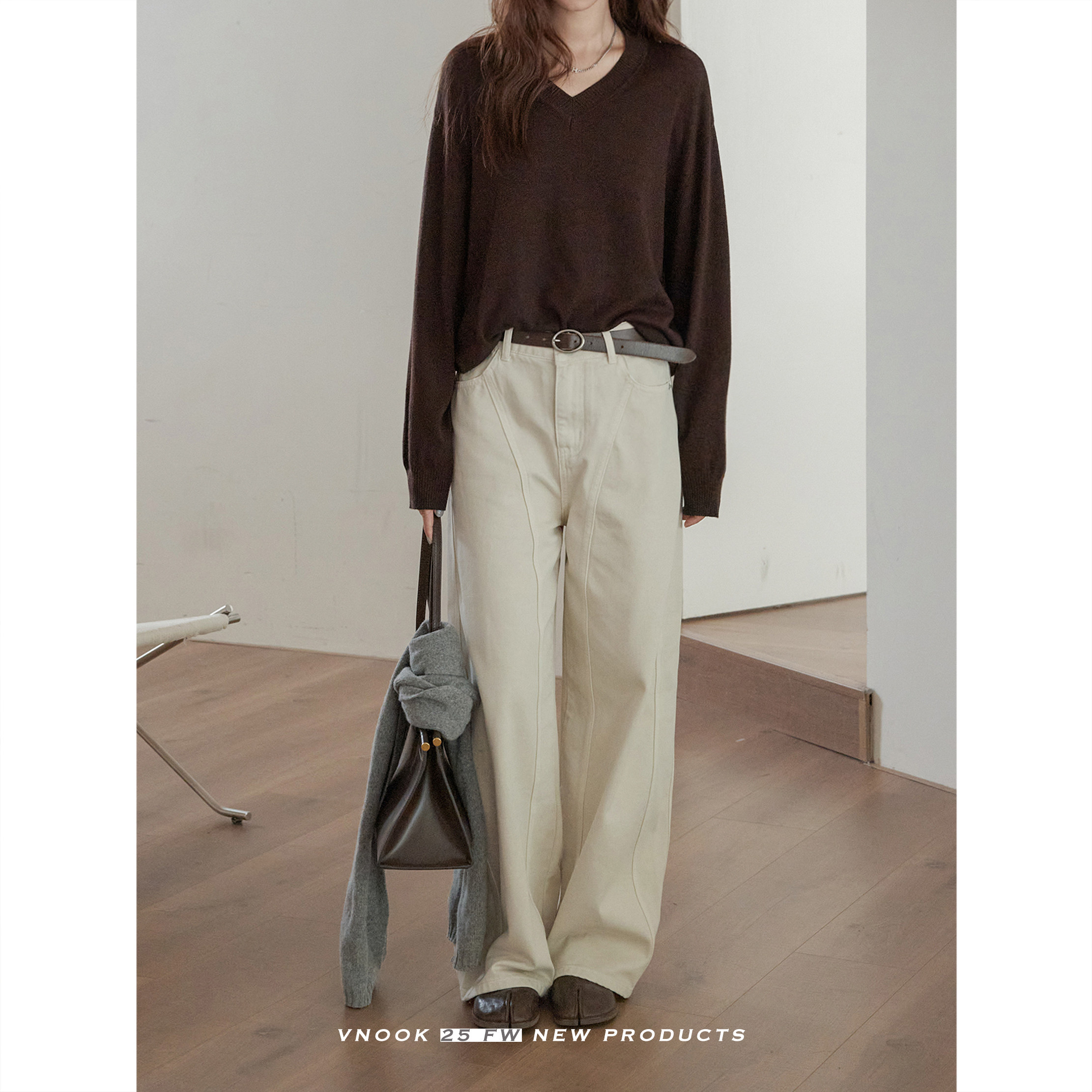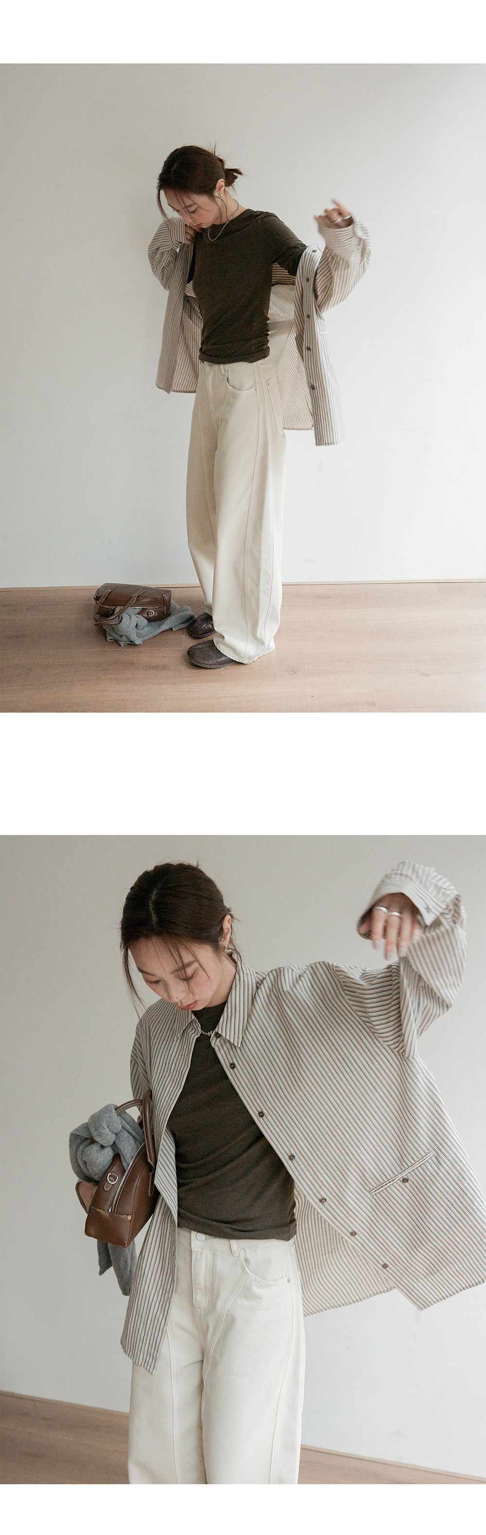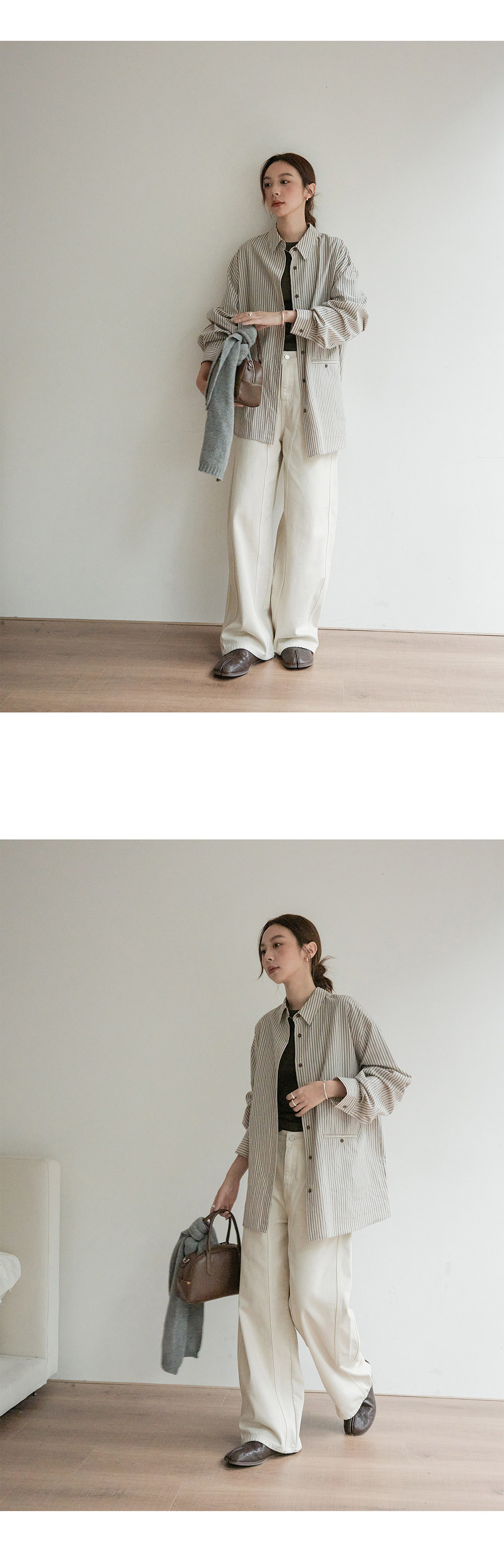 VNOOK 色織棉條紋長袖襯衫女秋季新款寬鬆設計感小衆上衣繙領襯衣