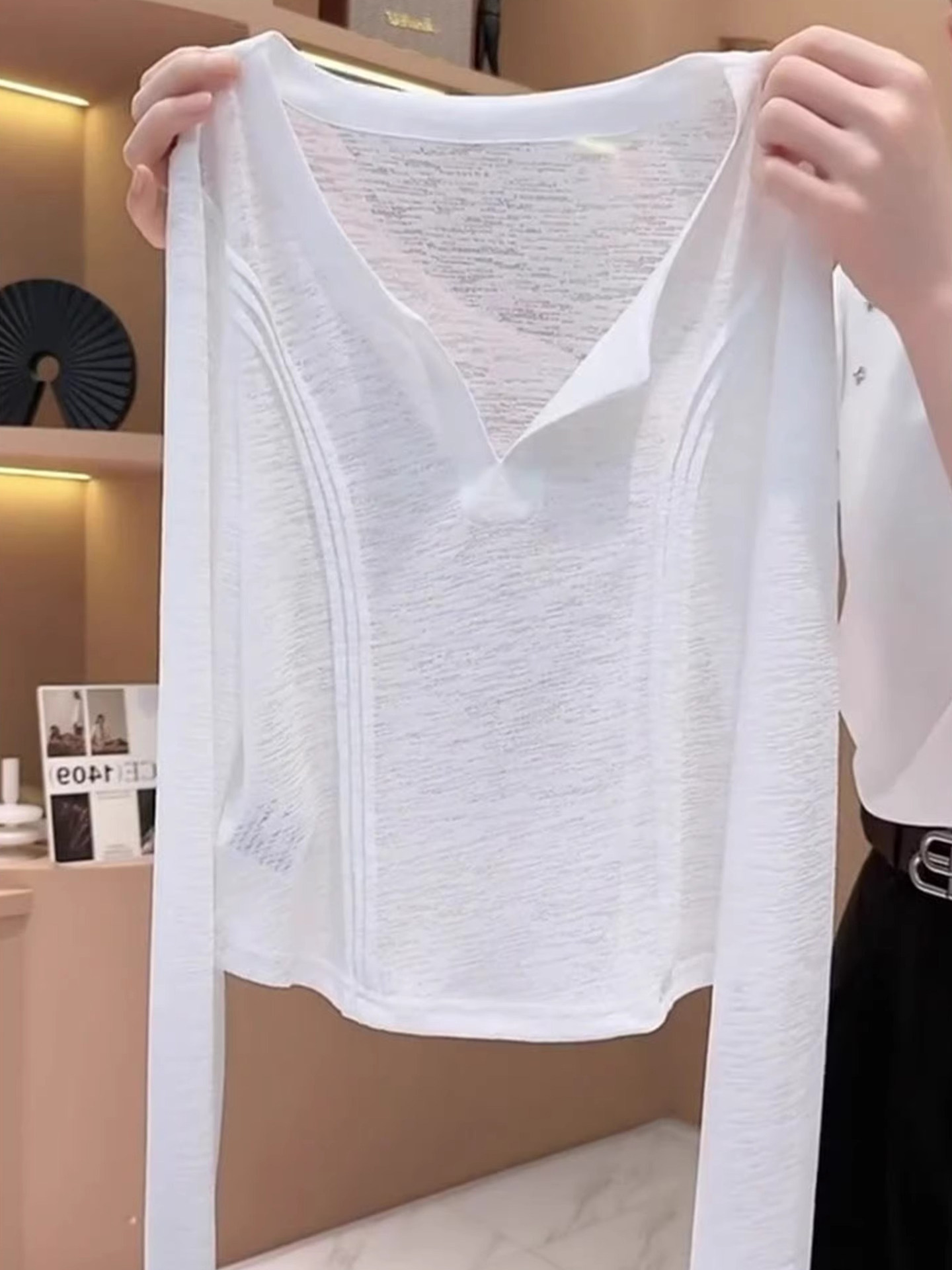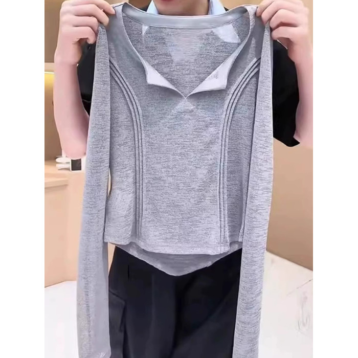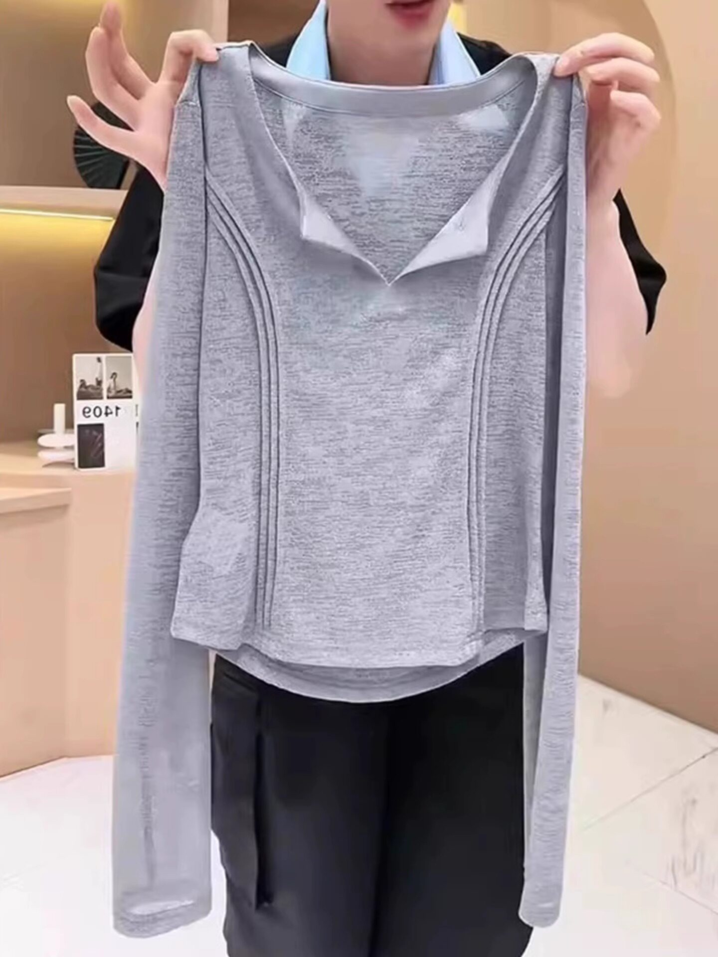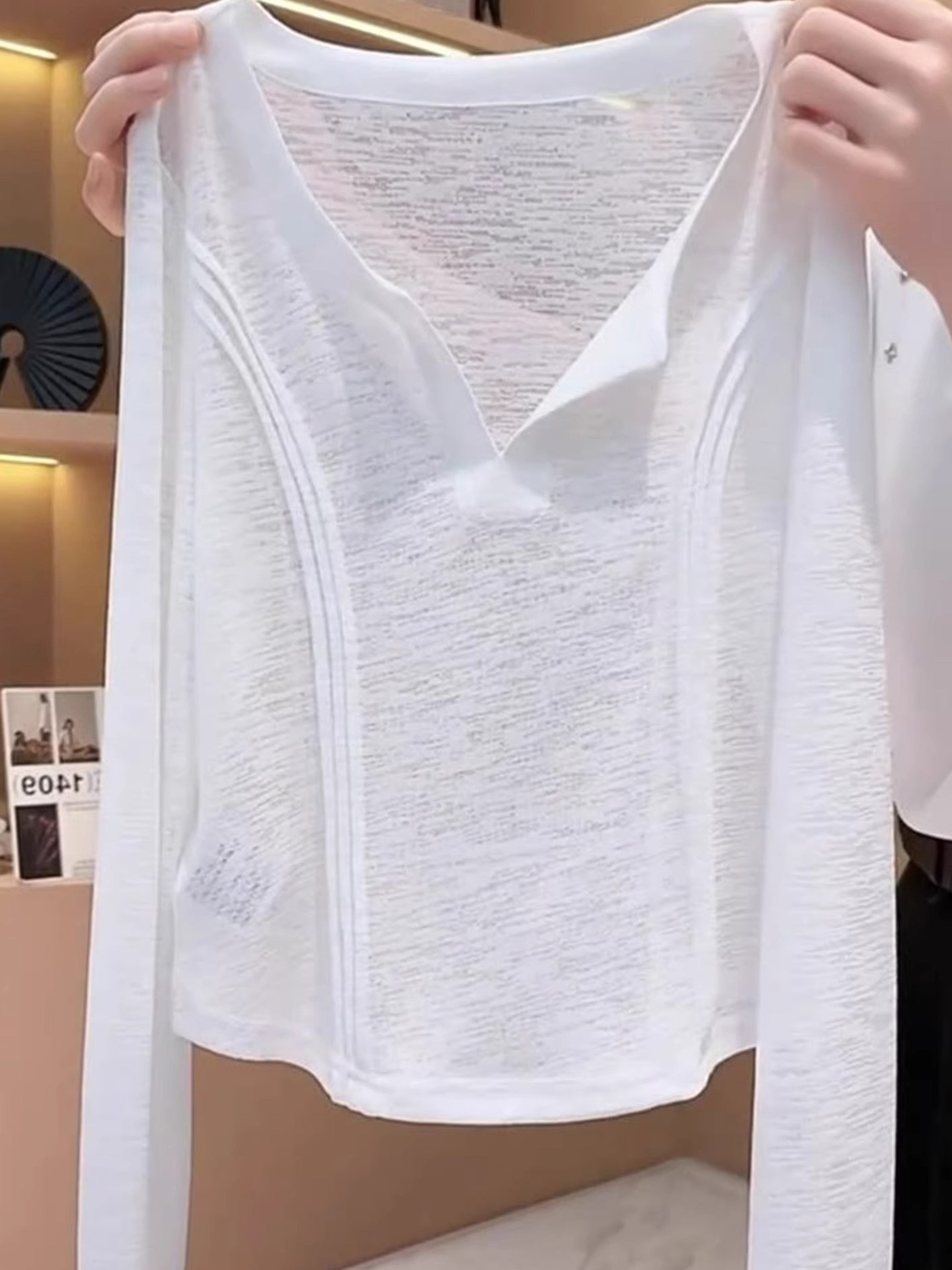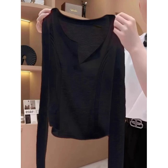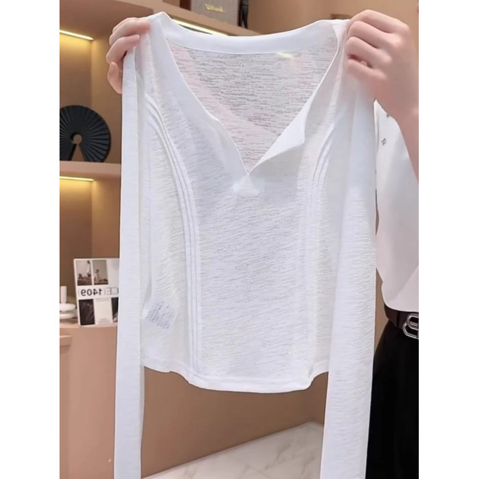 時尚減齡冰絲長袖防曬針織衫2026夏季輕薄微透顯瘦漂亮t恤上衣女