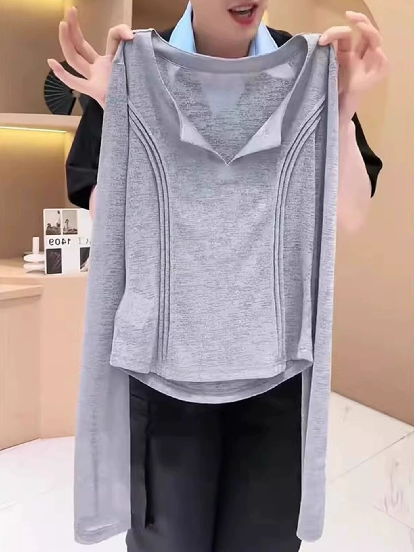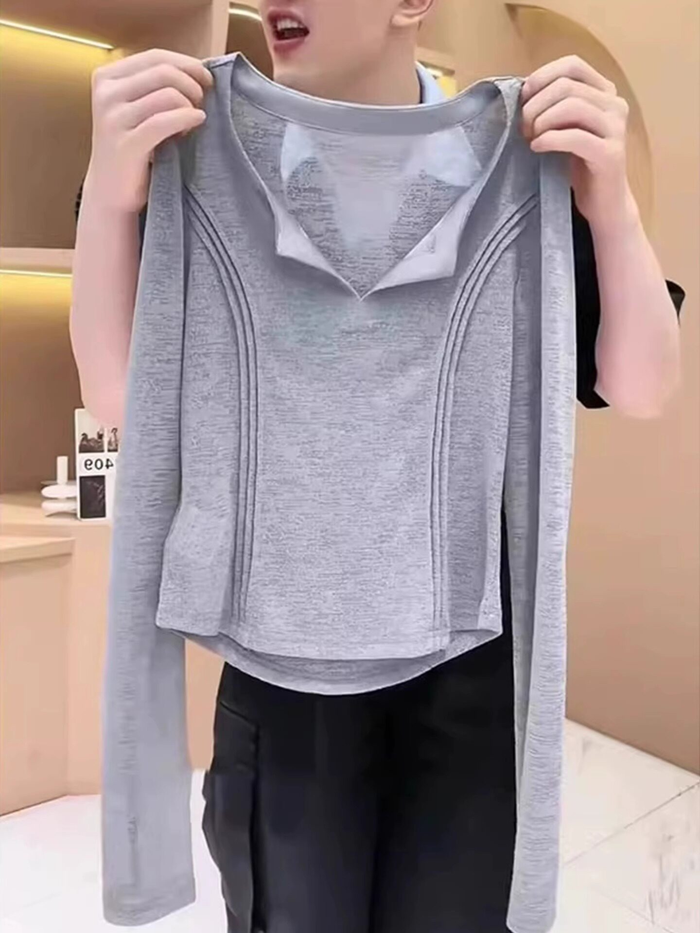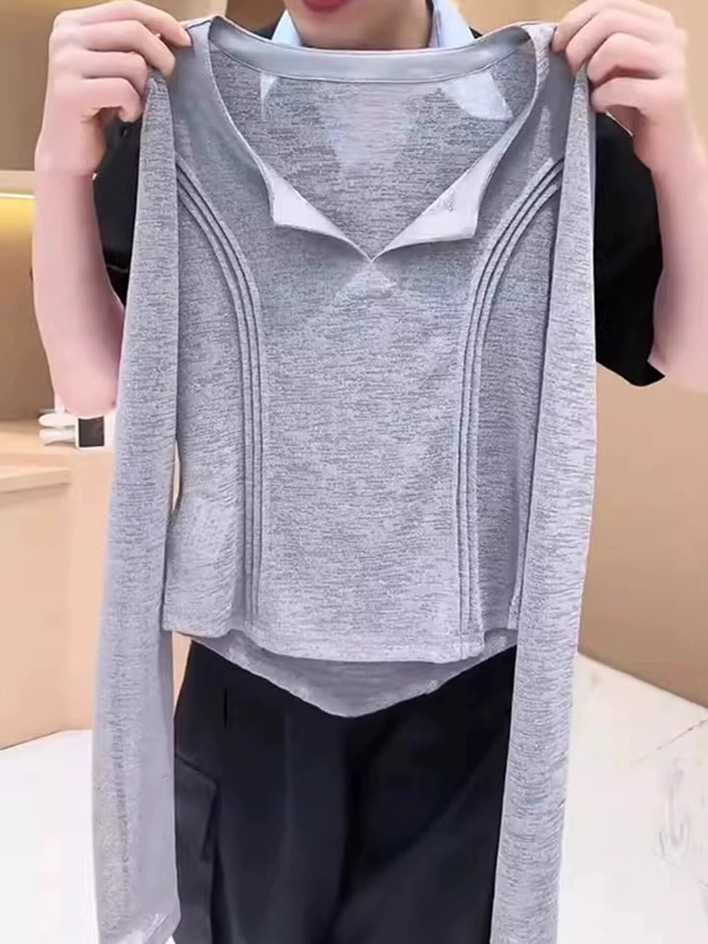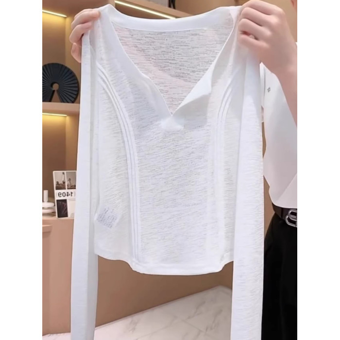 時尚減齡冰絲長袖防曬針織衫2026夏季輕薄微透顯瘦漂亮t恤上衣女