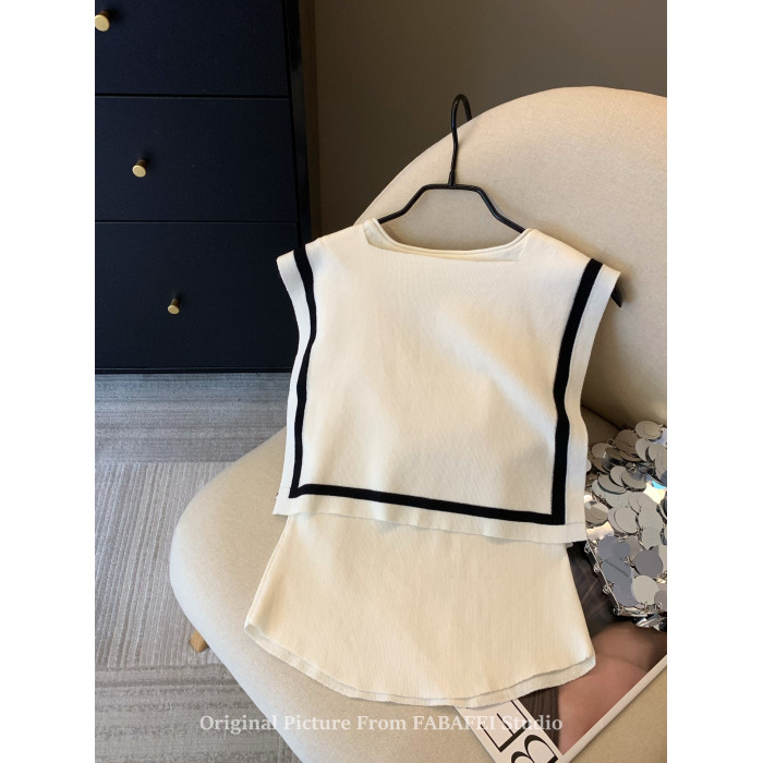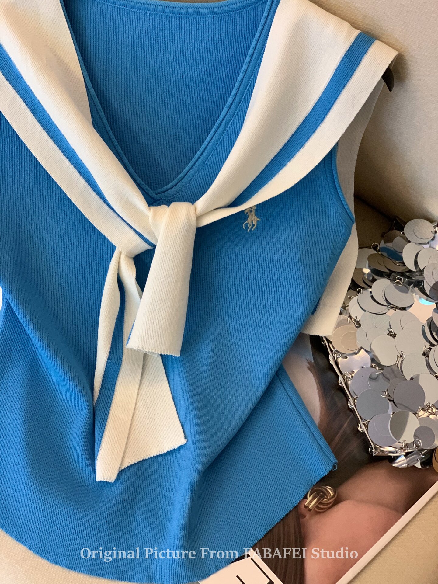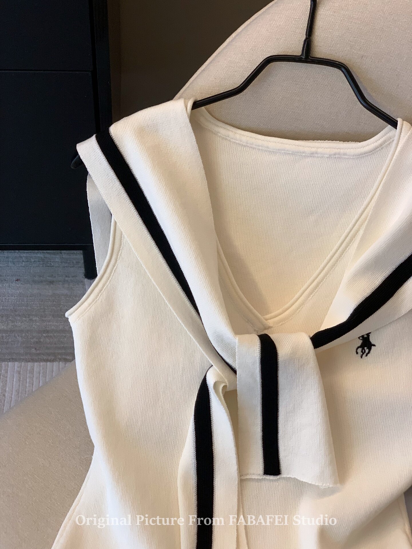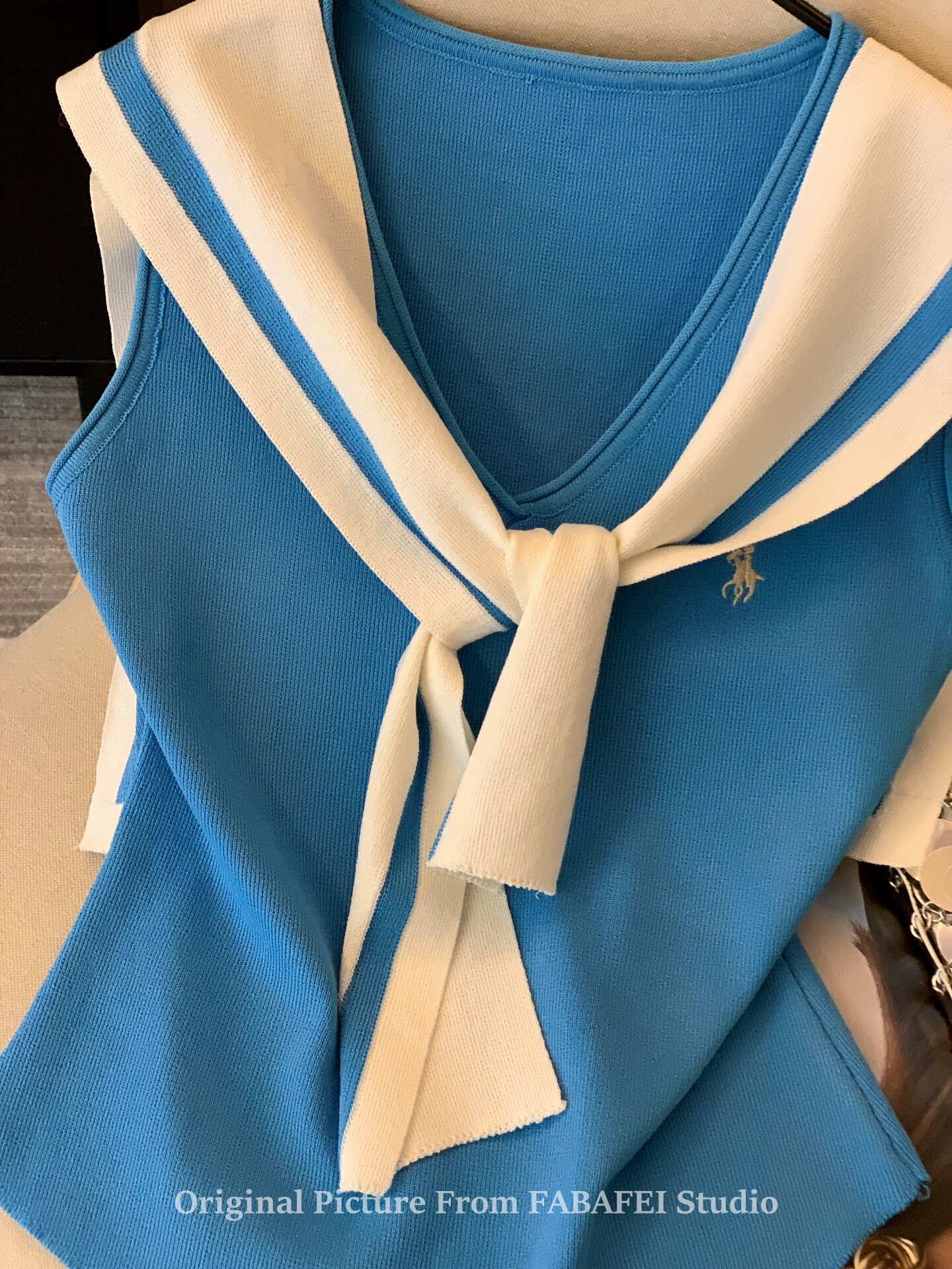 自畱爆款推薦~辣妹海軍領條紋針織背心女2026夏小馬刺綉披肩上衣