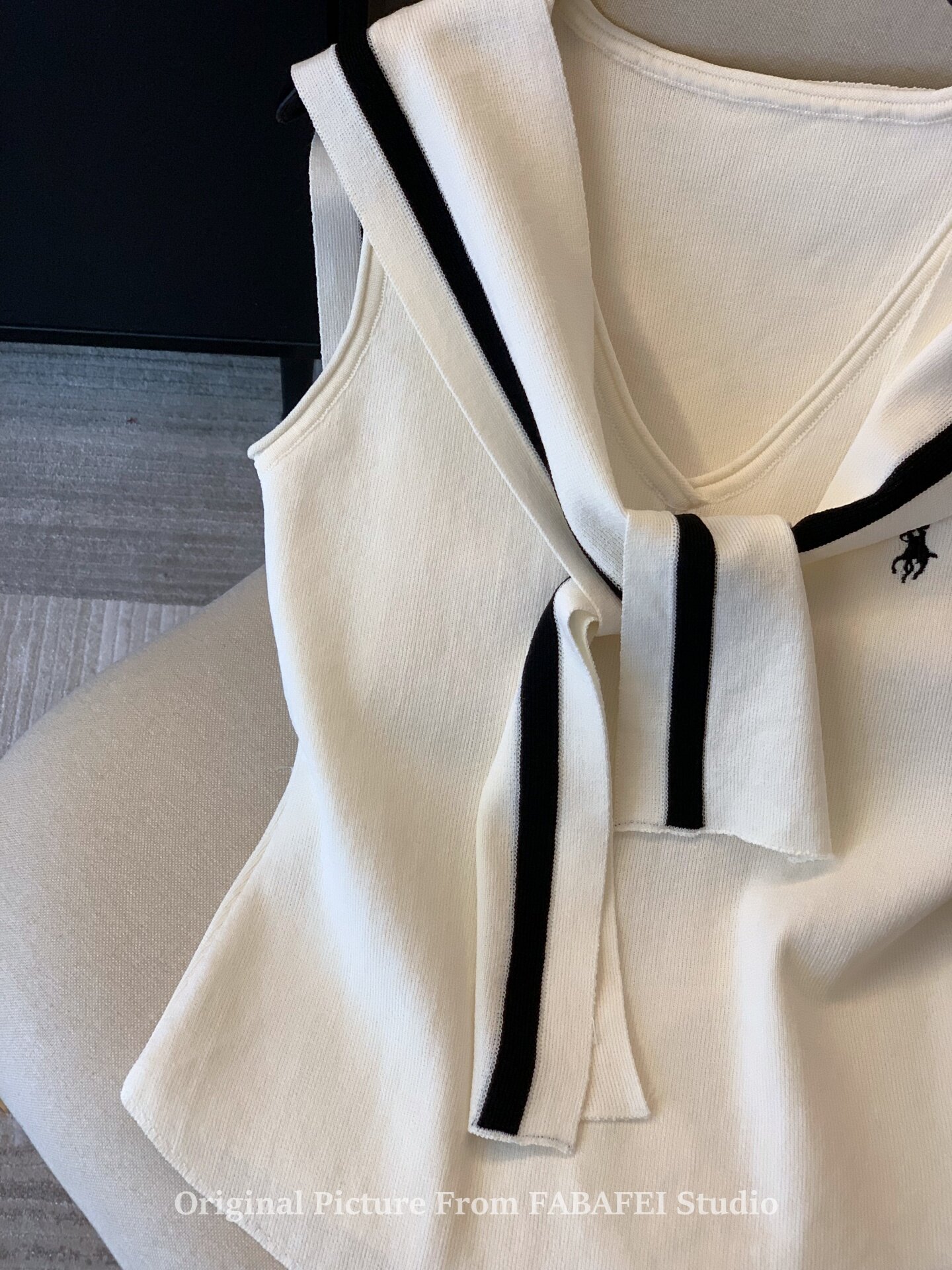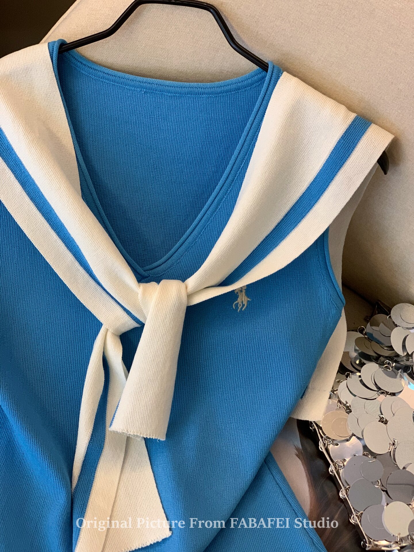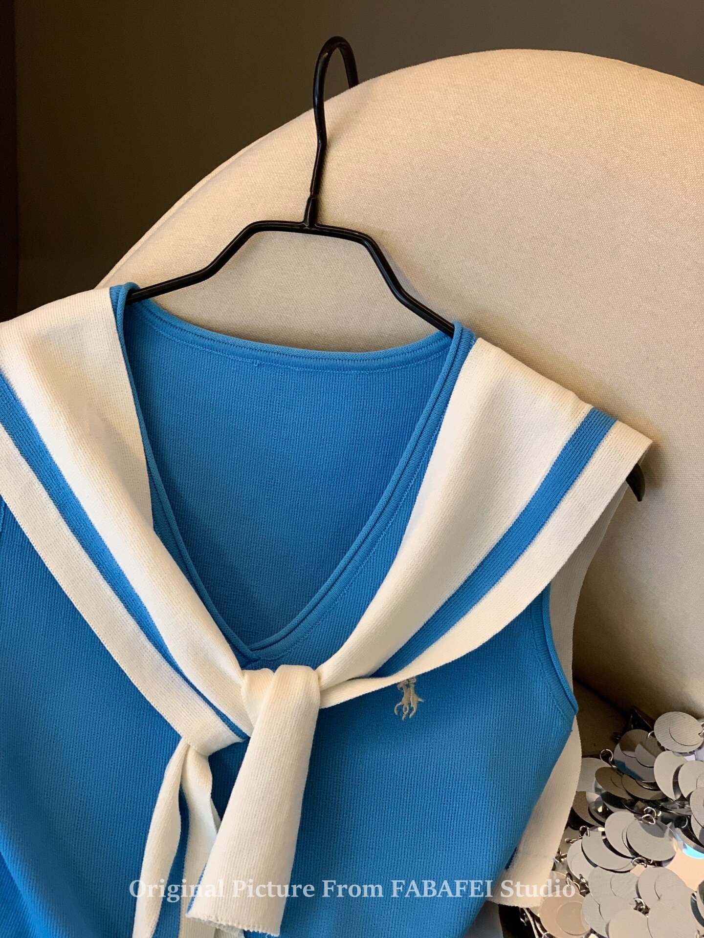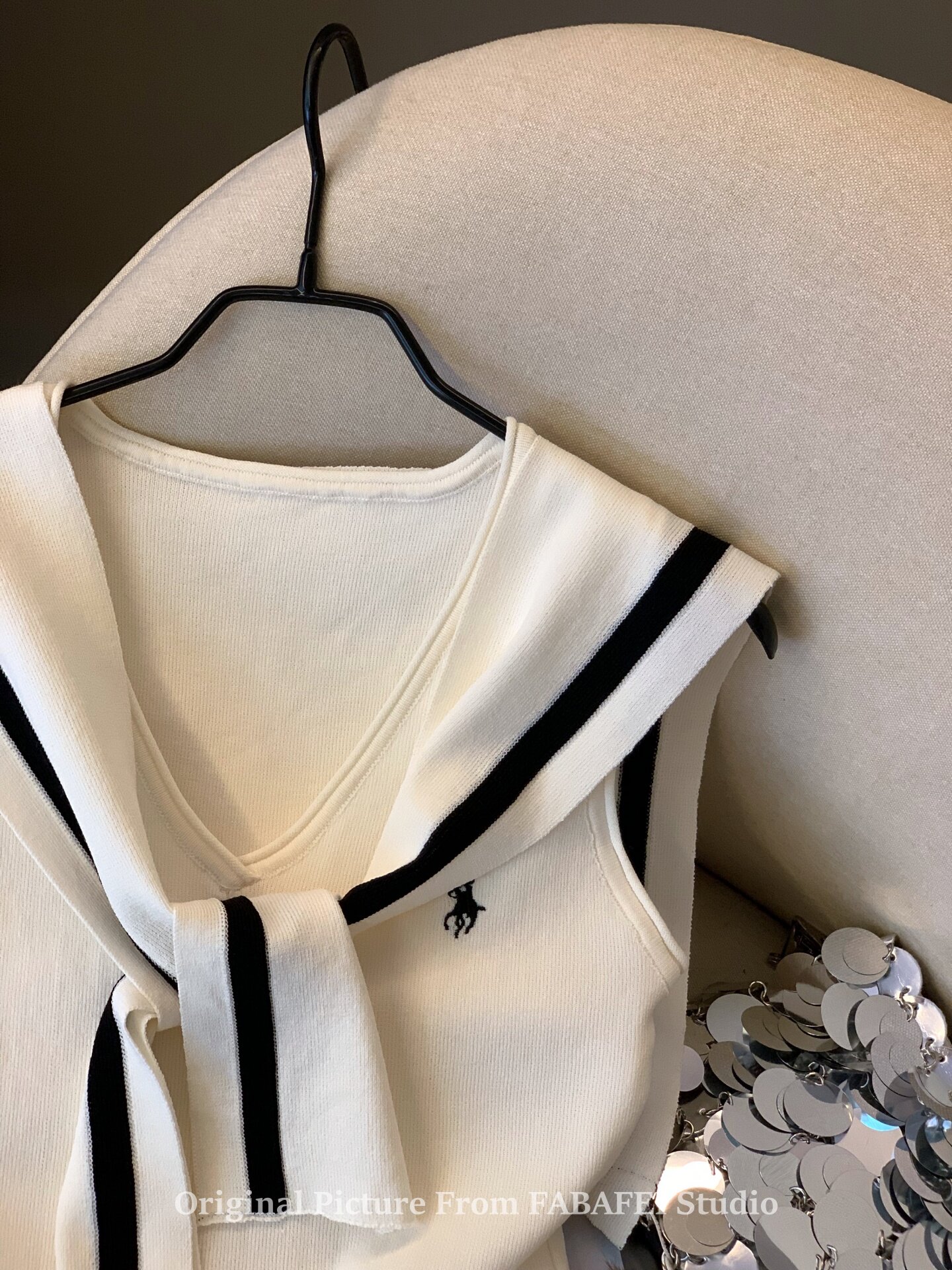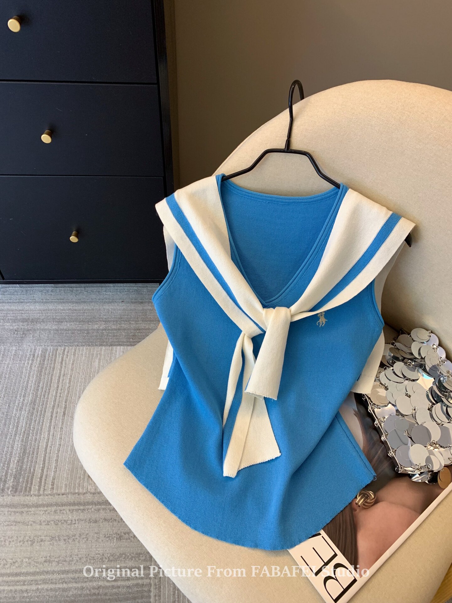 自畱爆款推薦~辣妹海軍領條紋針織背心女2026夏小馬刺綉披肩上衣