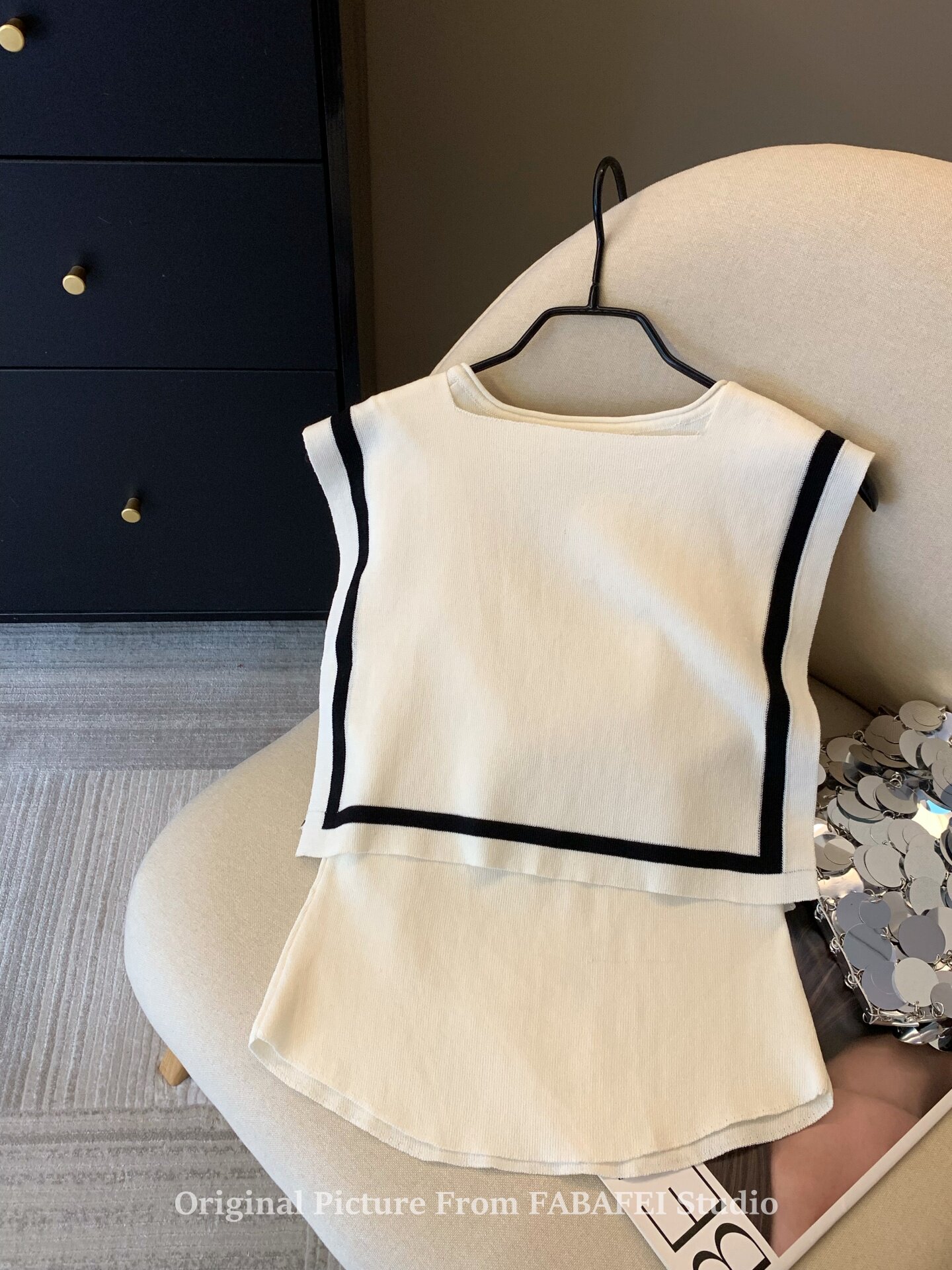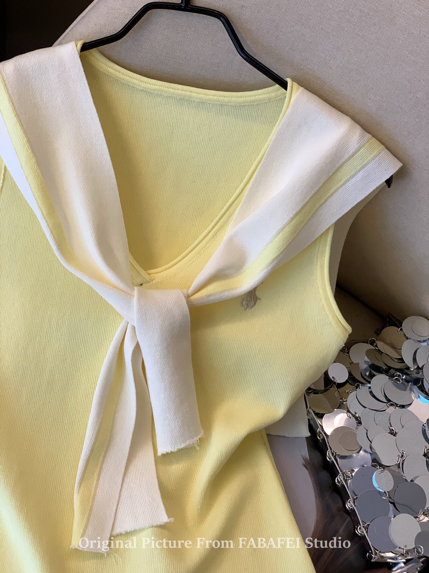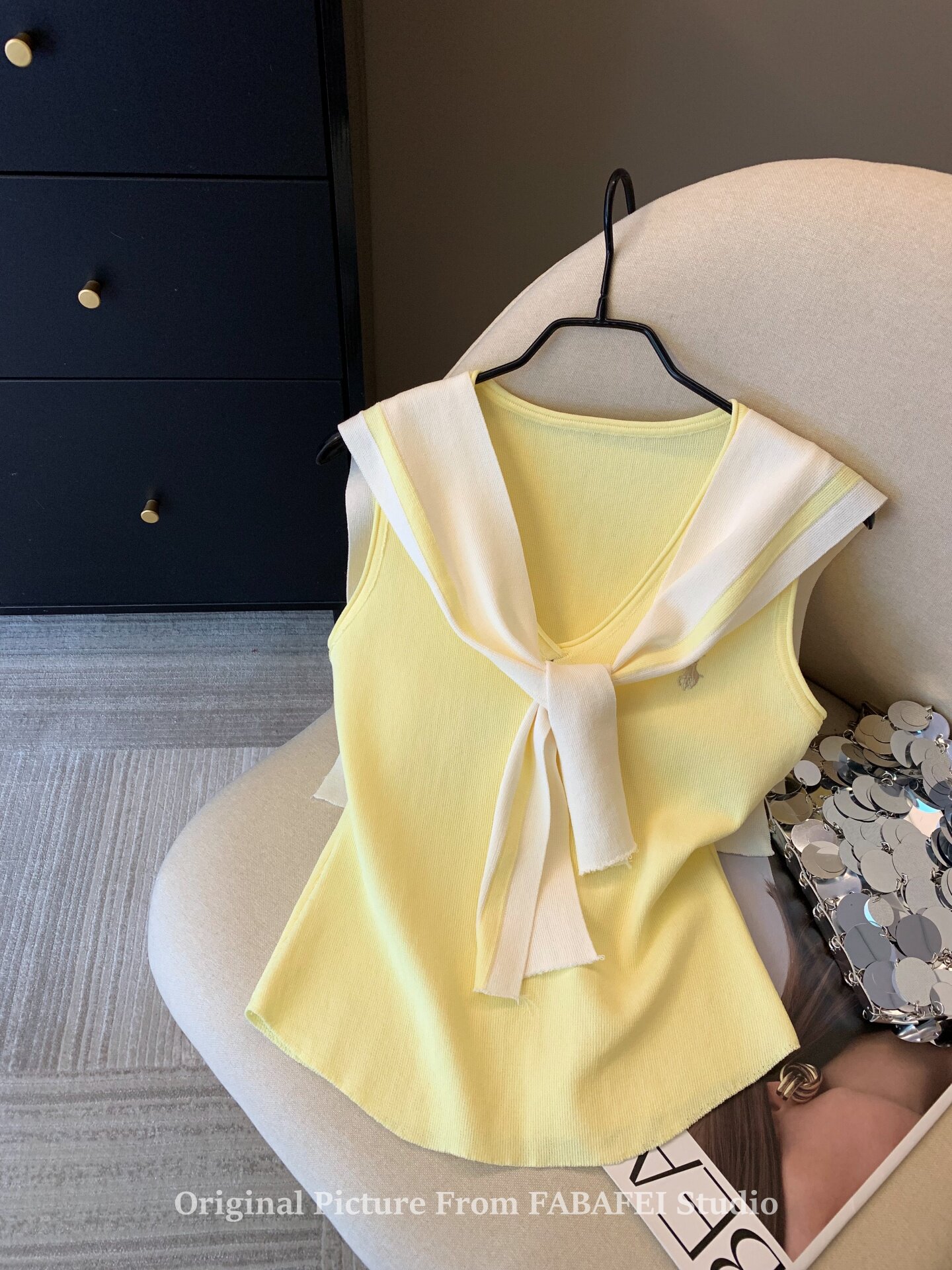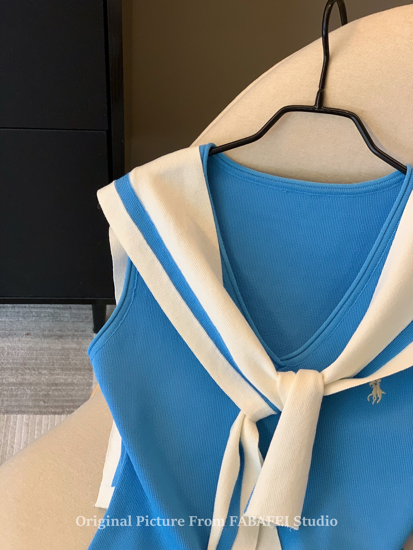 自畱爆款推薦~辣妹海軍領條紋針織背心女2026夏小馬刺綉披肩上衣