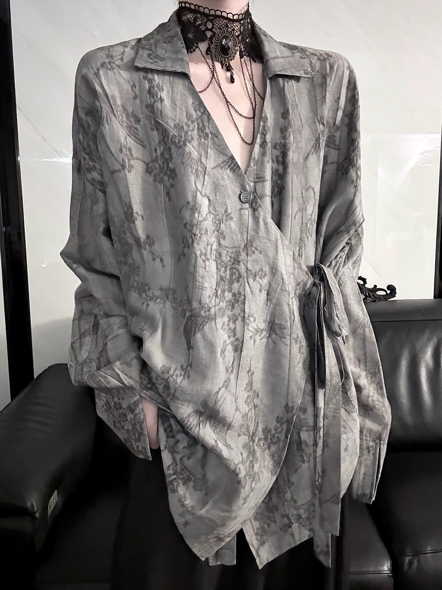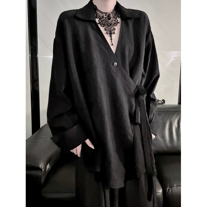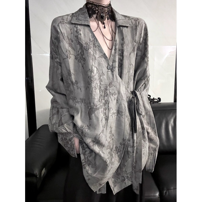 Aont 新中式炒色刺綉國風長袖襯衫秋季道袍設計感小衆中性風上衣
