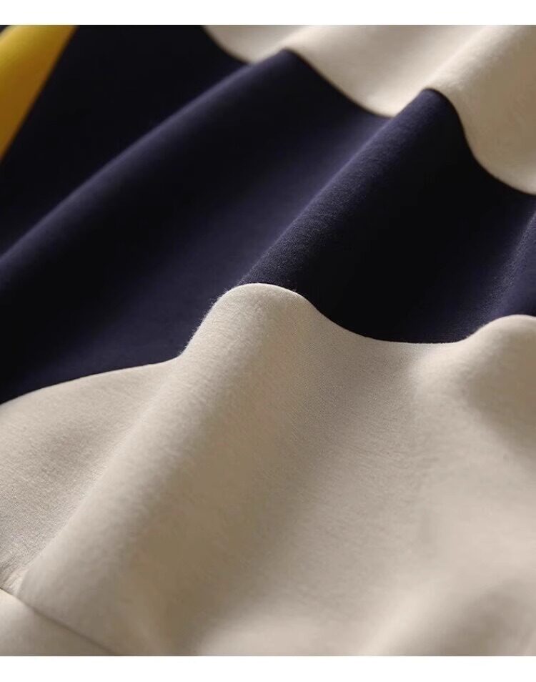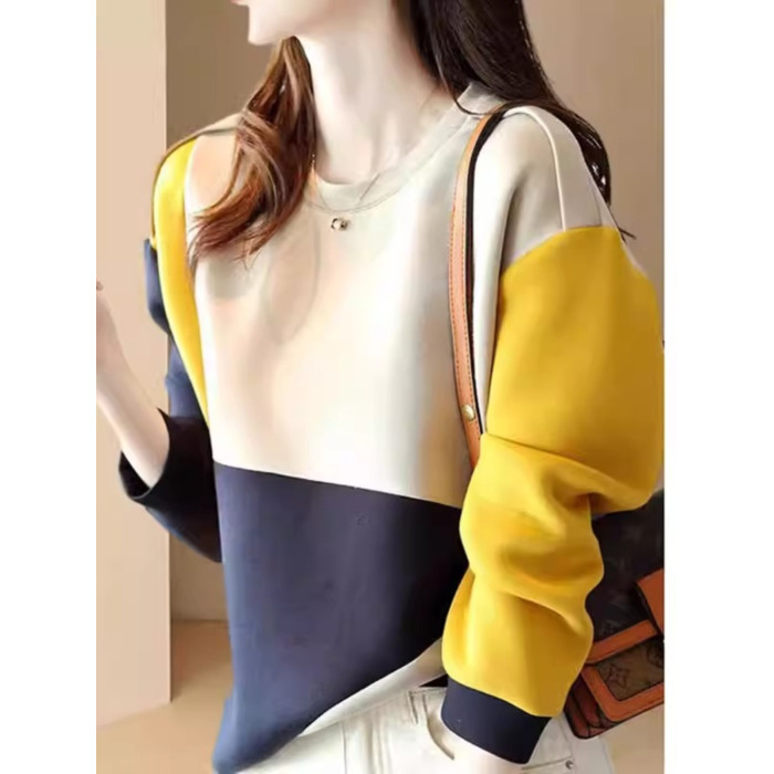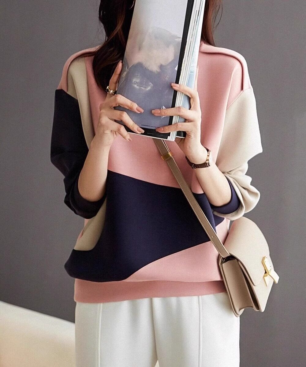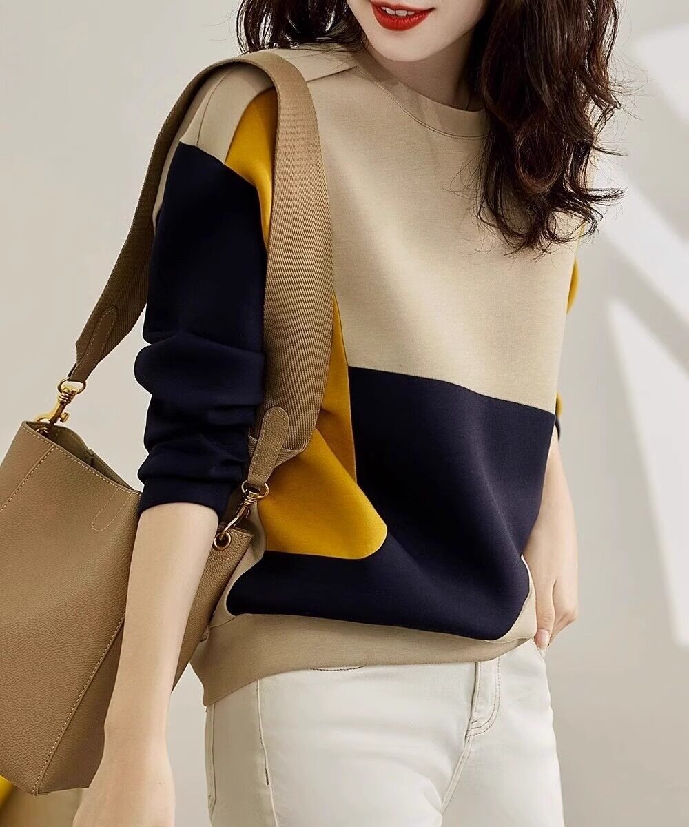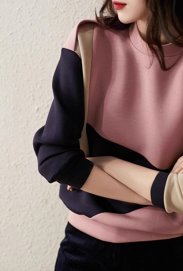 時尚高級感2025年新款秋季女裝法式設計休閒圓領撞色拼接寬鬆衛衣
