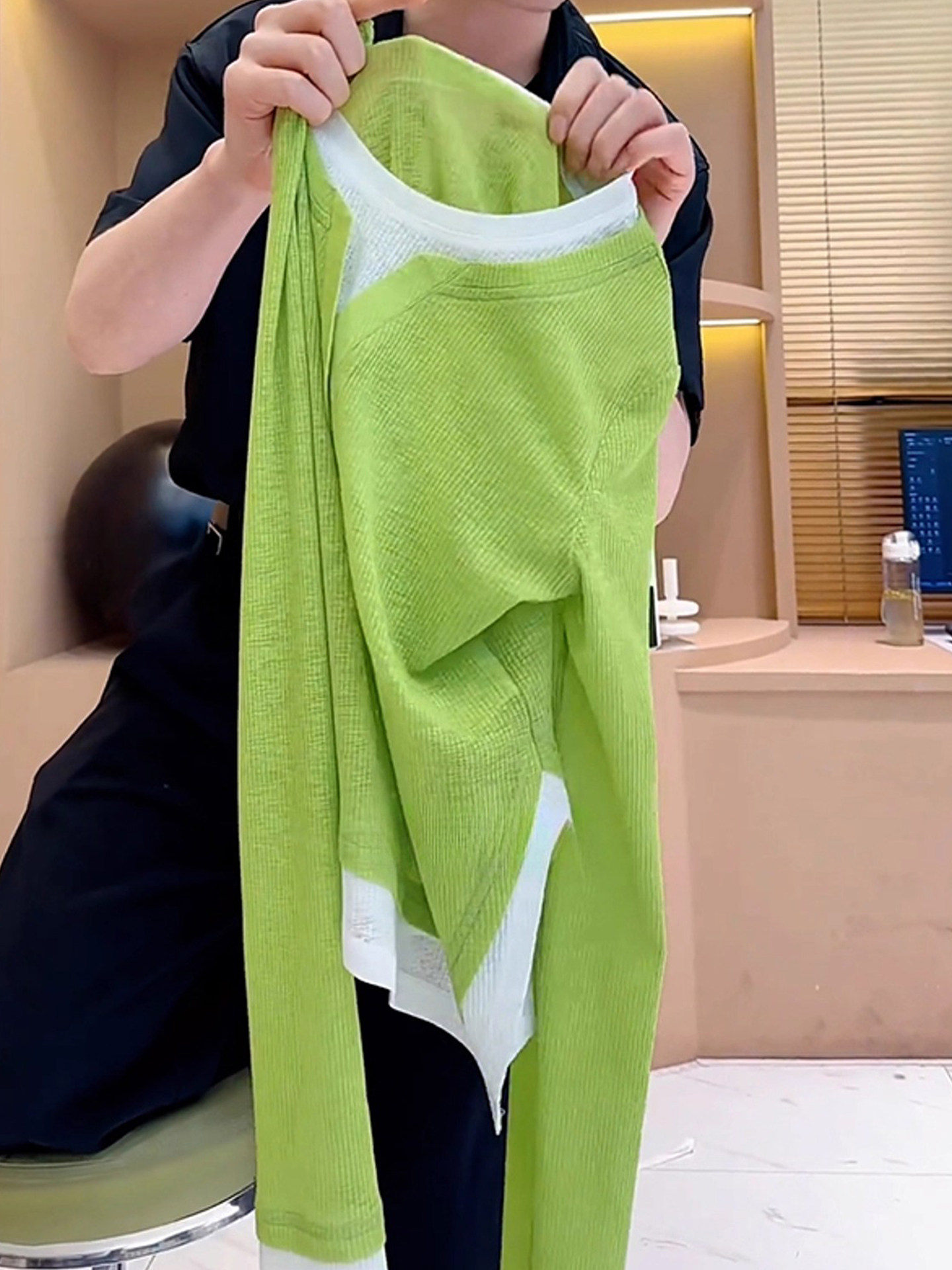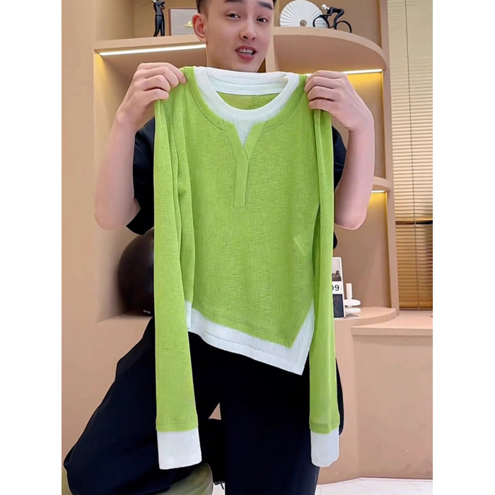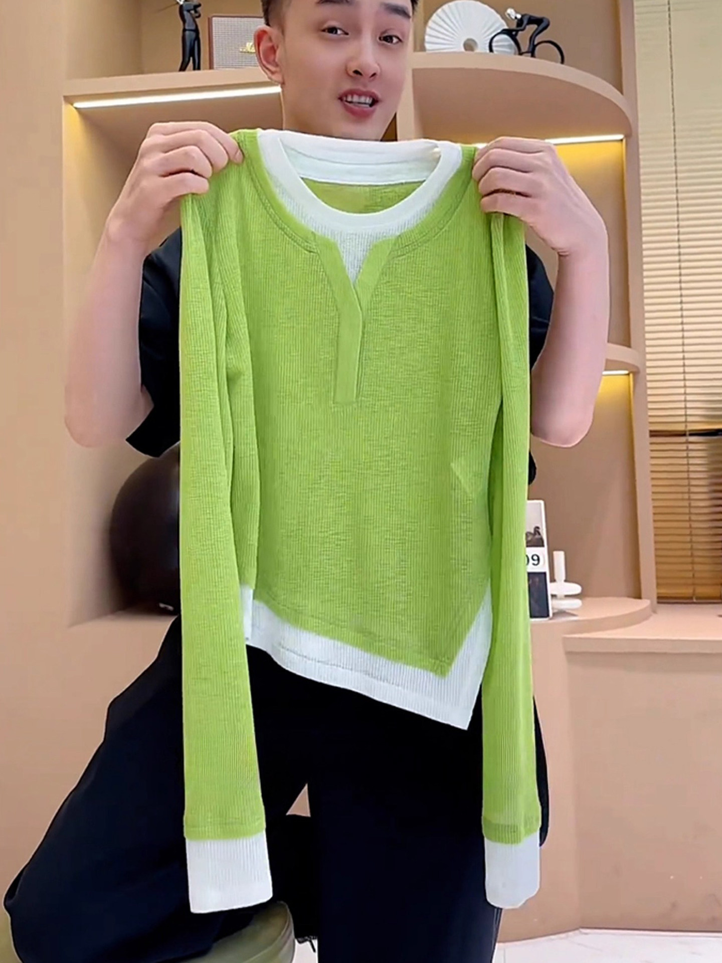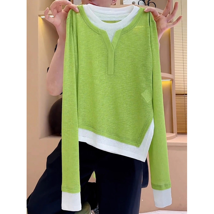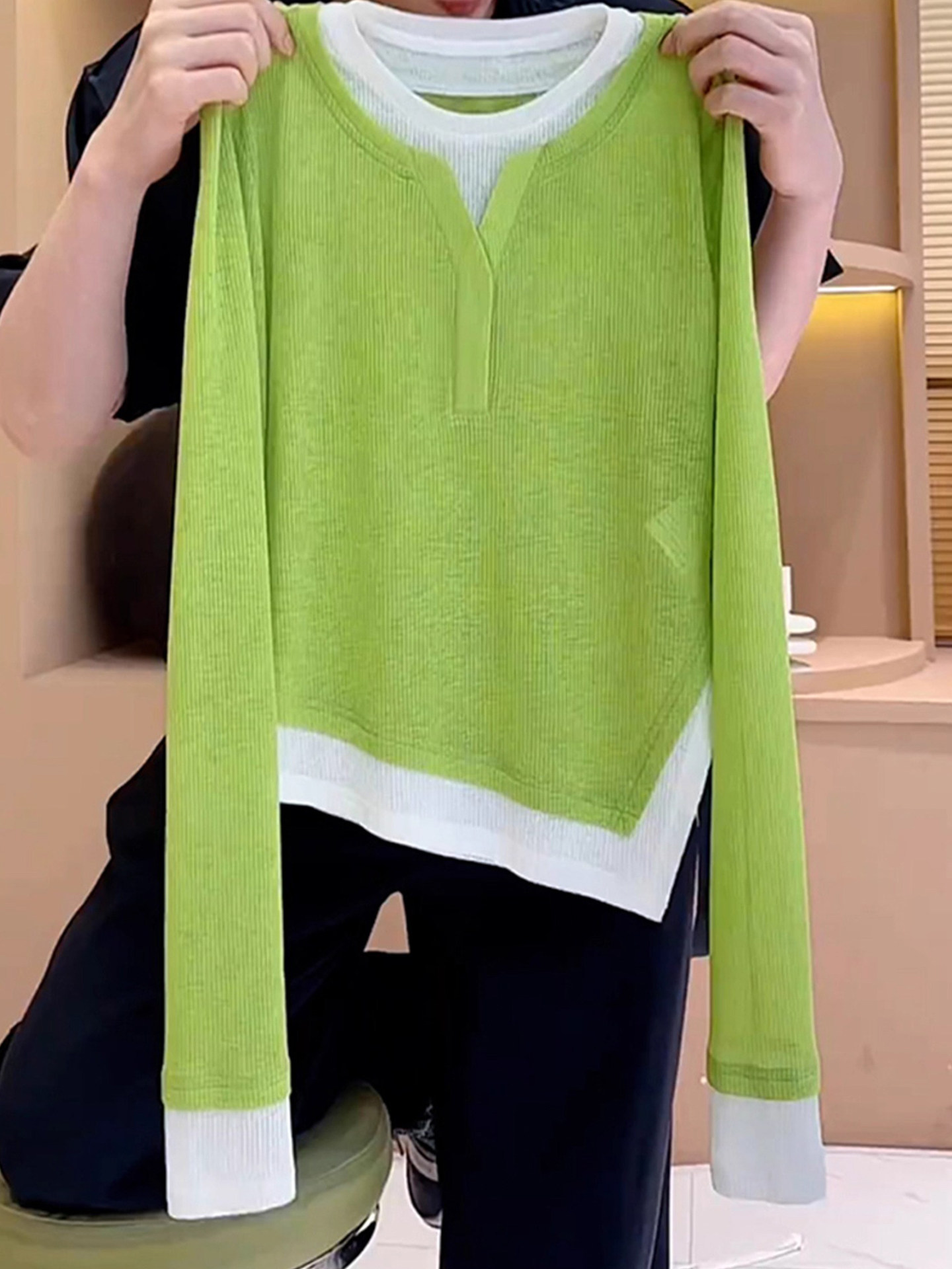 假兩件套頭2025秋季撞色防曬衣休閒長袖流行高級針織上衣t恤顯瘦