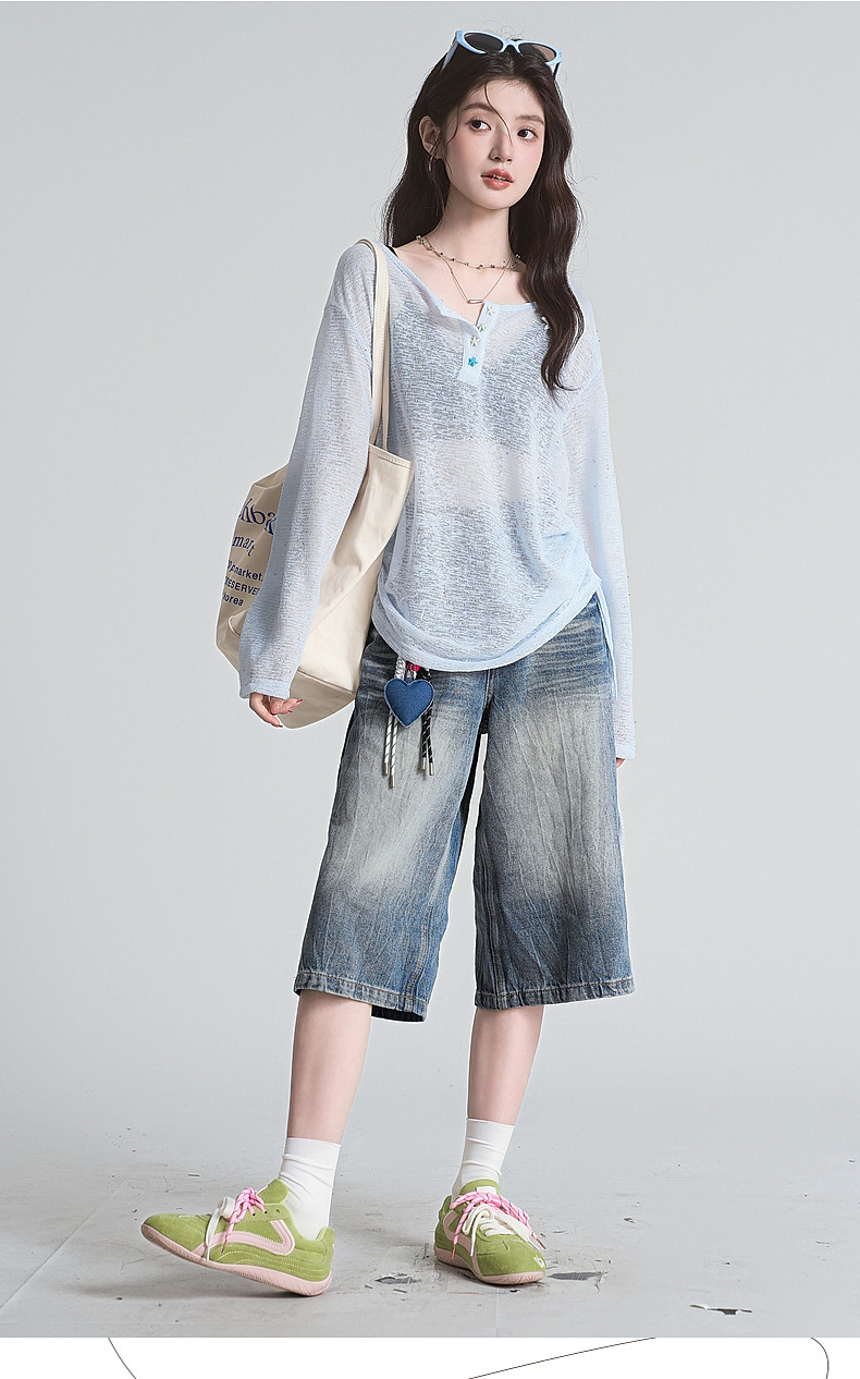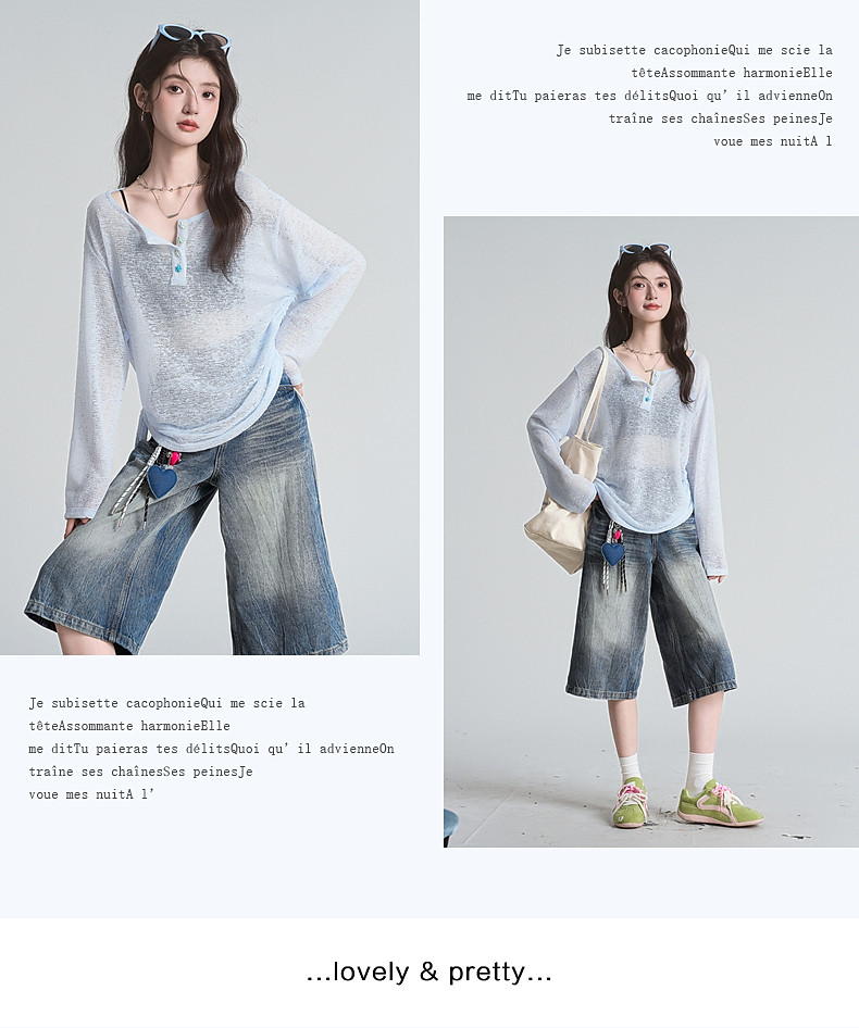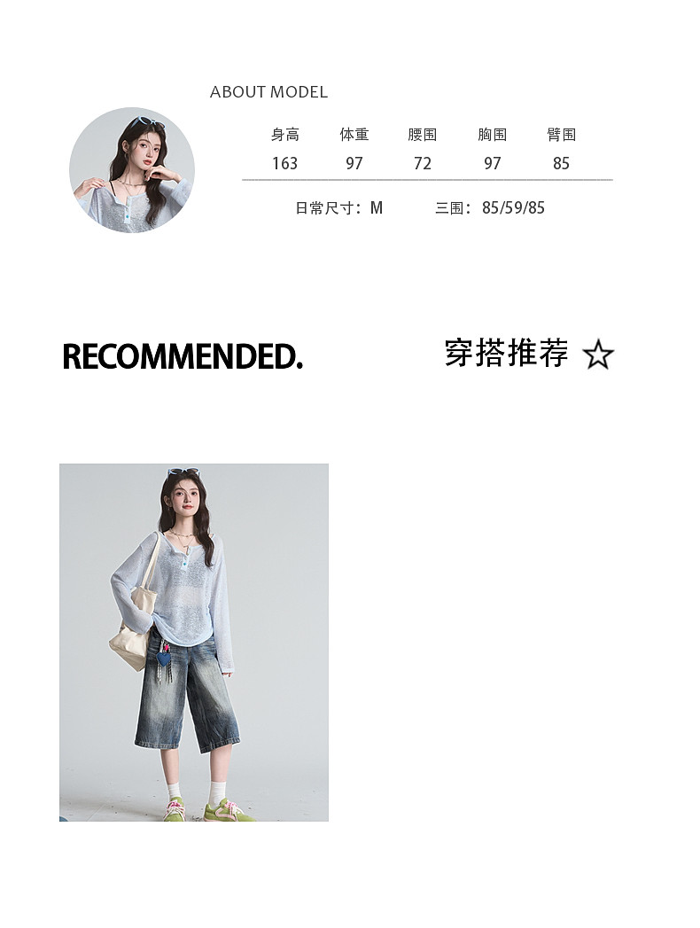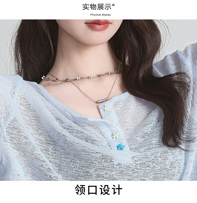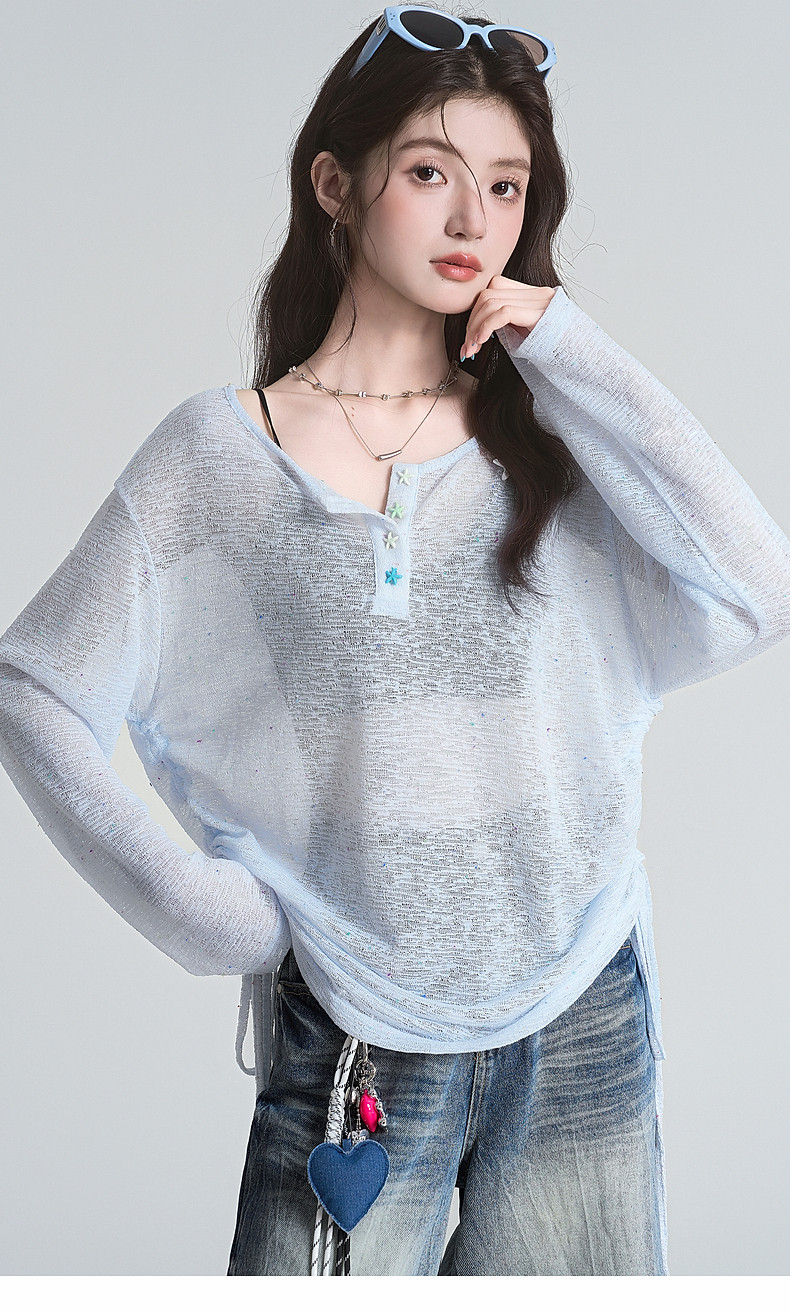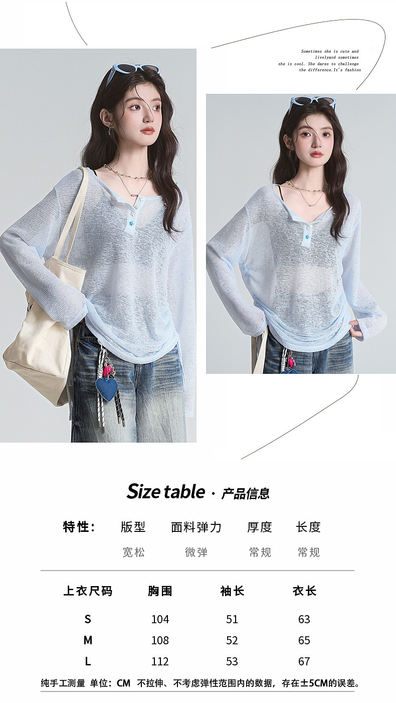 拉夏貝爾韓版長袖防曬罩衫女2025夏季新款抽繩設計薄款寬鬆T恤潮