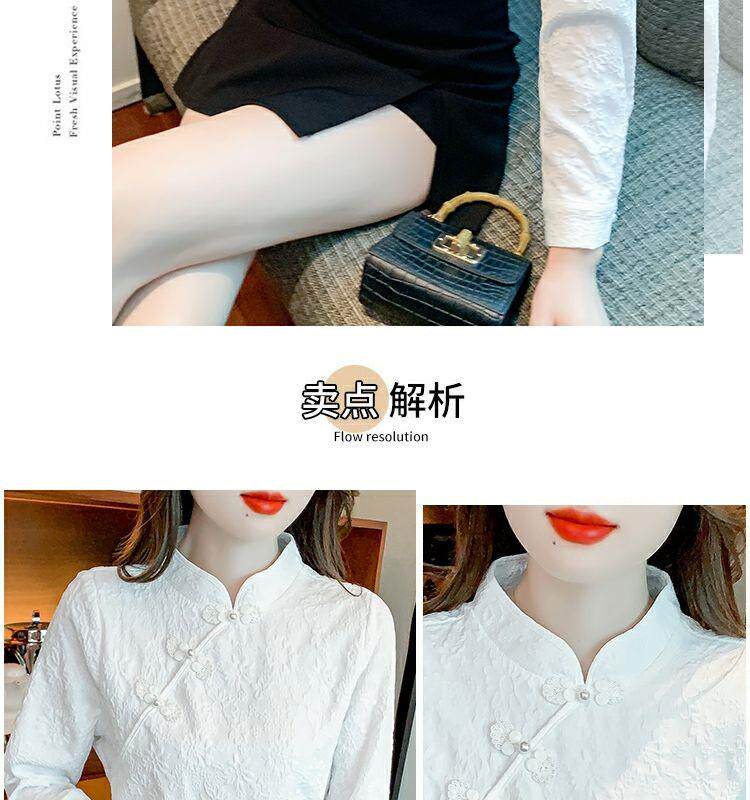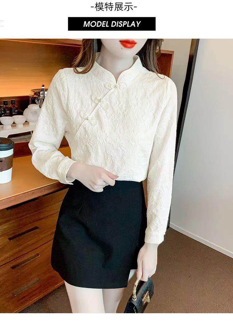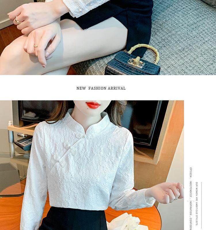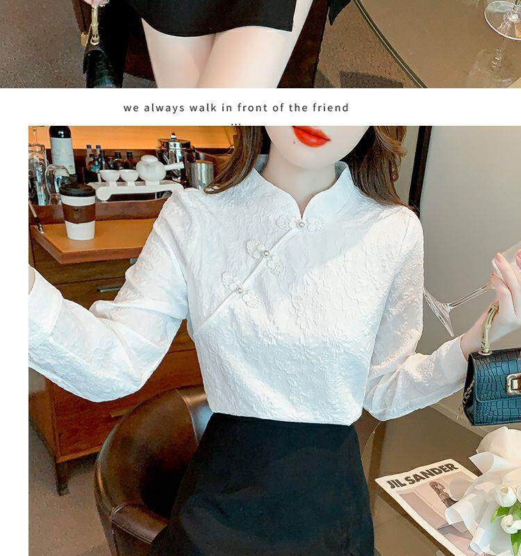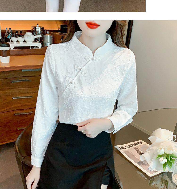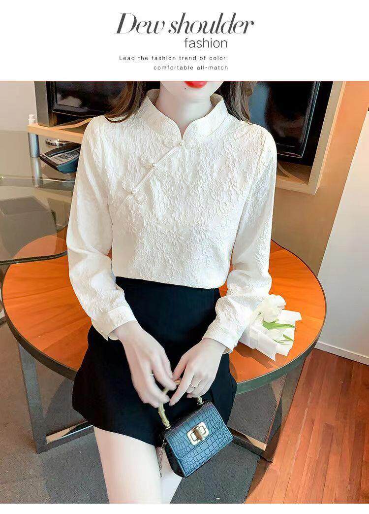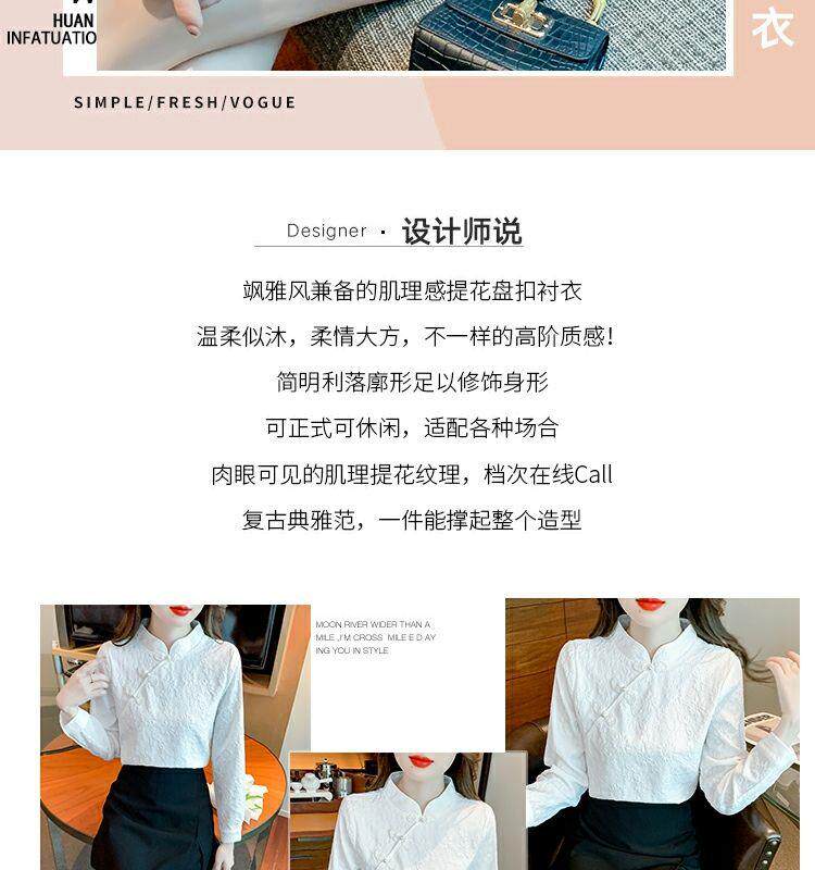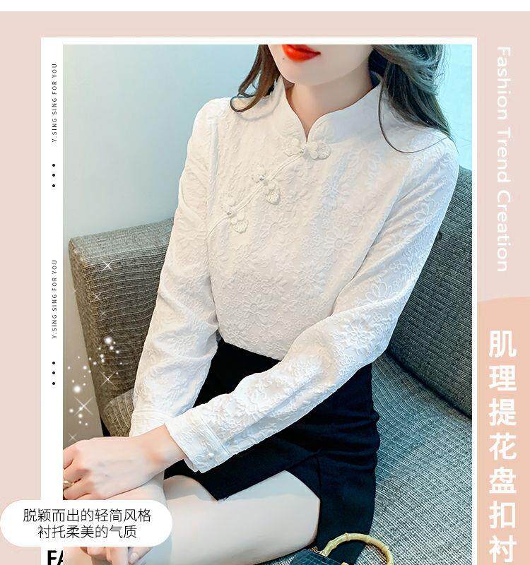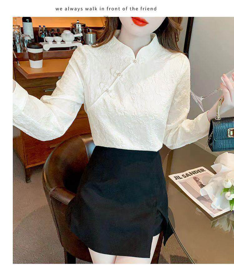 改良版盤釦長袖襯衫女2024秋季新款新中式內搭打底衫時尚氣質上衣