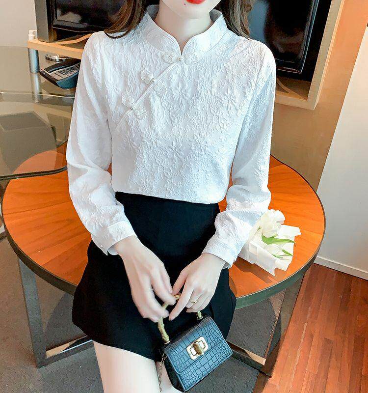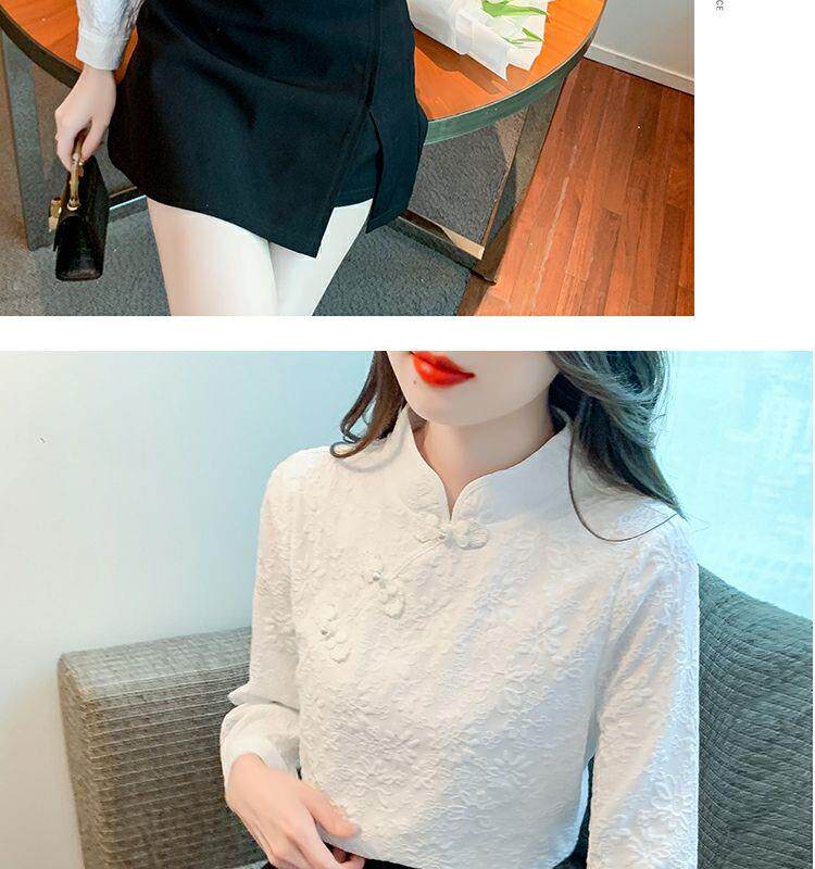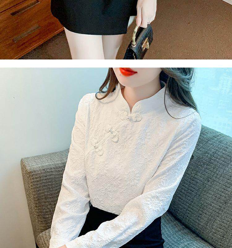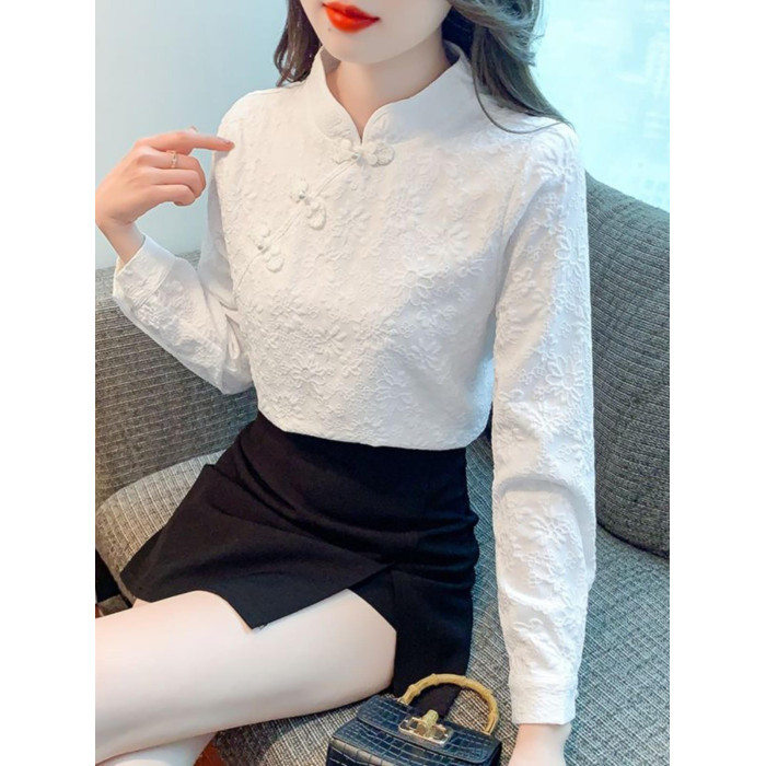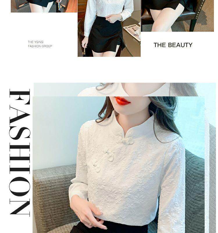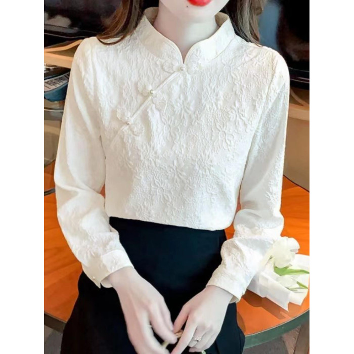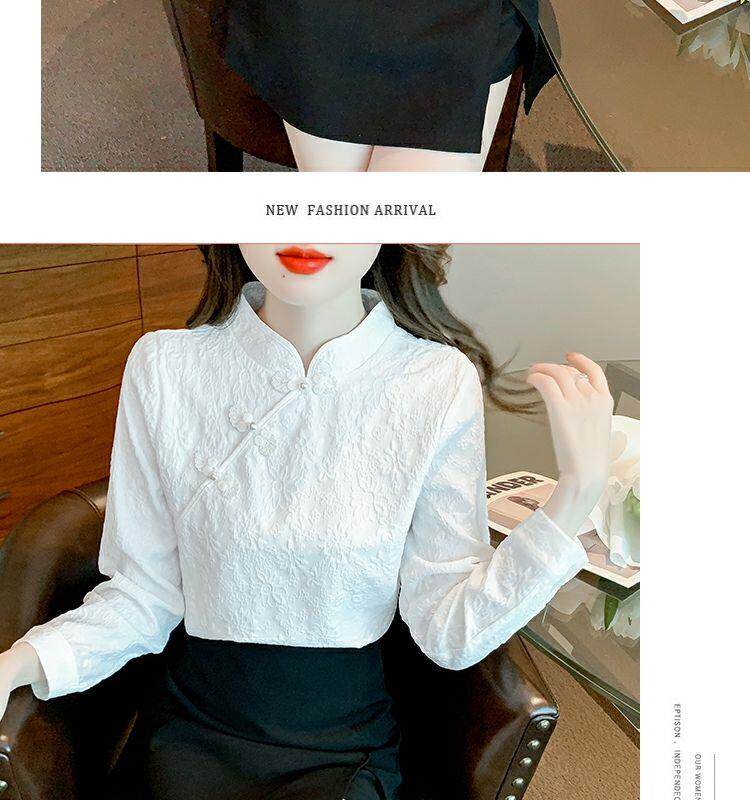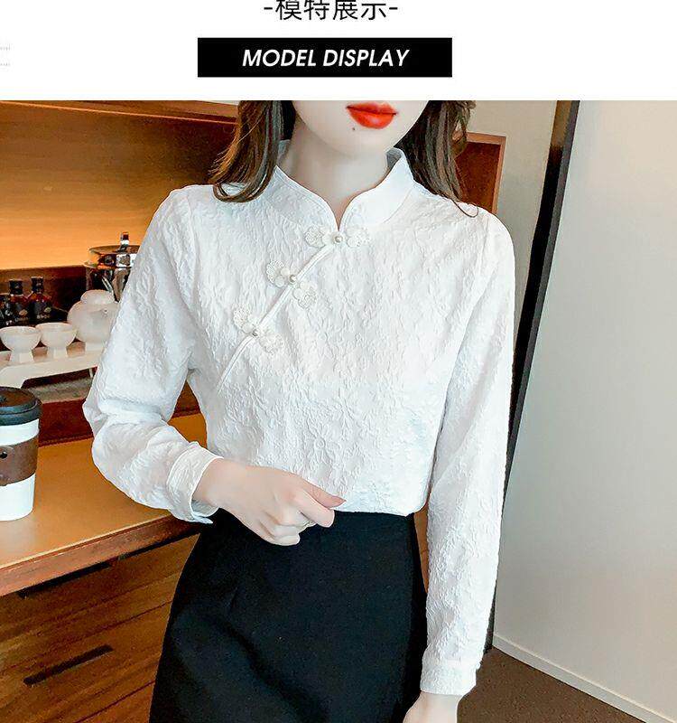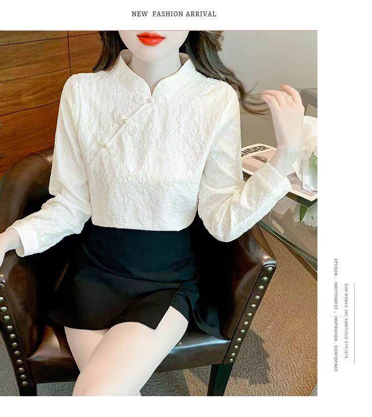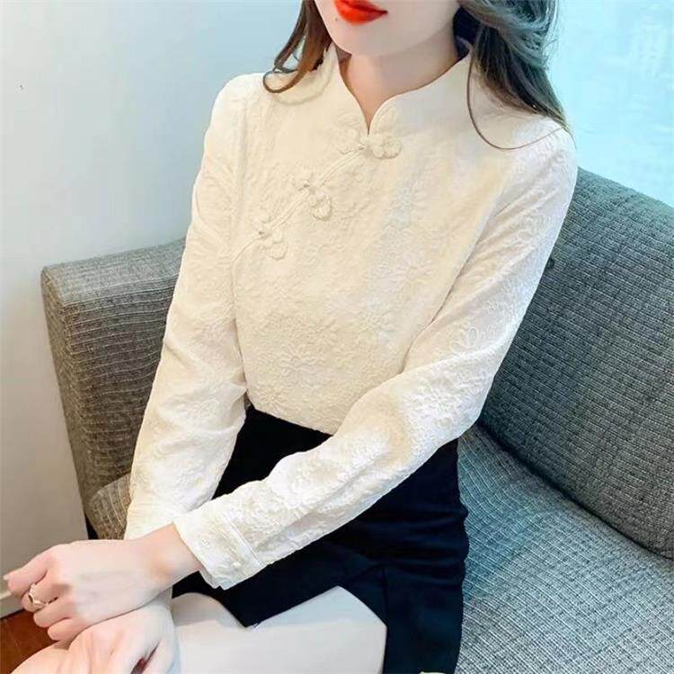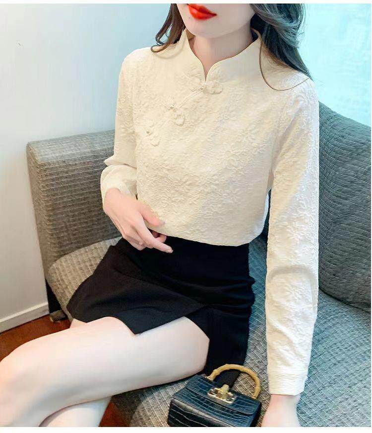 改良版盤釦長袖襯衫女2024秋季新款新中式內搭打底衫時尚氣質上衣