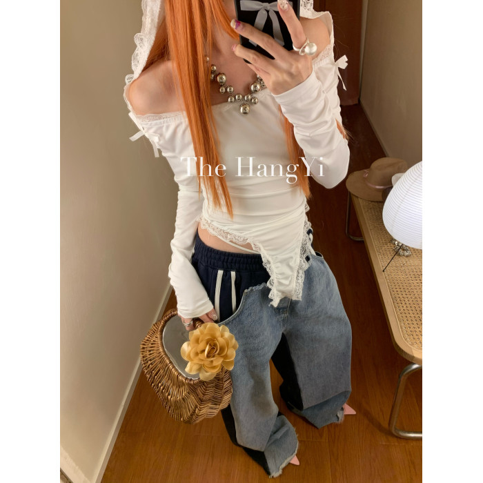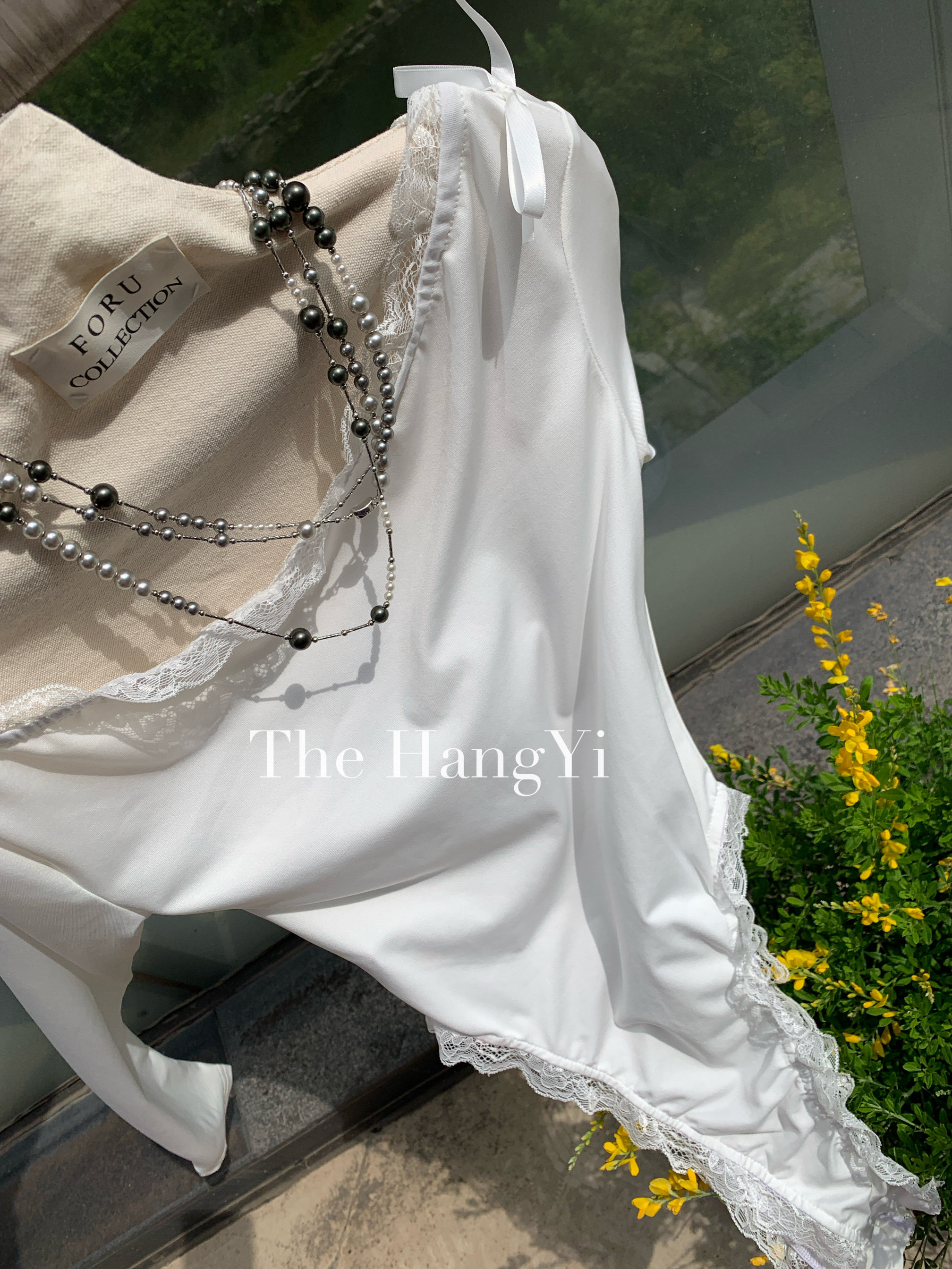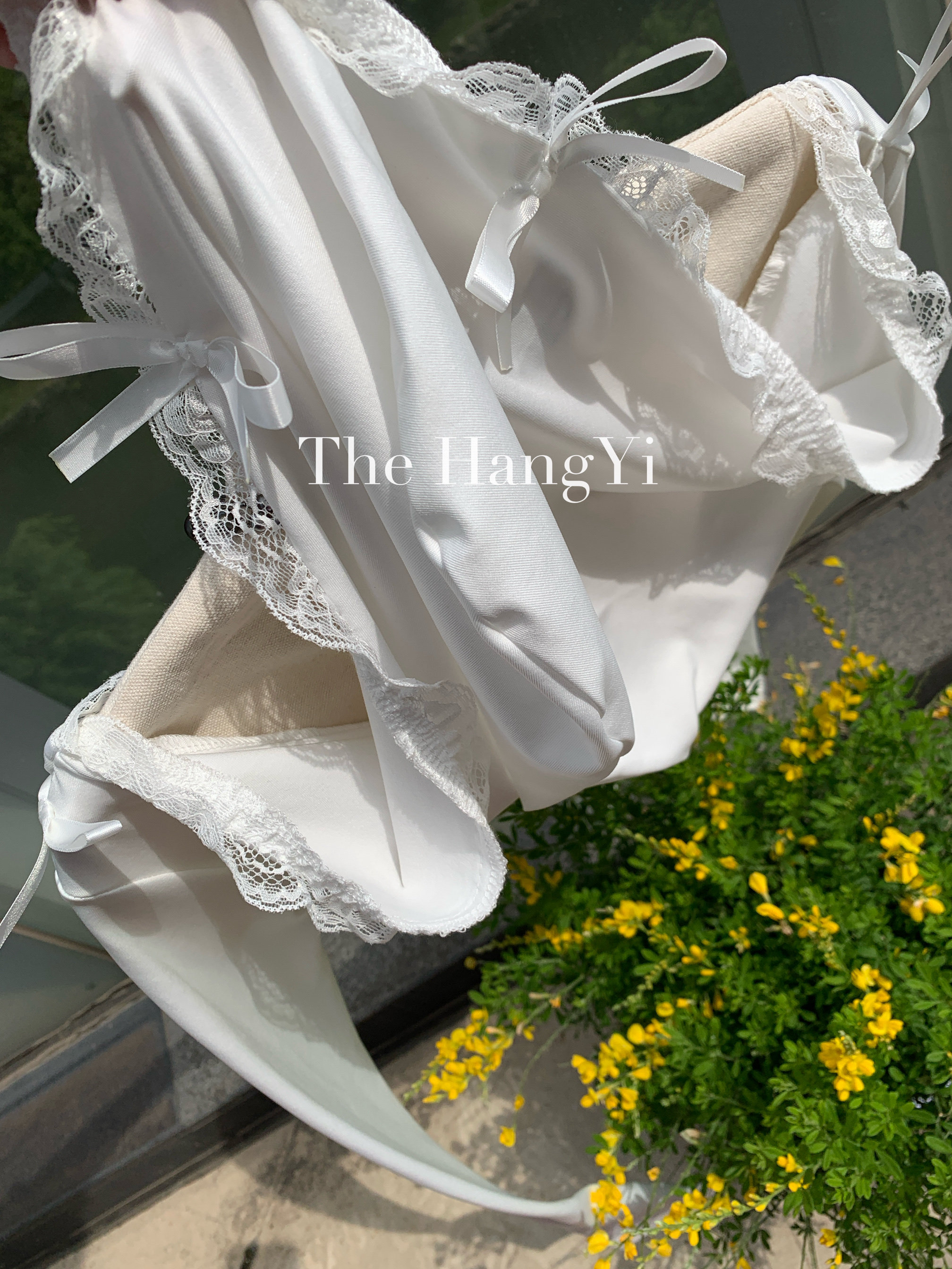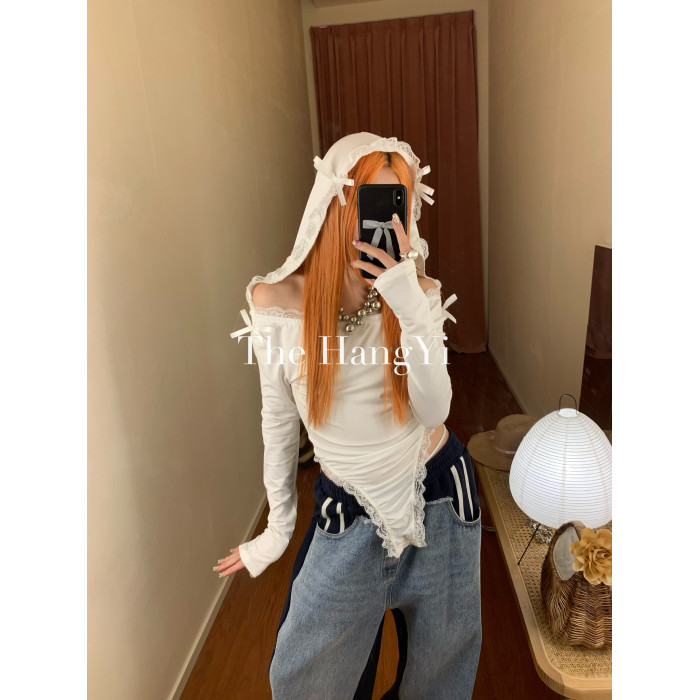 The HangYi/夏季原創連帽蕾絲蝴蝶結性感顯瘦打底連體衣打底衫女