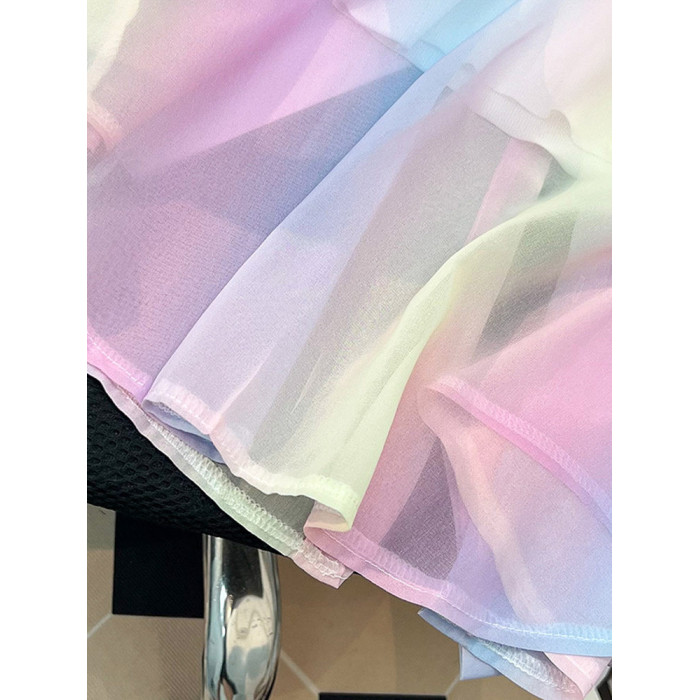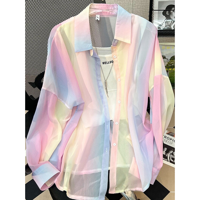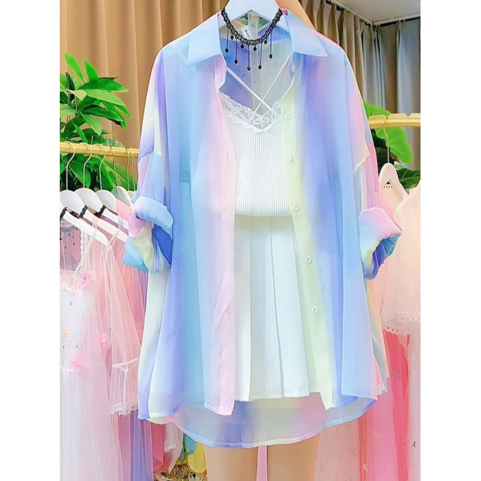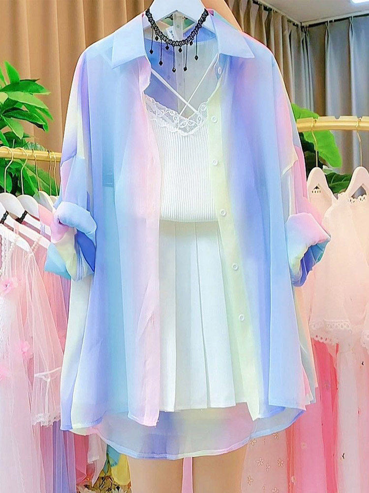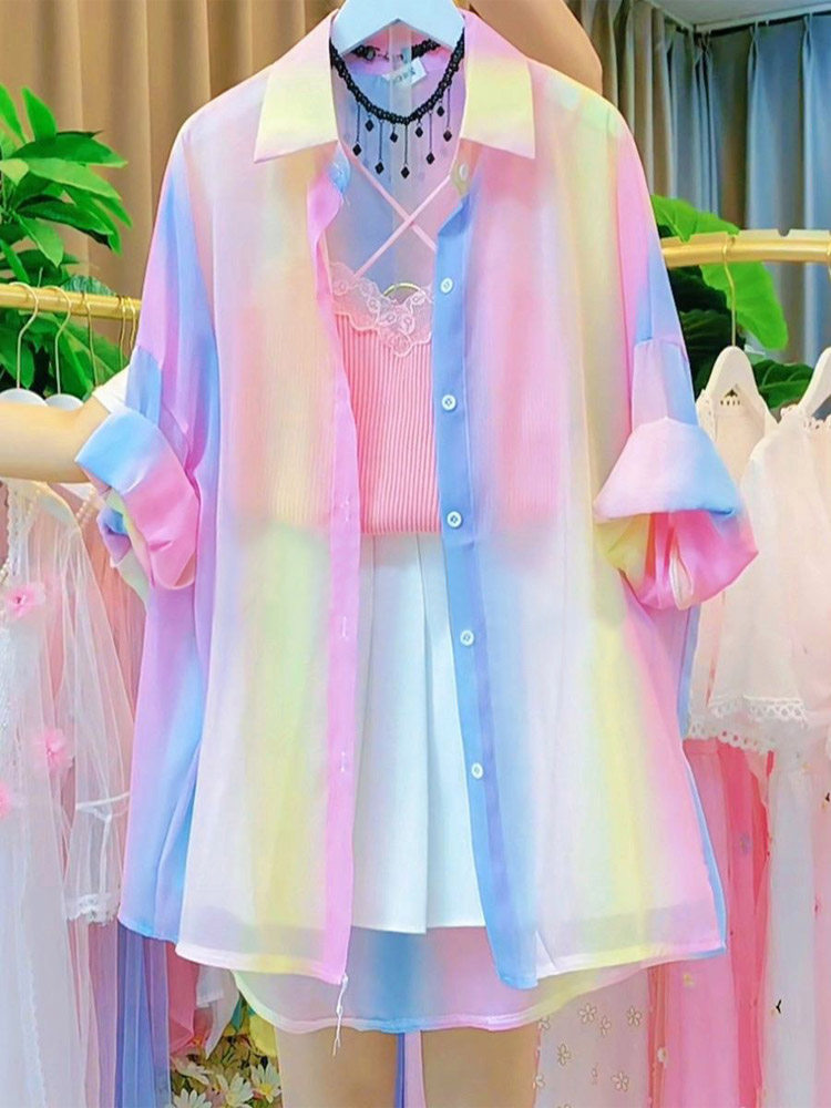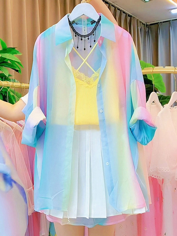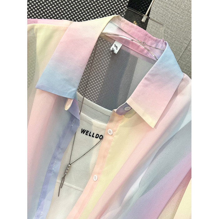 法式時尚彩虹冰絲防曬衣女2026夏款顯瘦雪紡襯衣薄款防曬開衫外套
