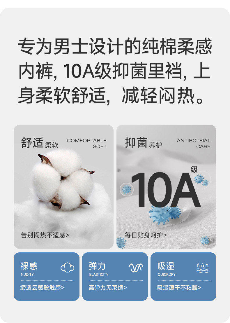 雅鹿男士內褲男生純棉抗菌四角平角短褲頭男款運動2026新款青少年