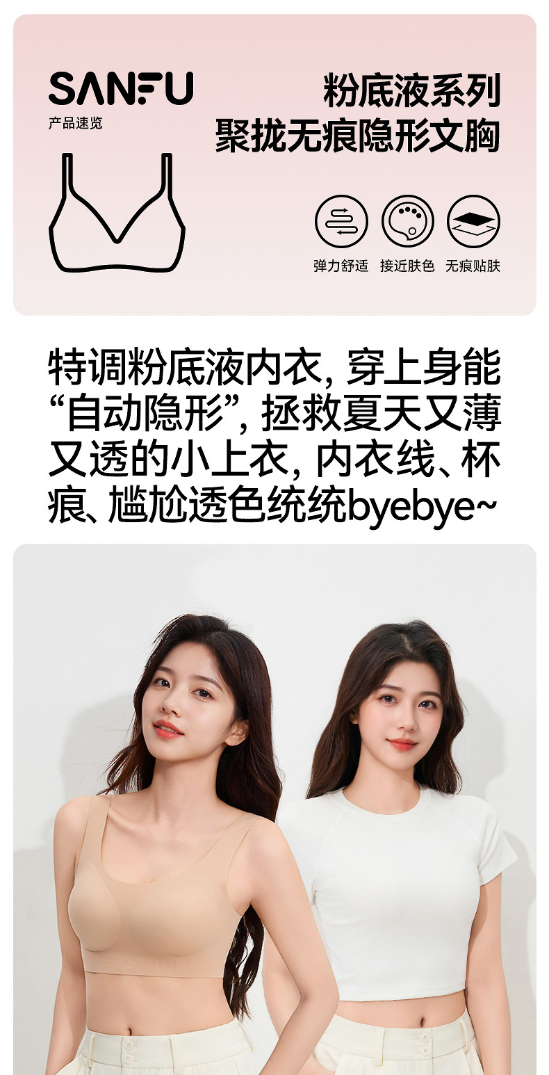 【穿白T不尲尬】三福防透膚文胸女無痕隱形胸罩粉底液自然膚內衣