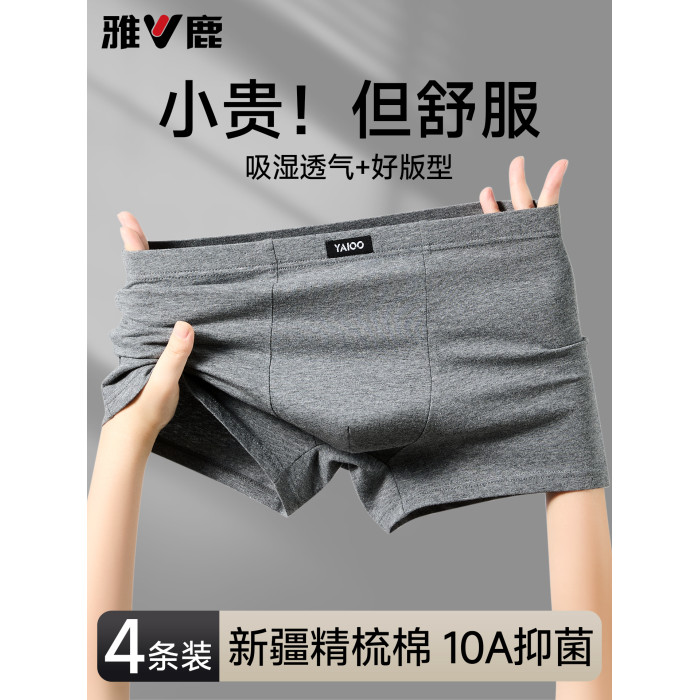 雅鹿男士平角內褲2026新款男生純棉抗菌短褲男式褲頭四角褲衩GE