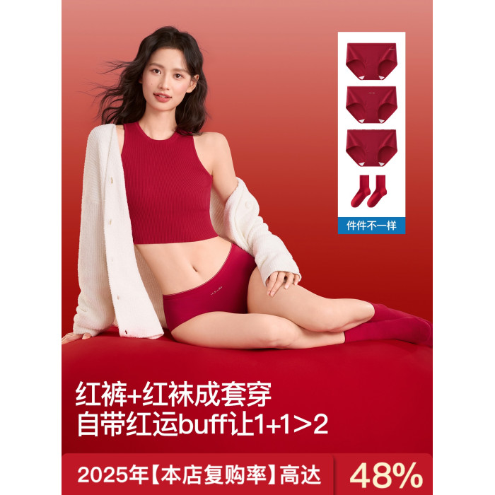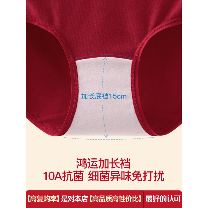 紅色內褲女本命年10A抗菌純棉加長襠喜慶結婚馬年新年紅三角短褲