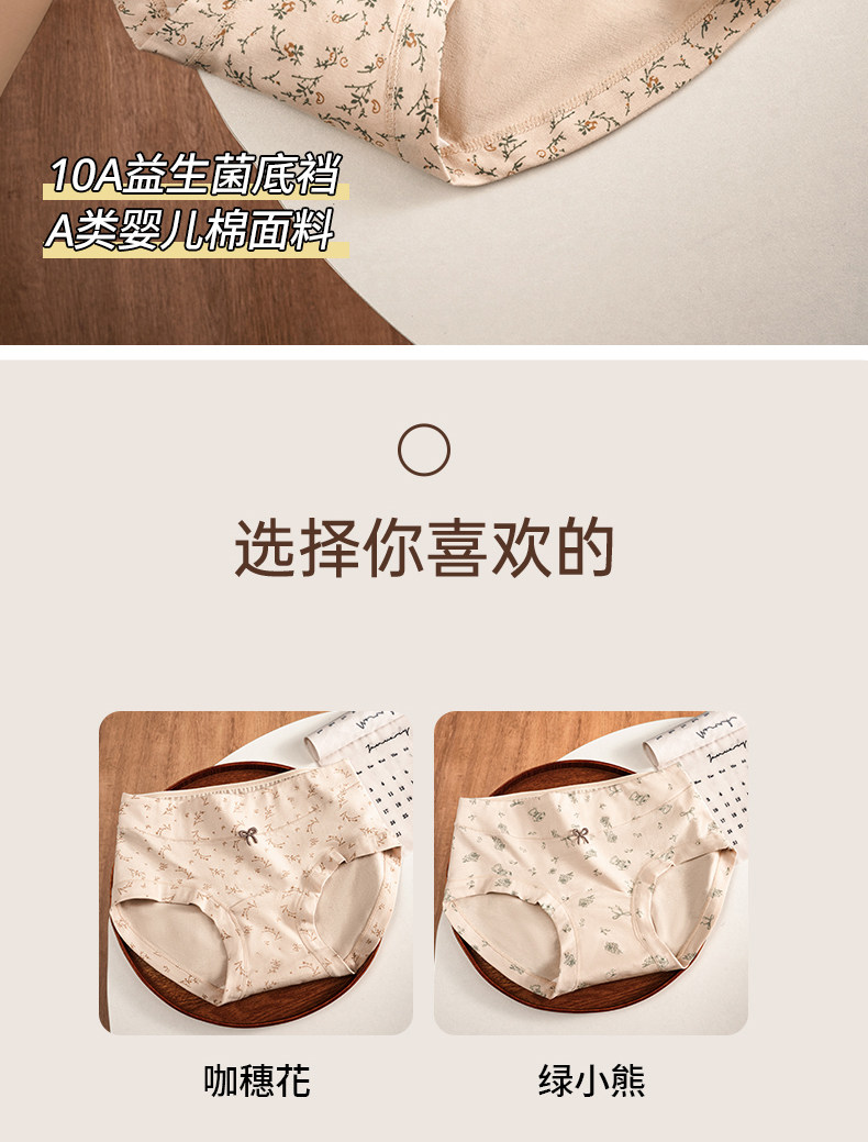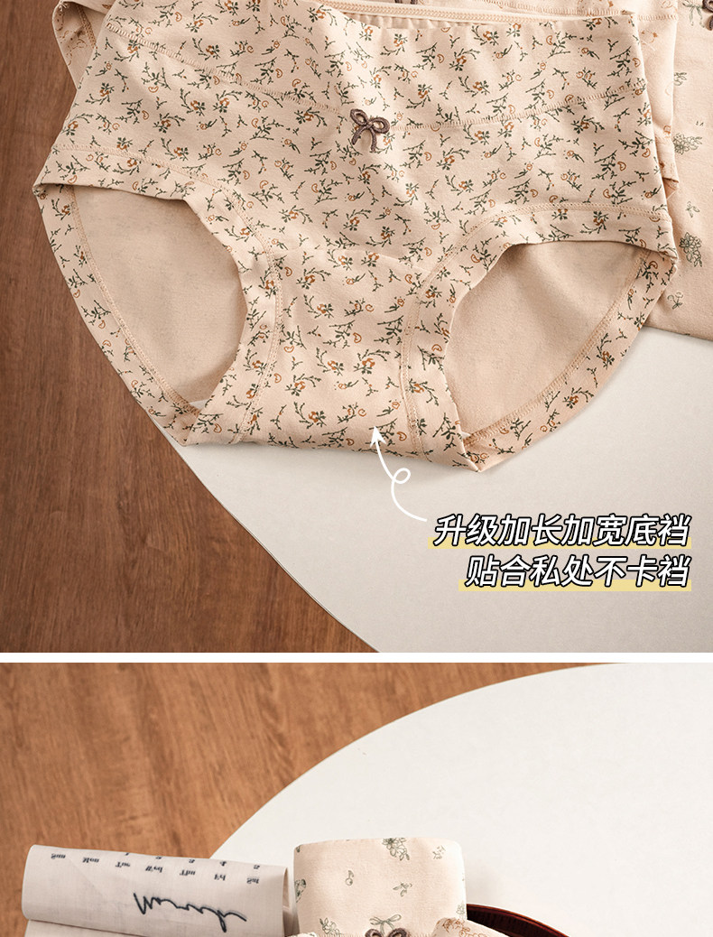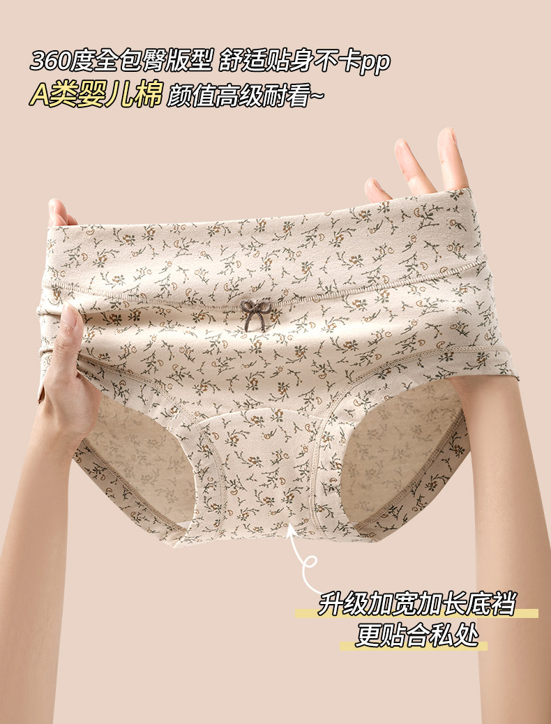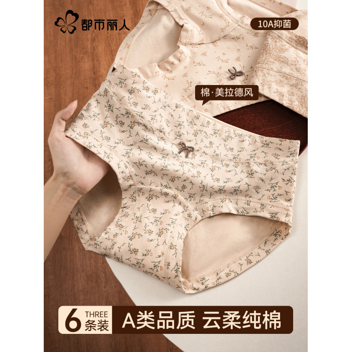 都市麗人內褲女士A類嬰兒棉全棉抑菌加長襠包臀碎花女生三角短褲