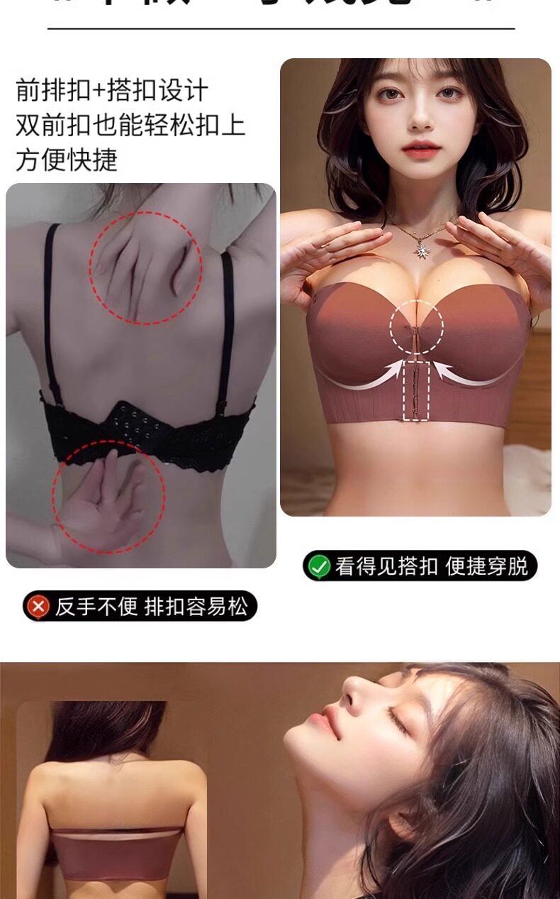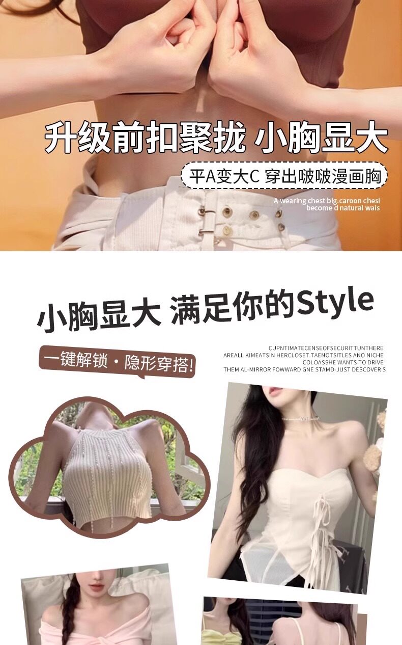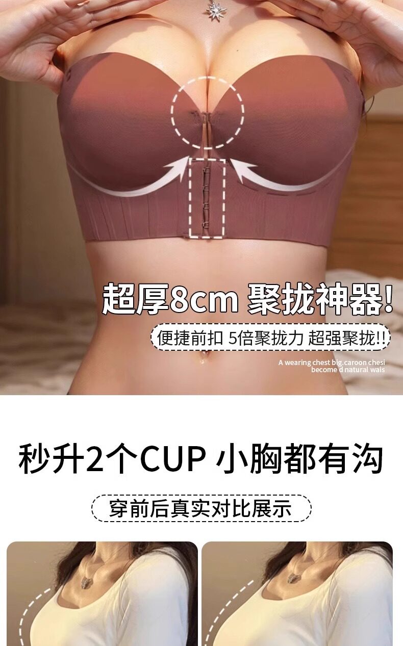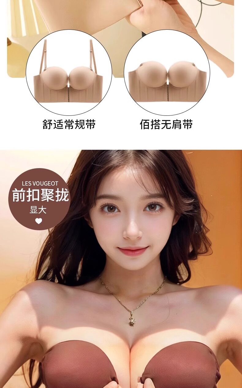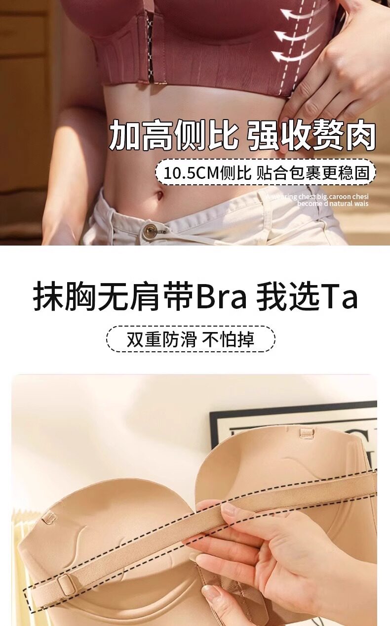 前釦8cm加厚無肩帶小胸內衣女超聚攏防滑顯大平胸抹胸裹胸文胸罩