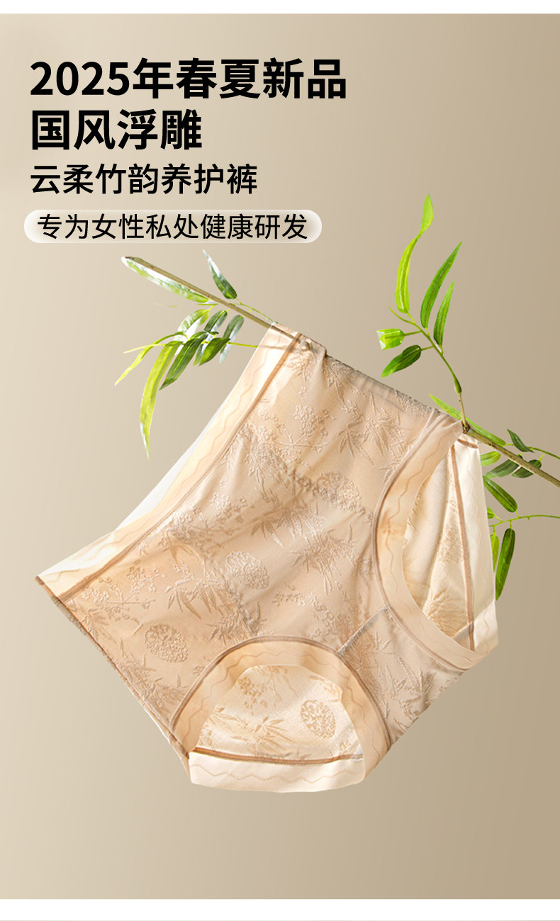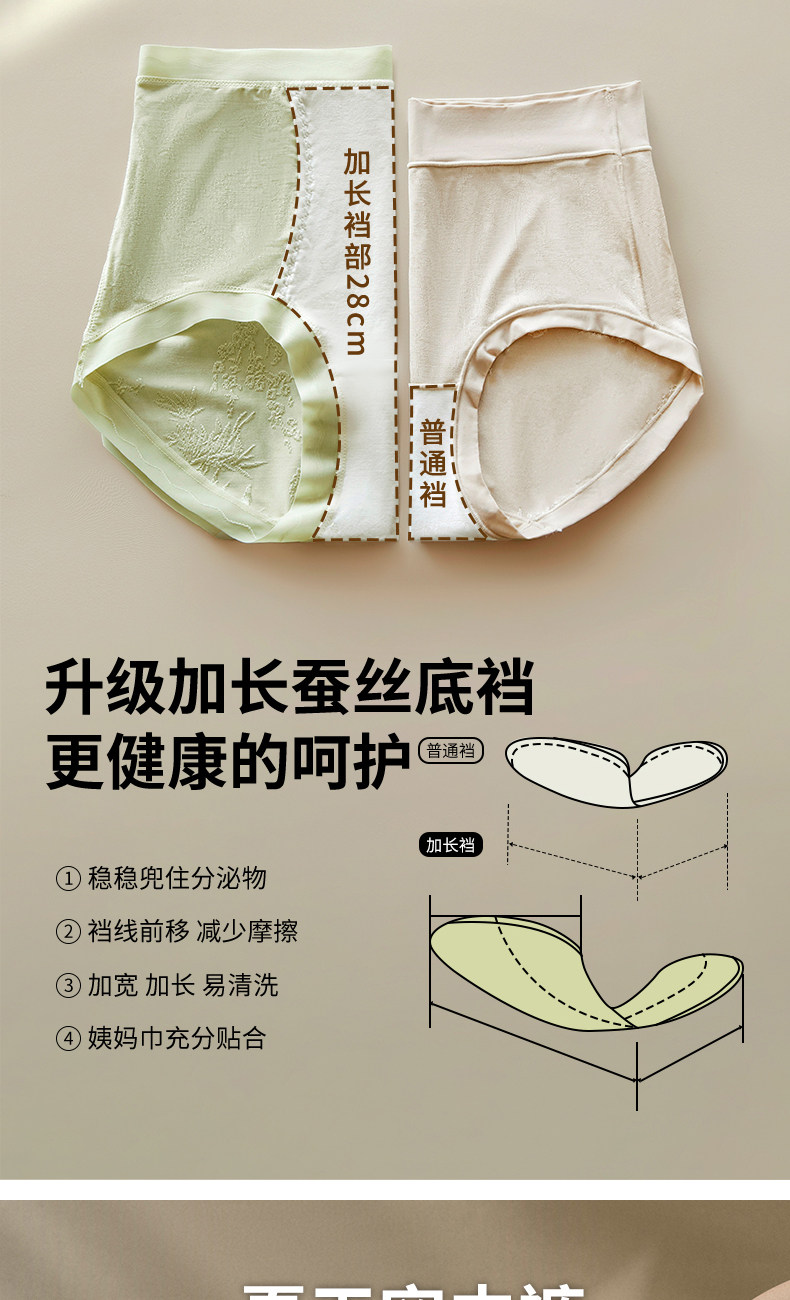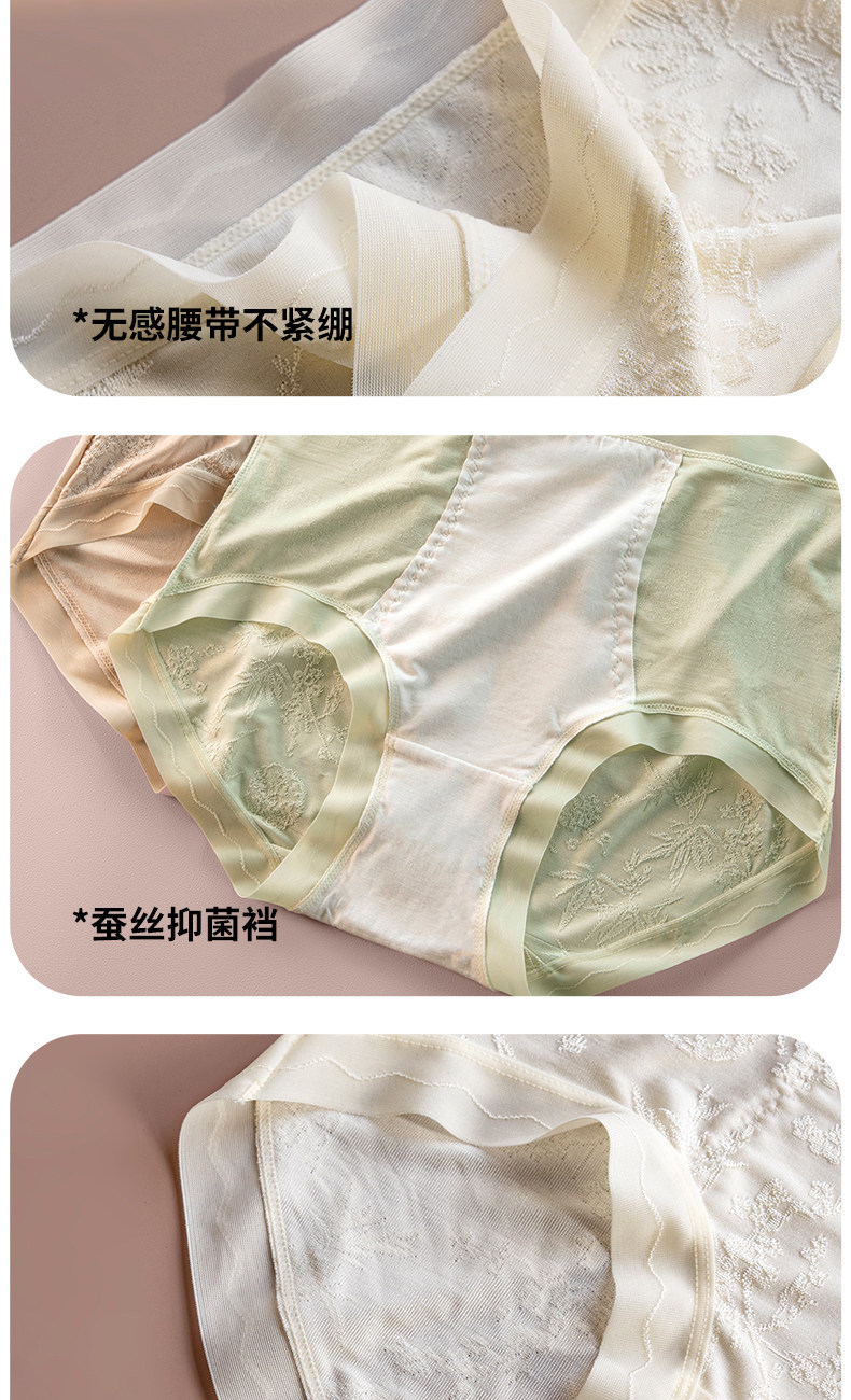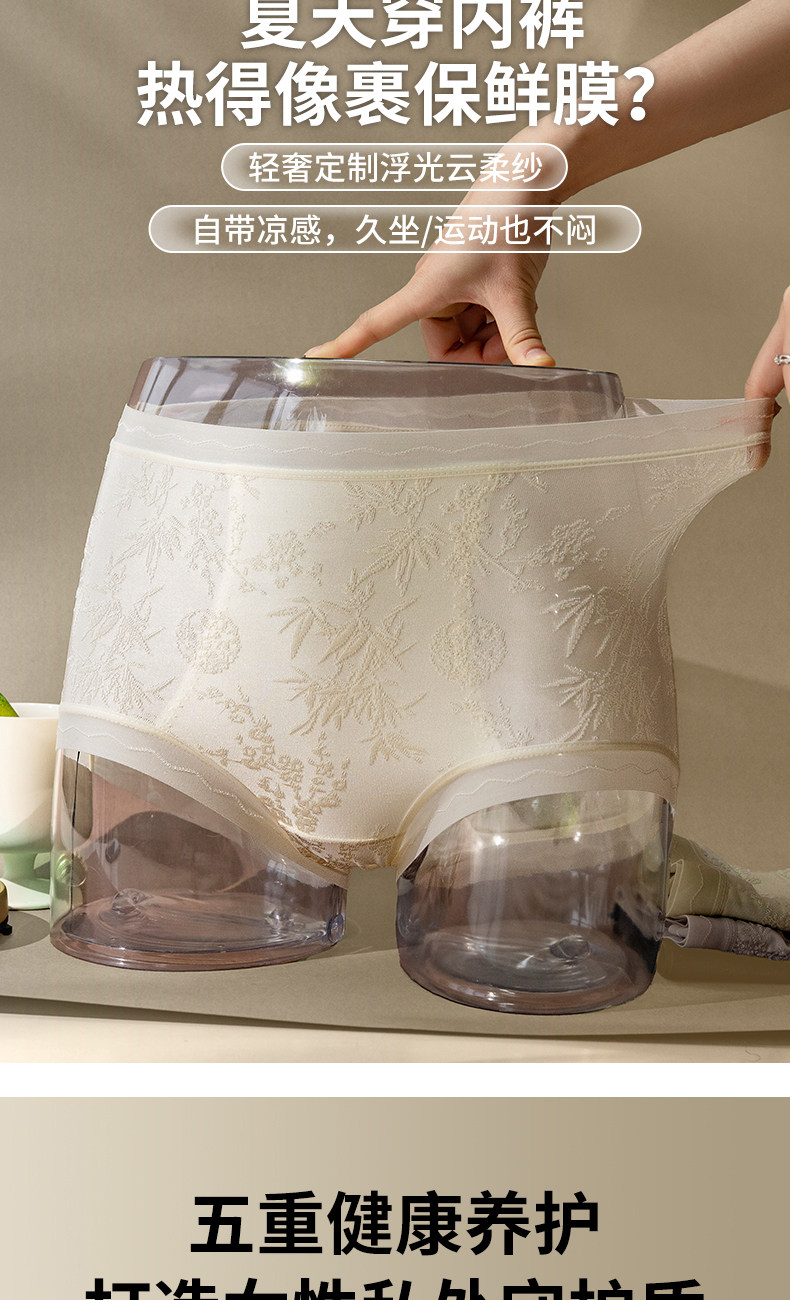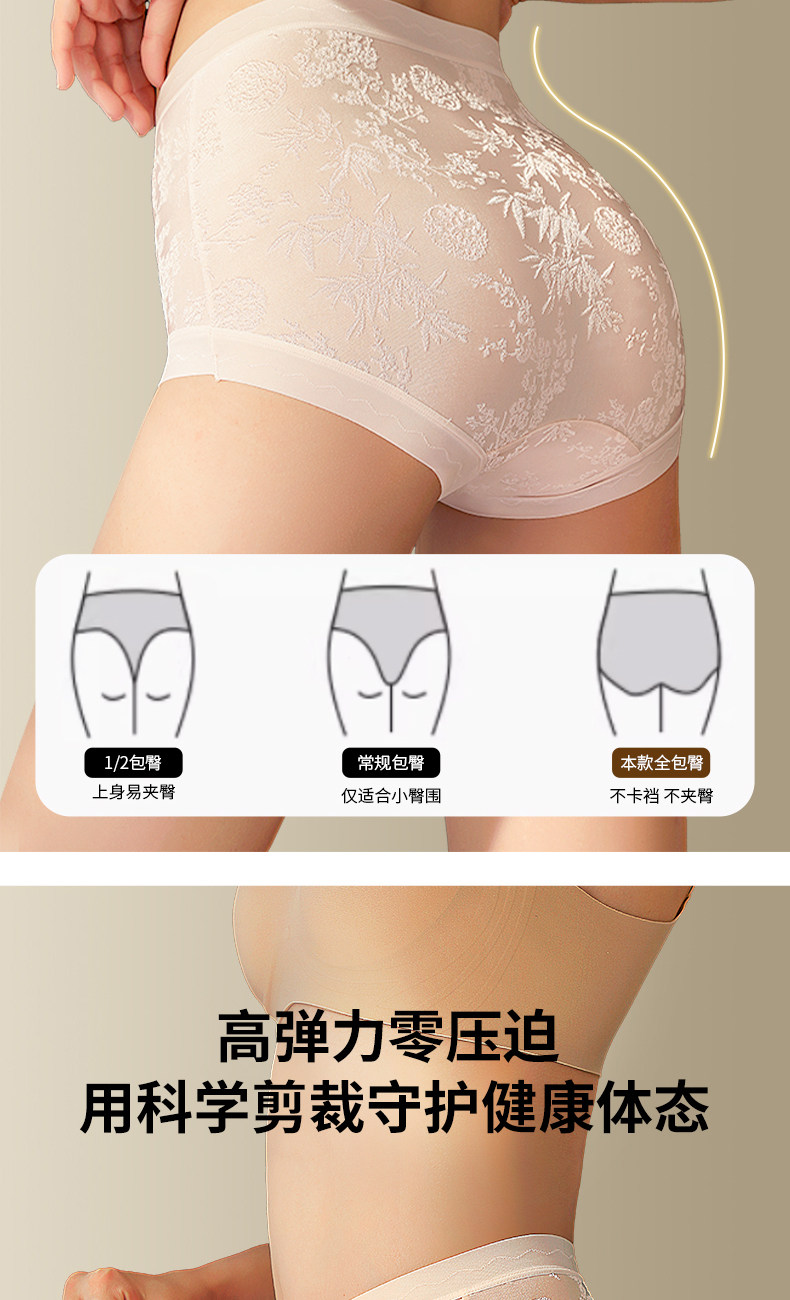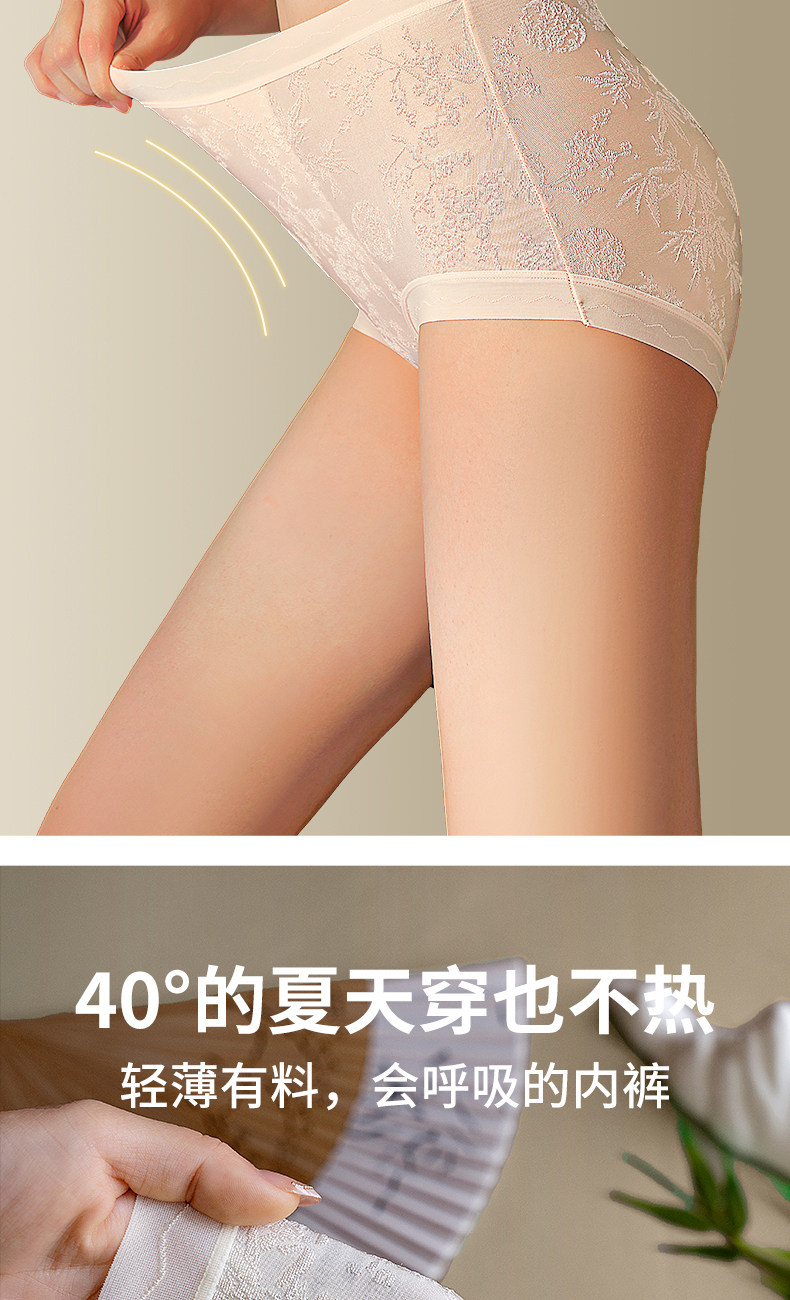 美宅原創【國風雕花蕾絲】內褲女高腰蠶絲抗菌加長襠2026新款短褲