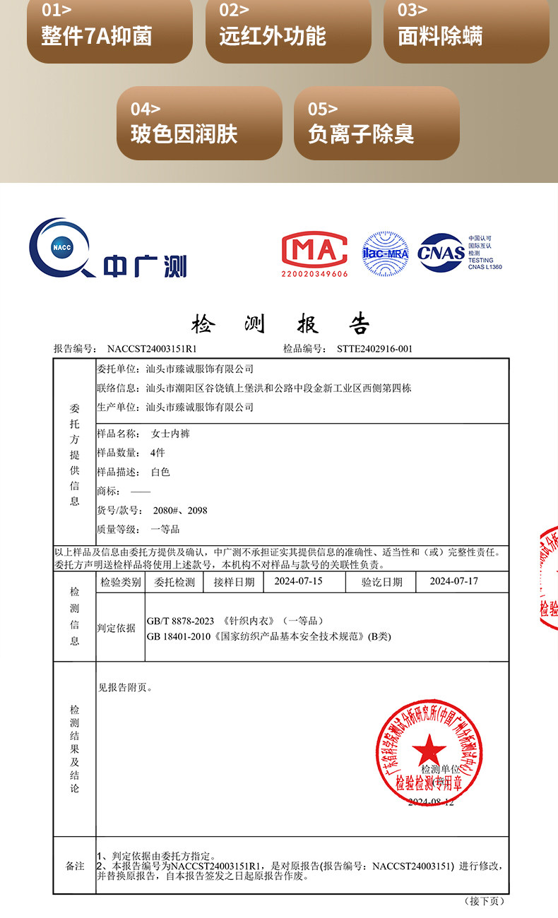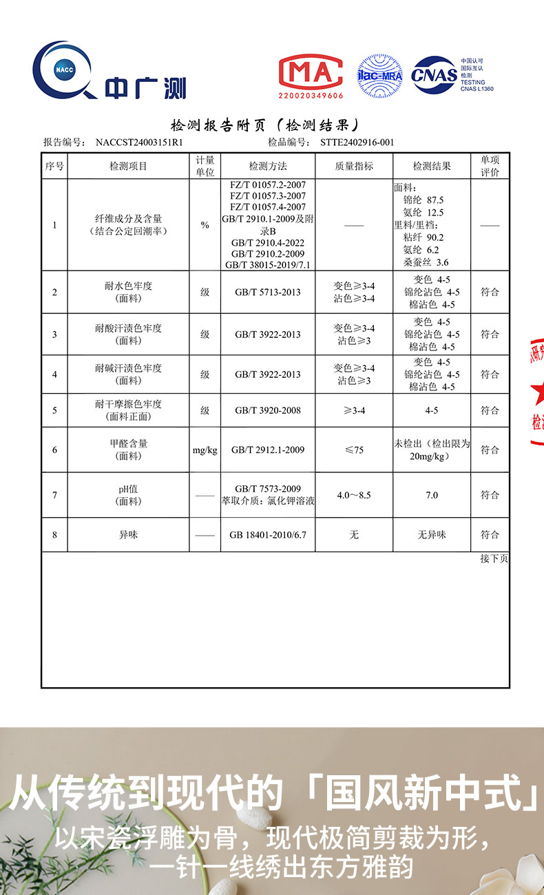 | 襠部材質成分 | 粘膠纖維(粘纖)90.2% 聚氨酯彈性纖維(氨綸)6.2% 桑蠶絲3.6% |