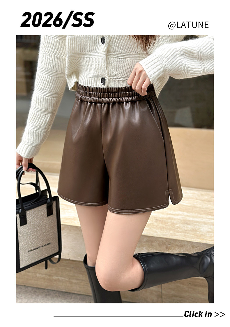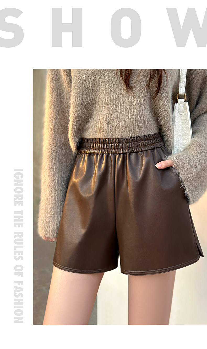 皮短褲女2026新款春秋冬外穿高腰大碼靴褲黑色百搭a字濶腿pu皮褲