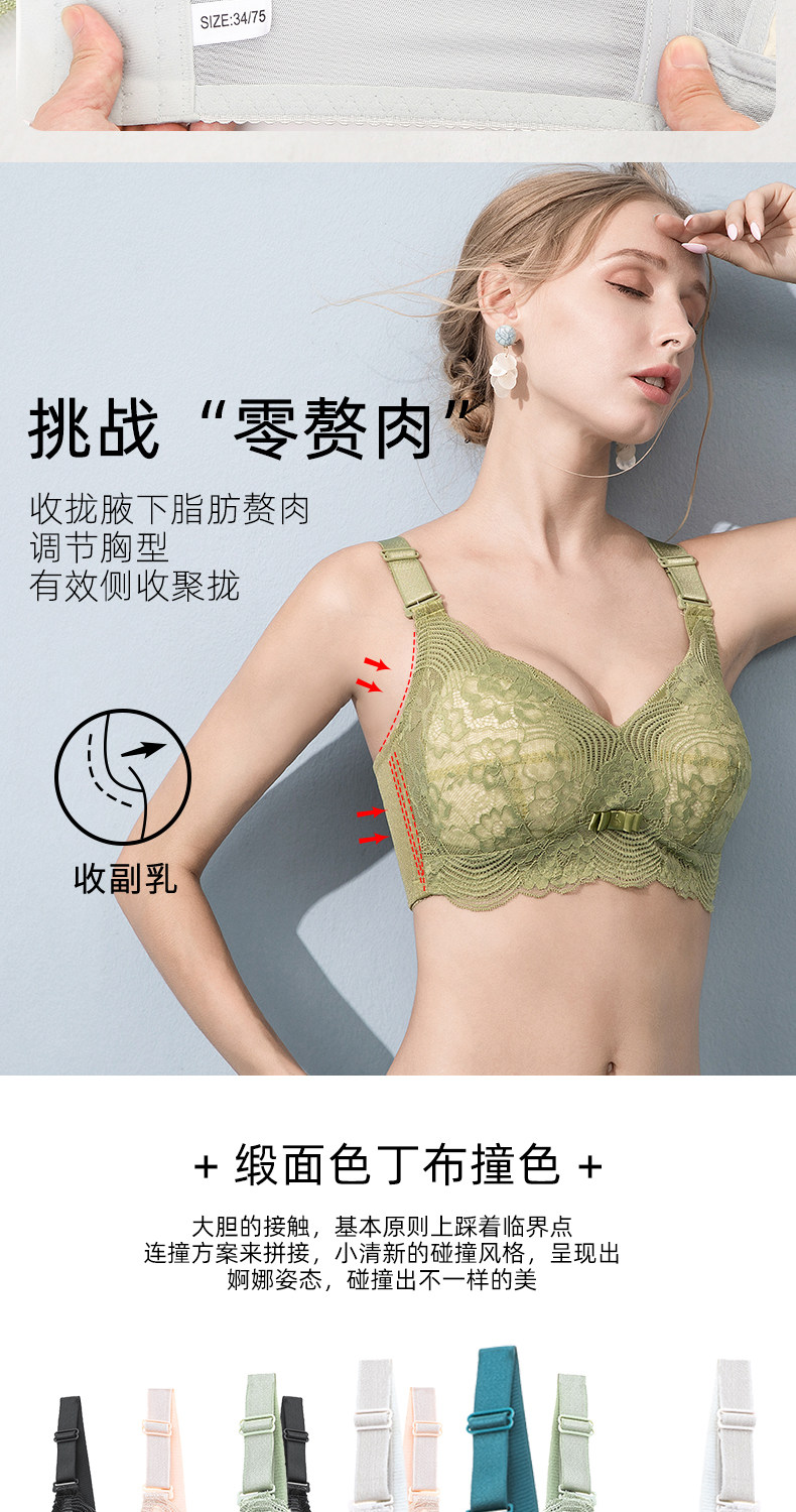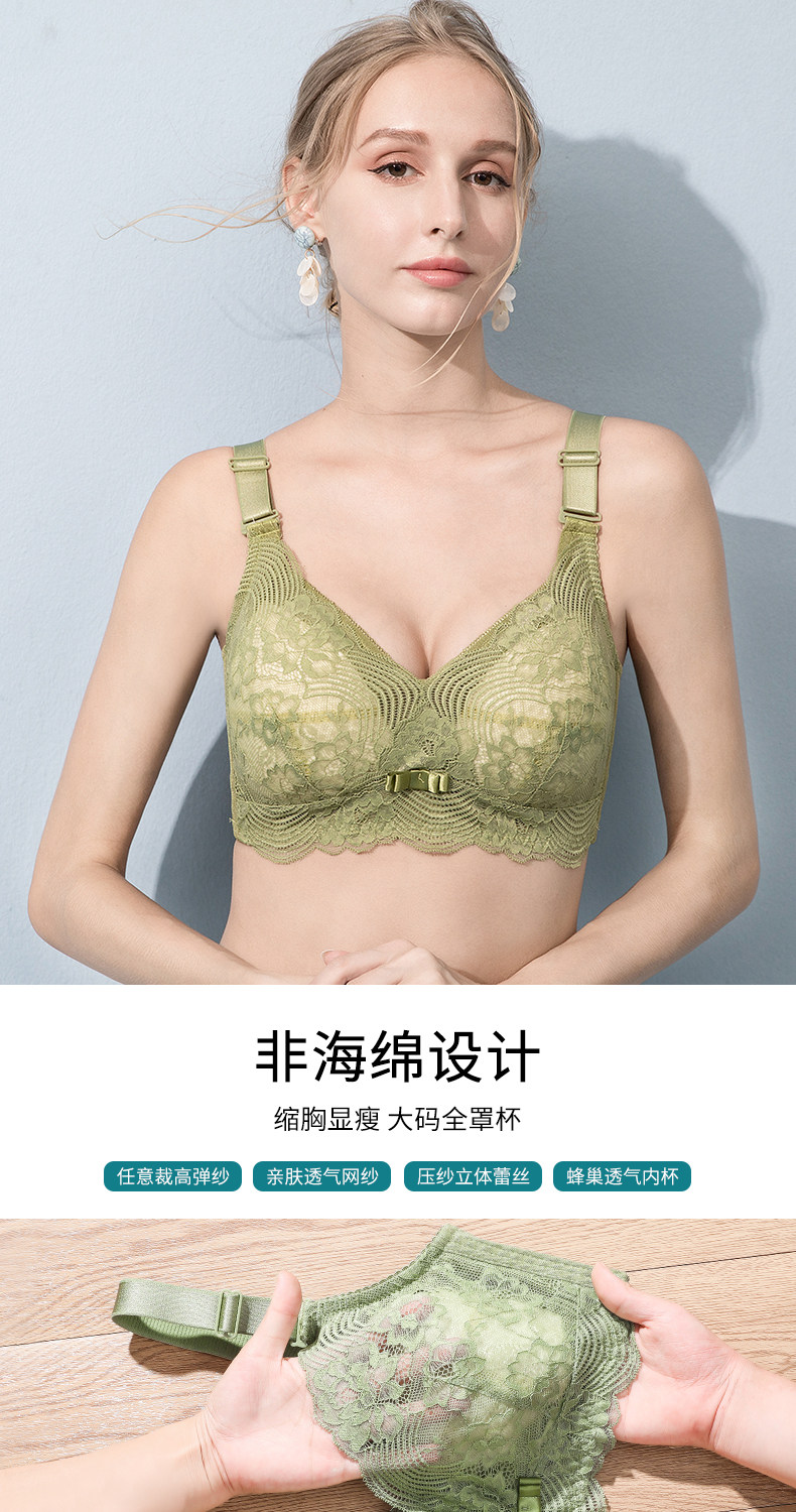 千靈美薄款內衣女大胸顯小聚攏上托文胸大碼收副乳胸罩無鋼圈胖MM