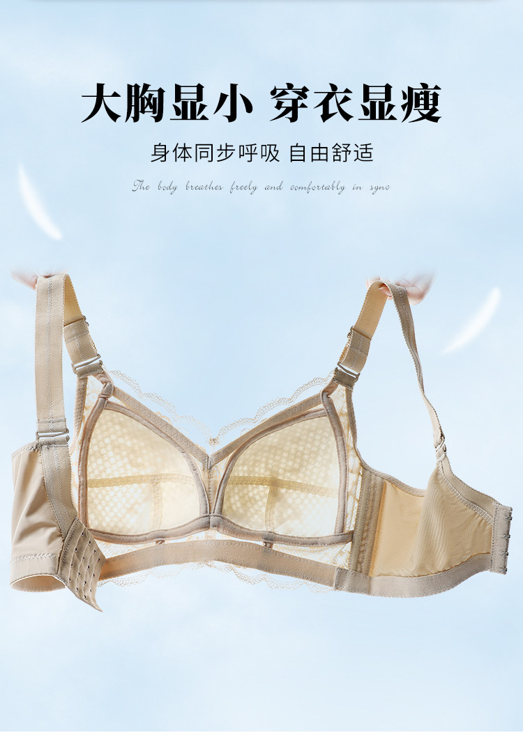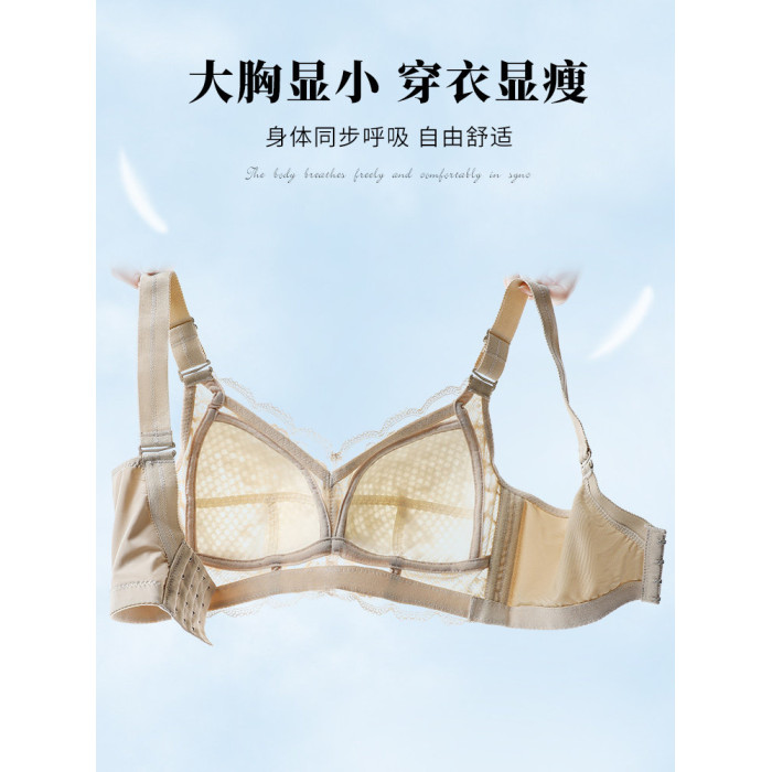 新款內衣女大胸顯小薄款無鋼圈大碼文胸女士聚攏收副乳防下垂胸罩