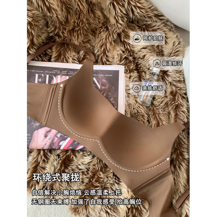 春夏無痕裸感內衣女小胸聚攏上托防下垂軟支撐無鋼圈收副乳文胸罩