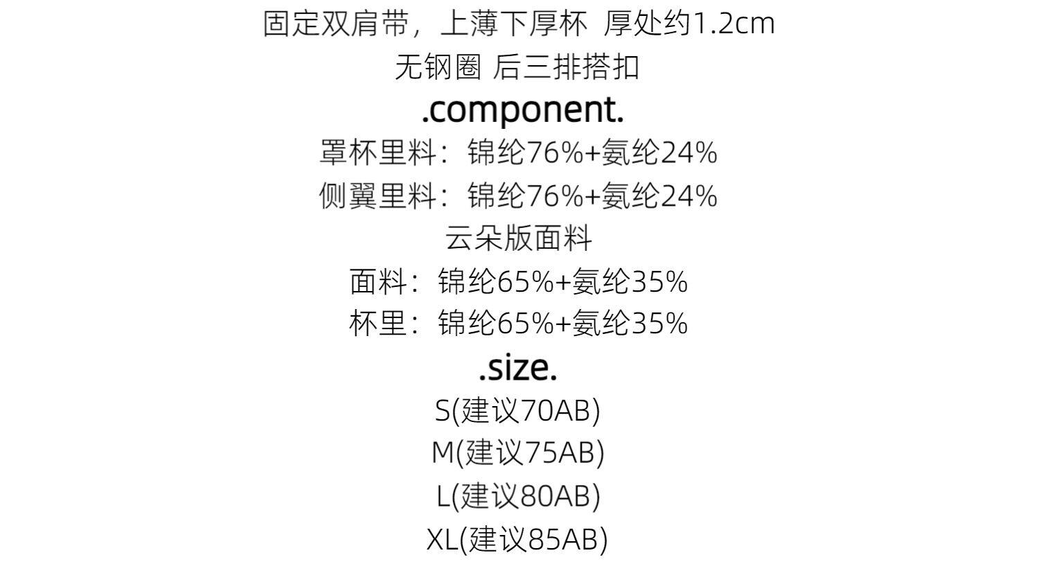 | 罩杯裡料成分含量 | 61%(含)-80%(含) |