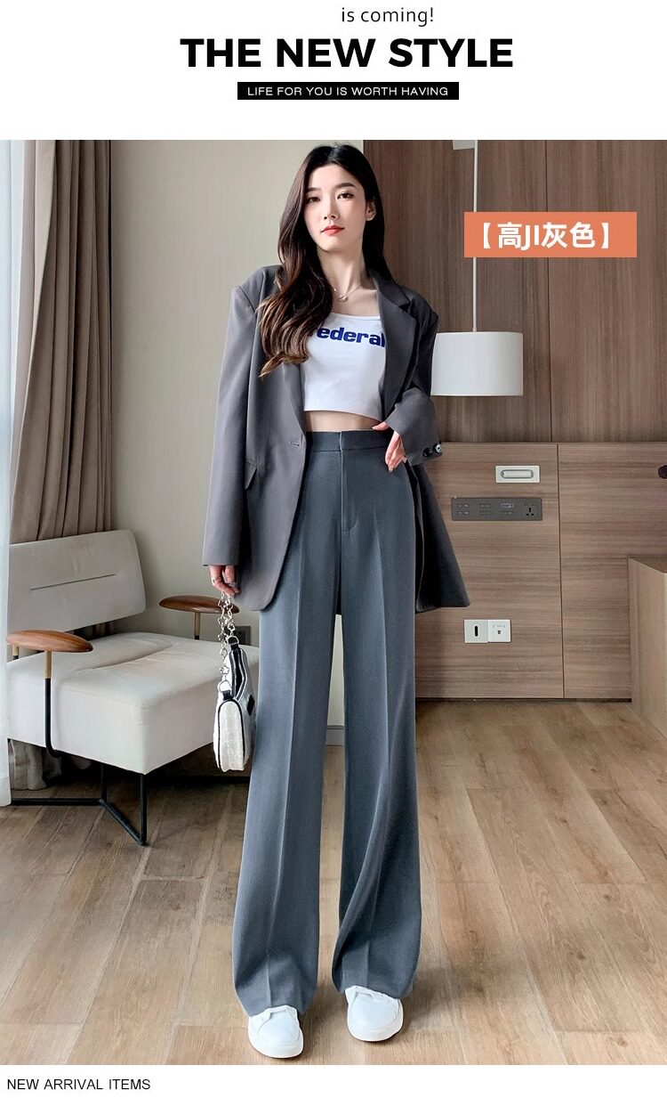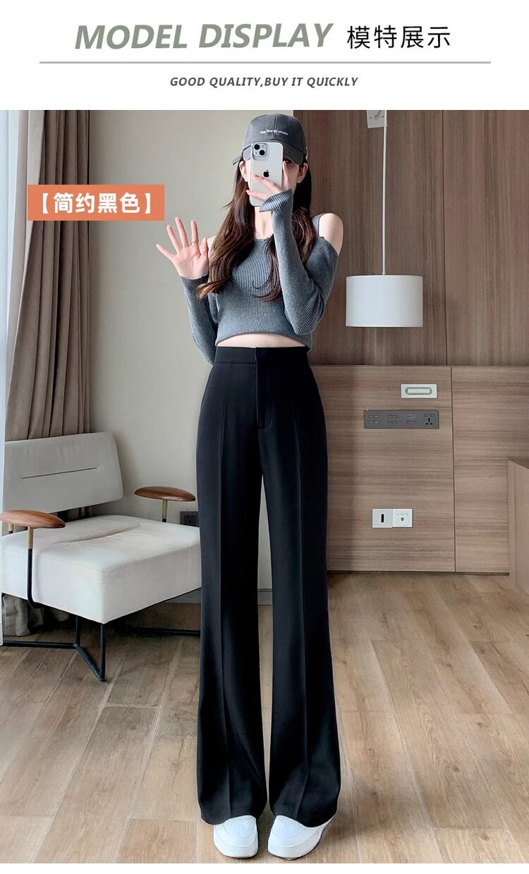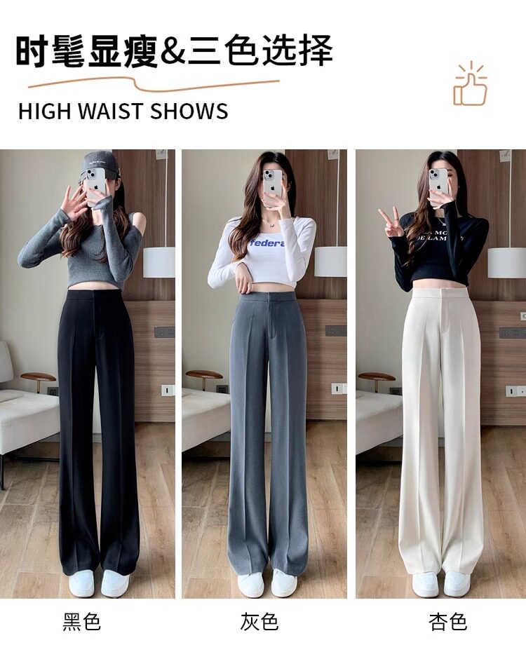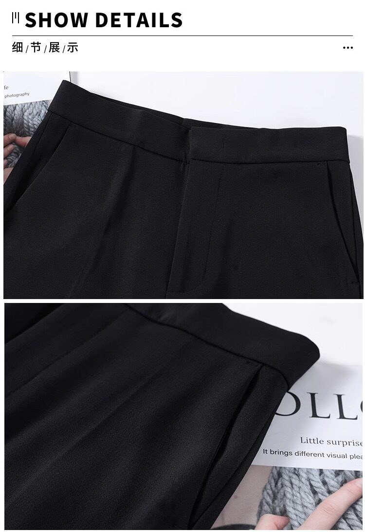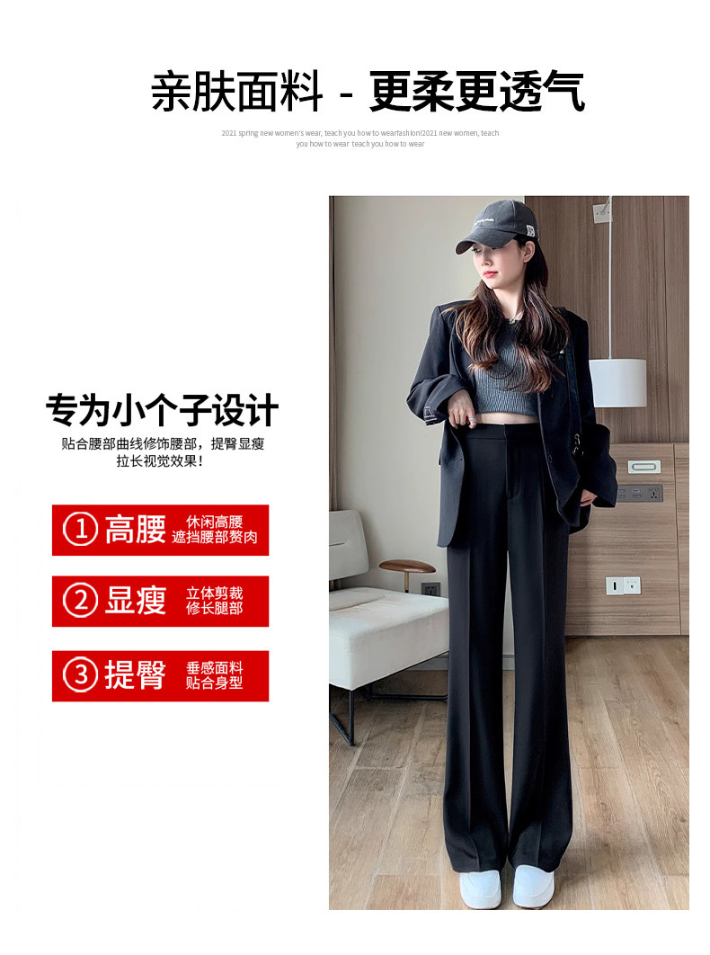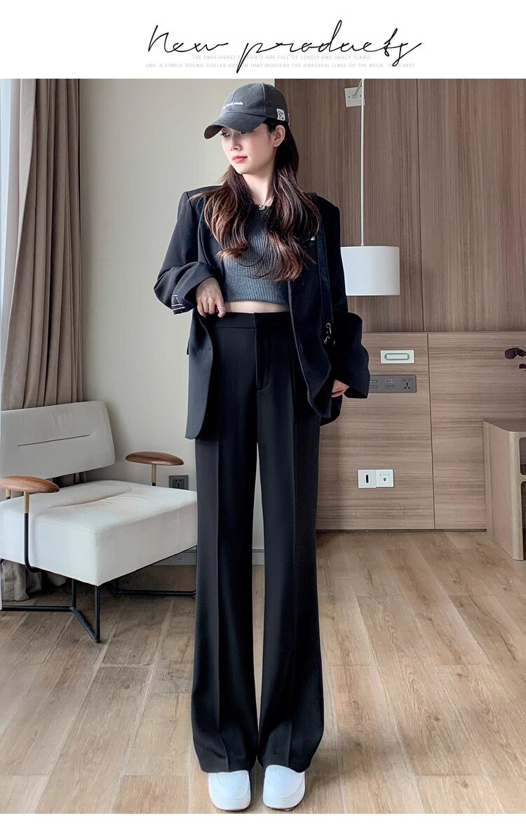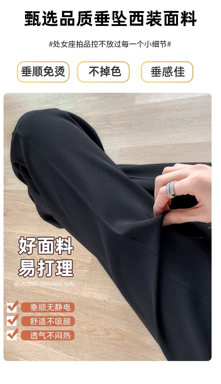 黑色西裝褲女春秋小個子高腰濶腿褲寬鬆顯瘦直筒褲職業通勤長褲子