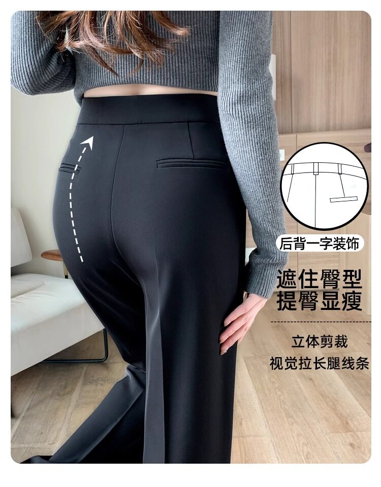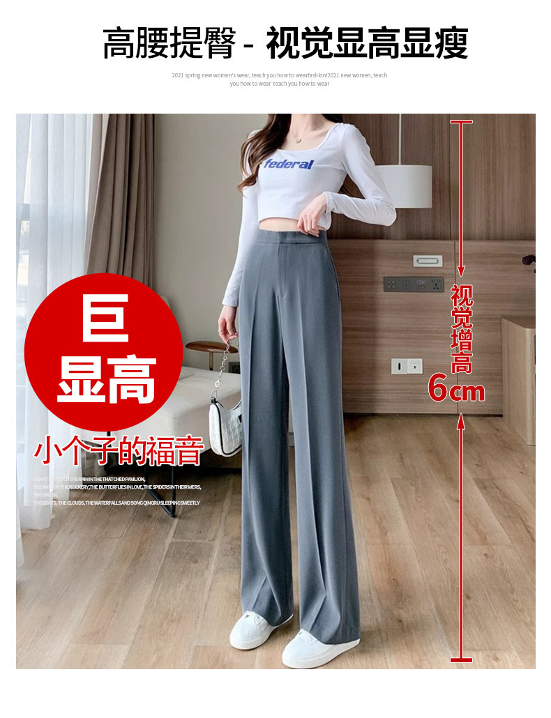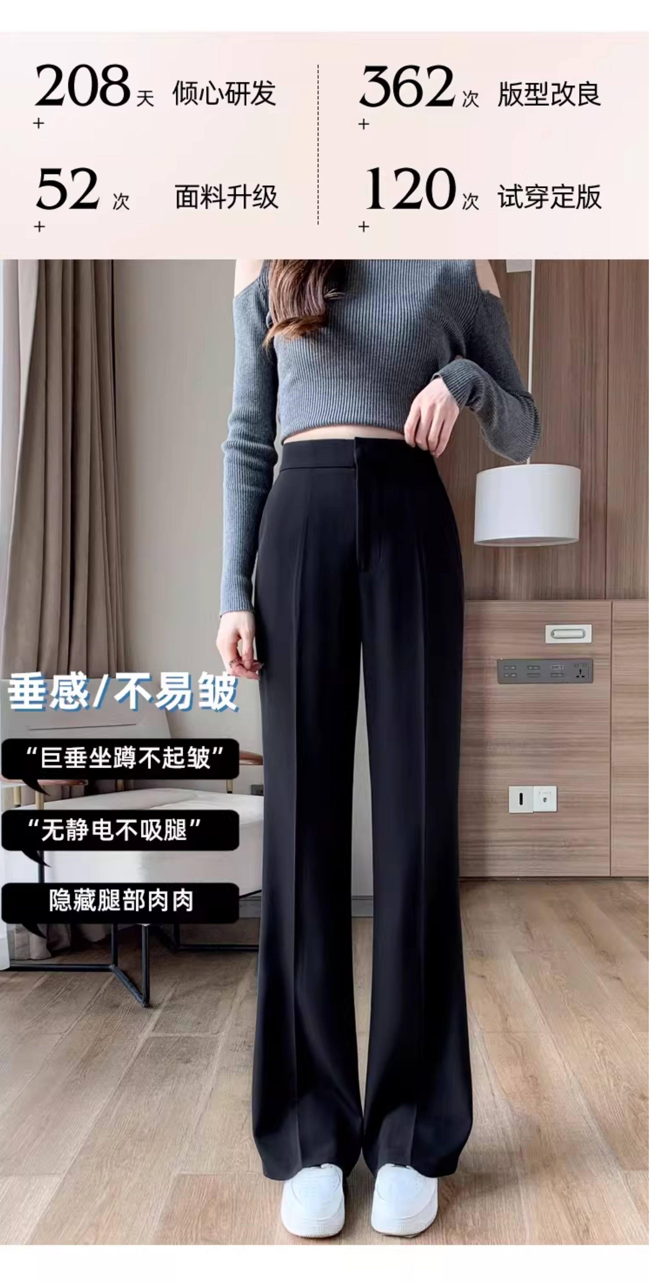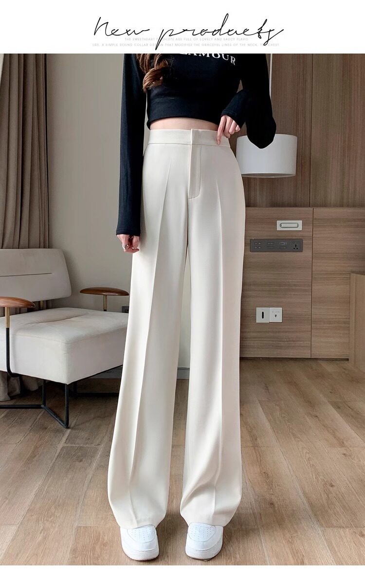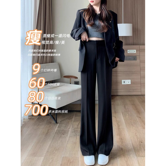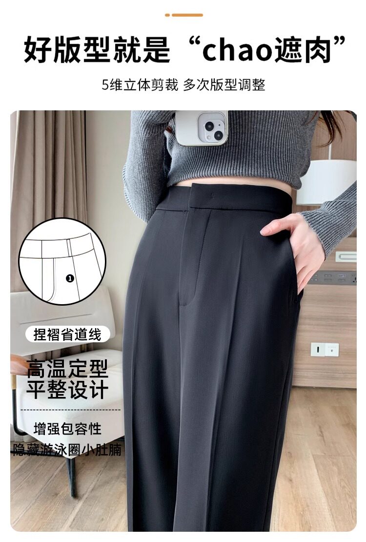 黑色西裝褲女春秋小個子高腰濶腿褲寬鬆顯瘦直筒褲職業通勤長褲子