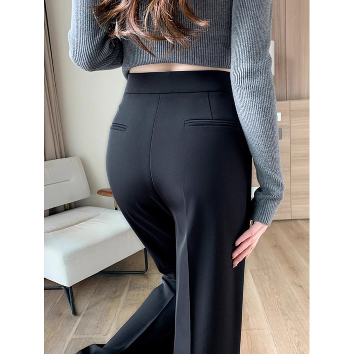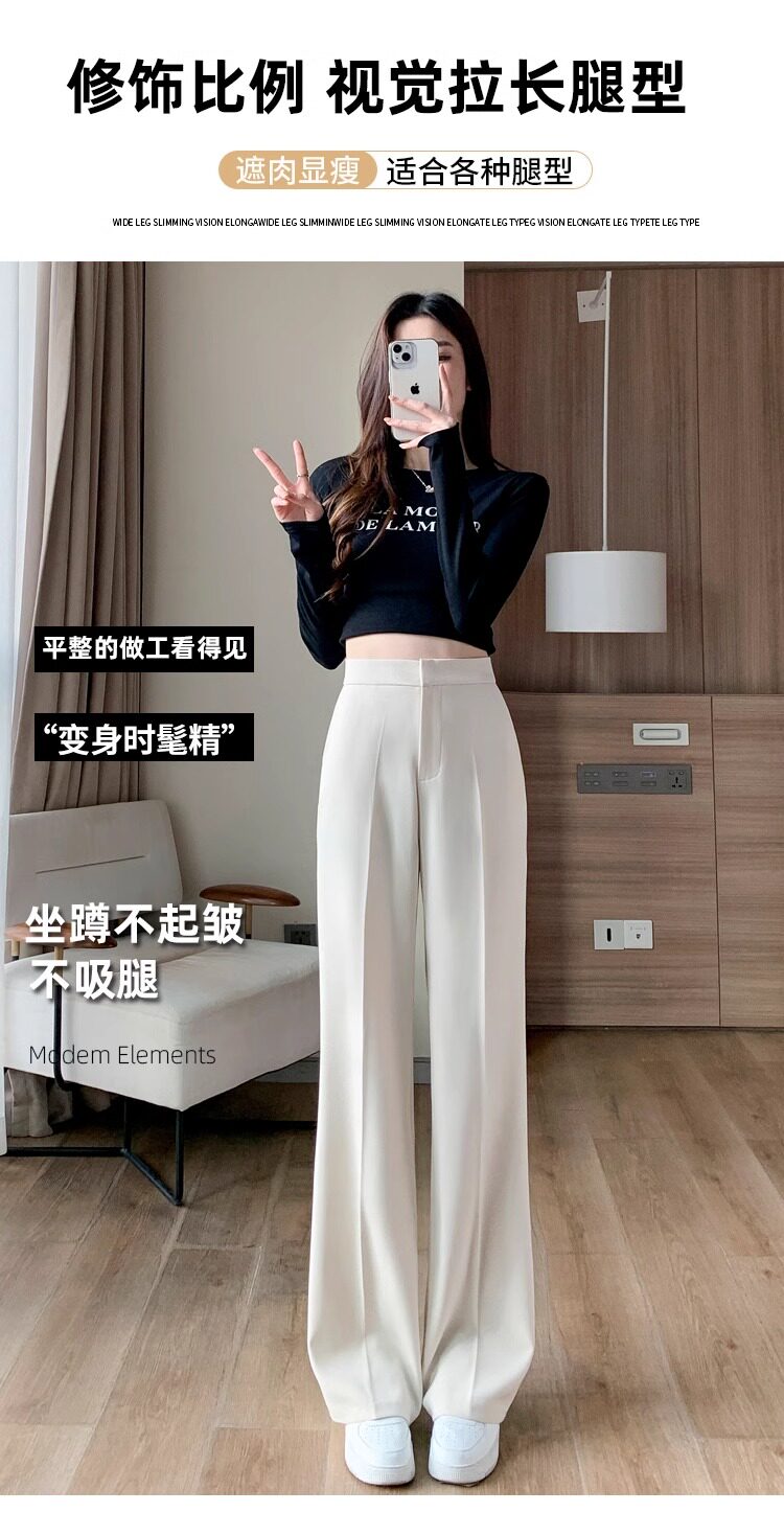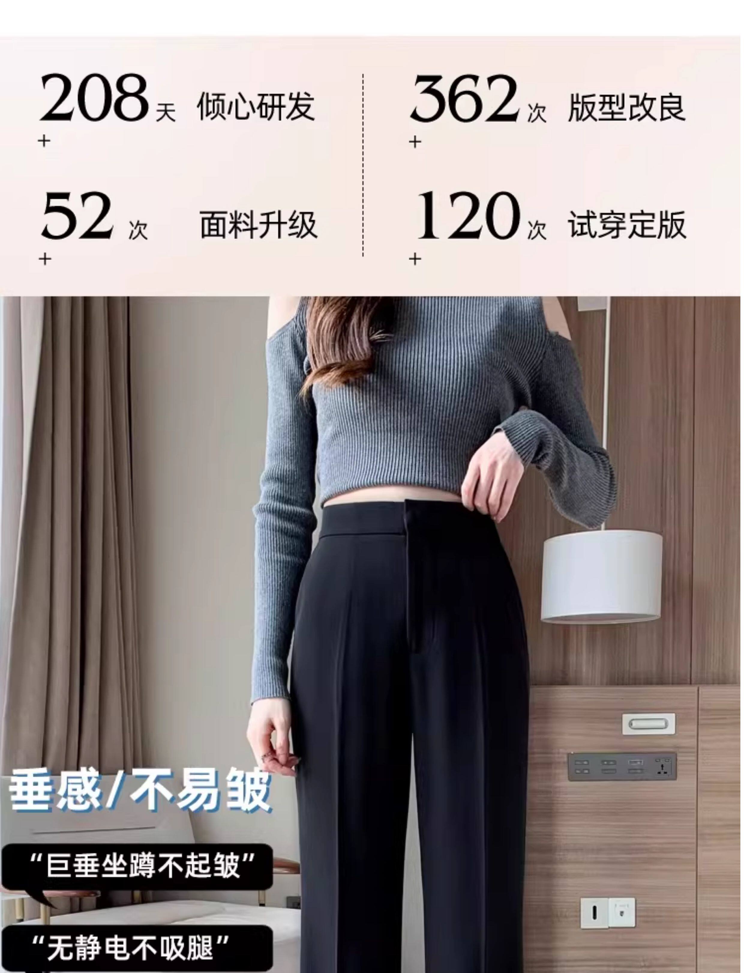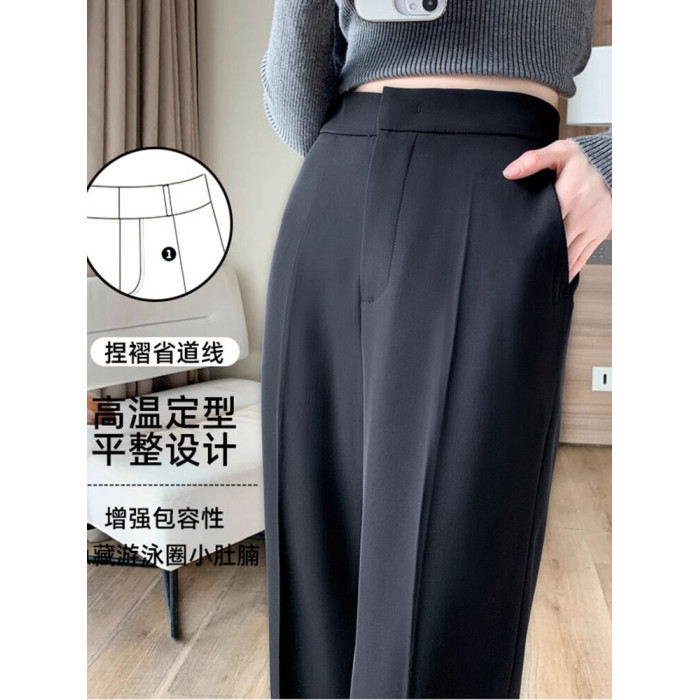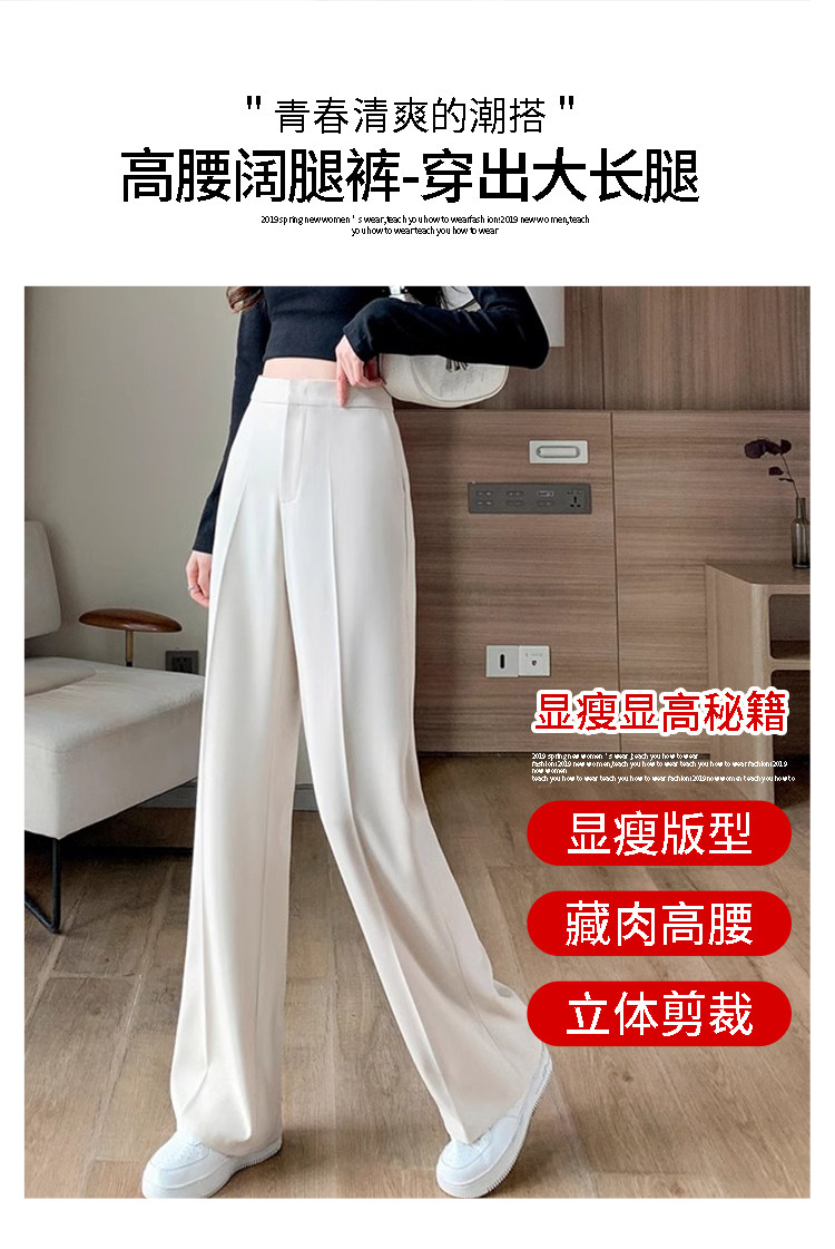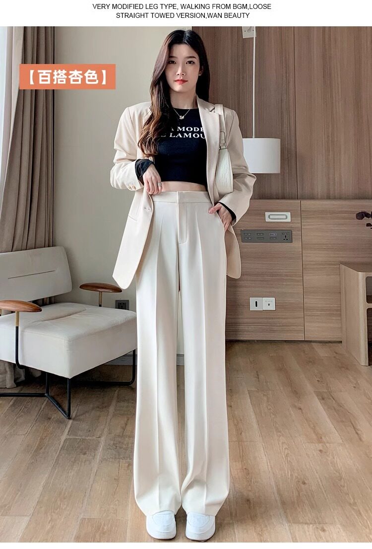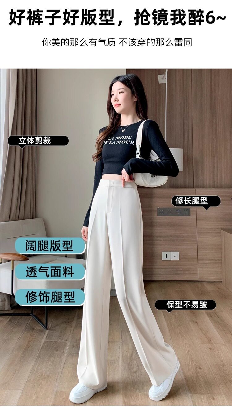 黑色西裝褲女春秋小個子高腰濶腿褲寬鬆顯瘦直筒褲職業通勤長褲子