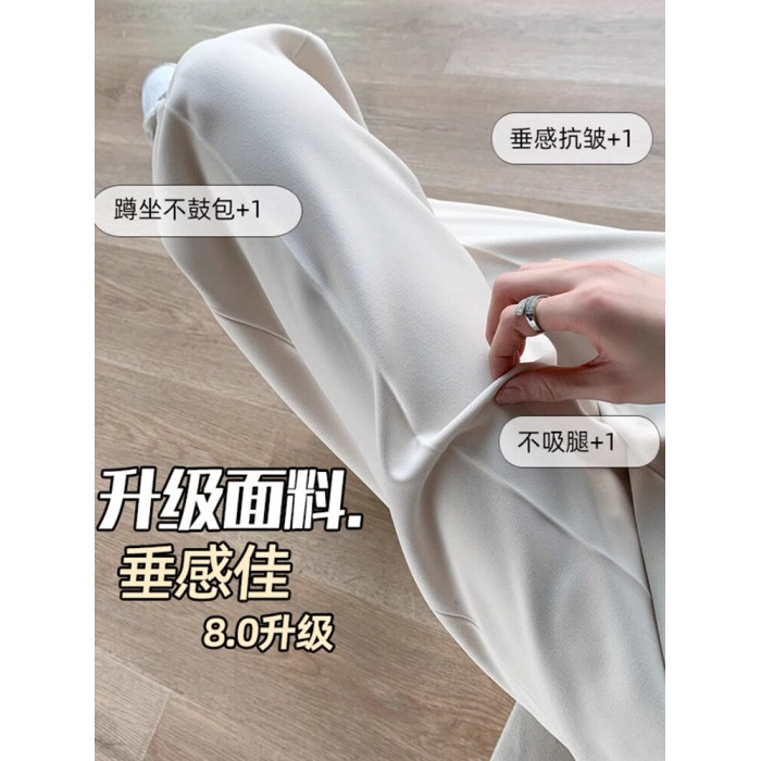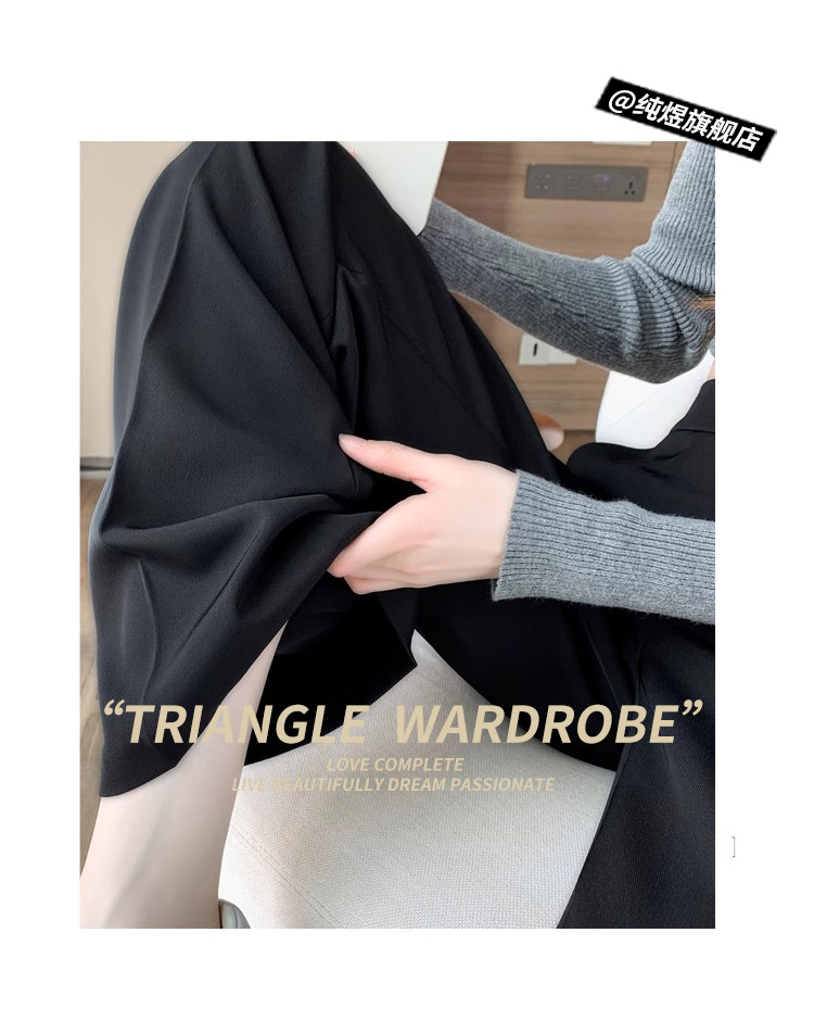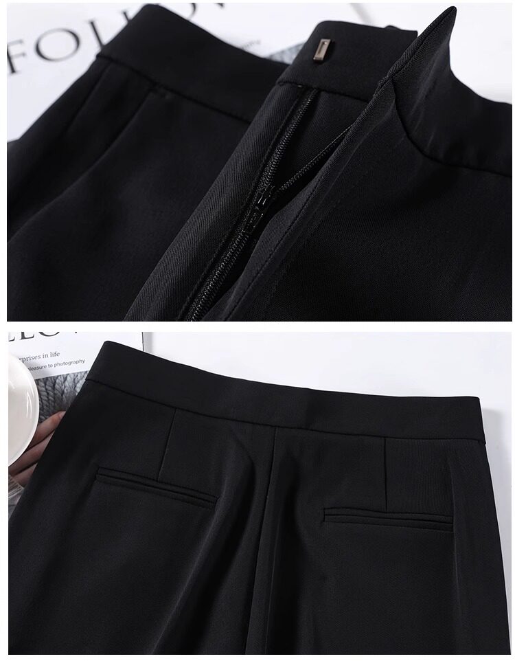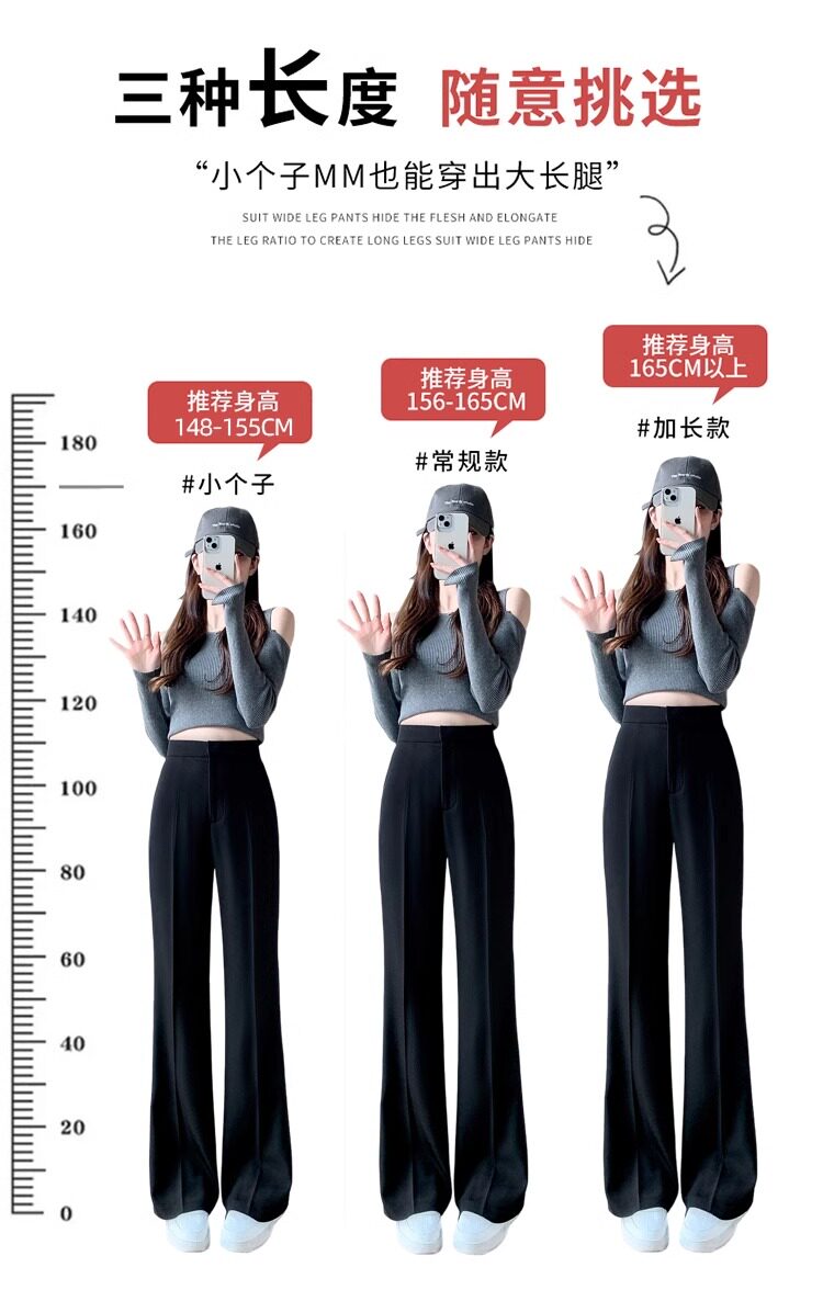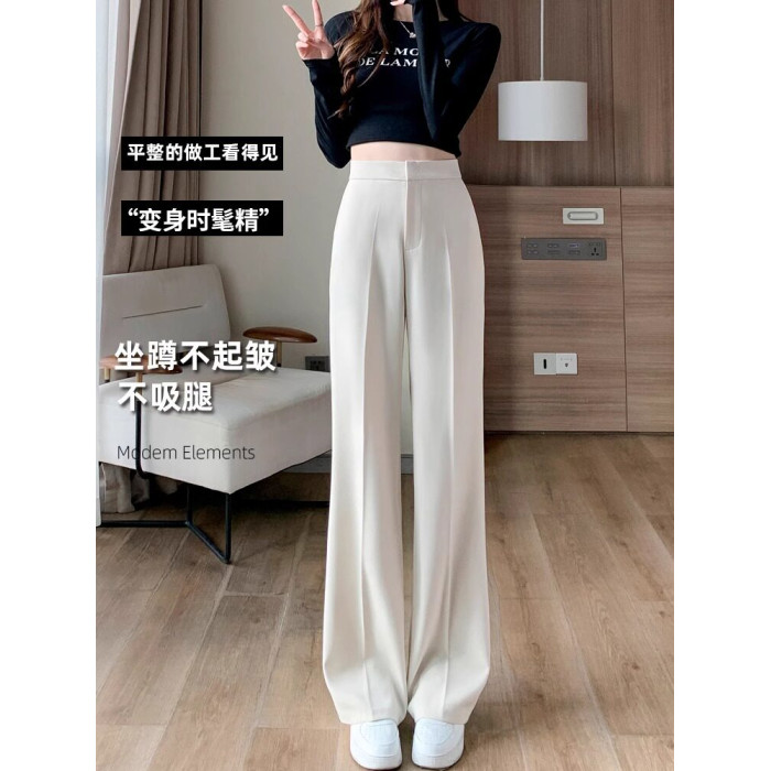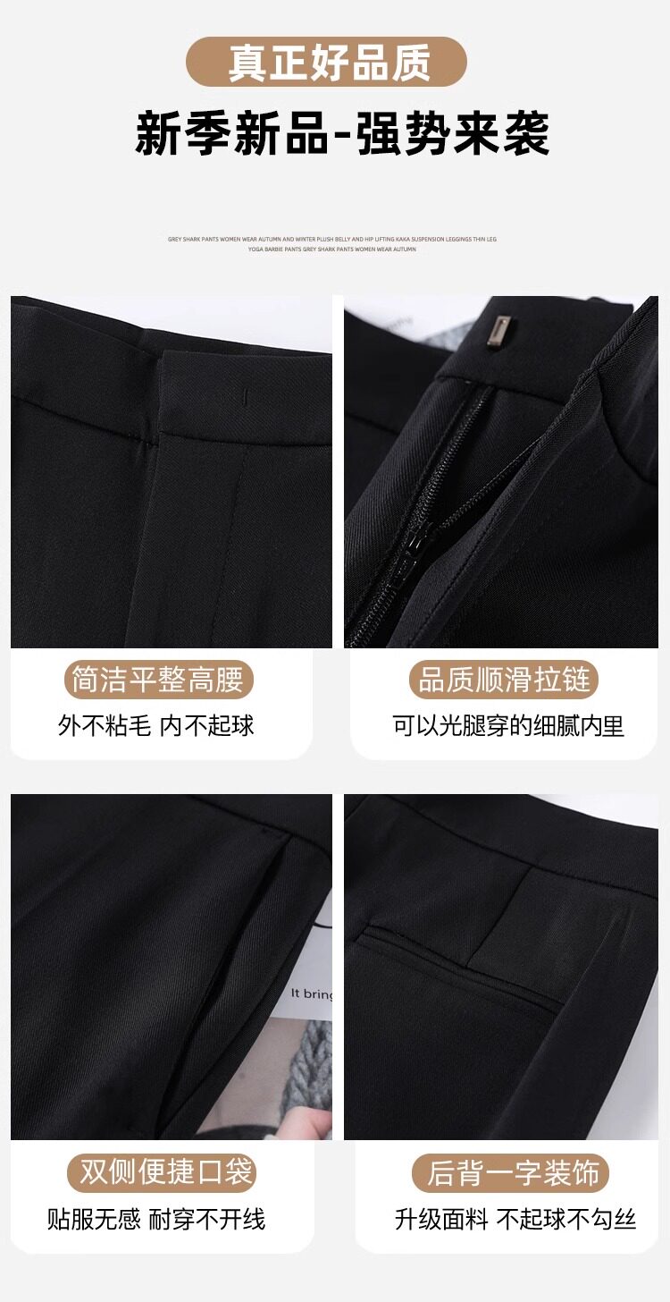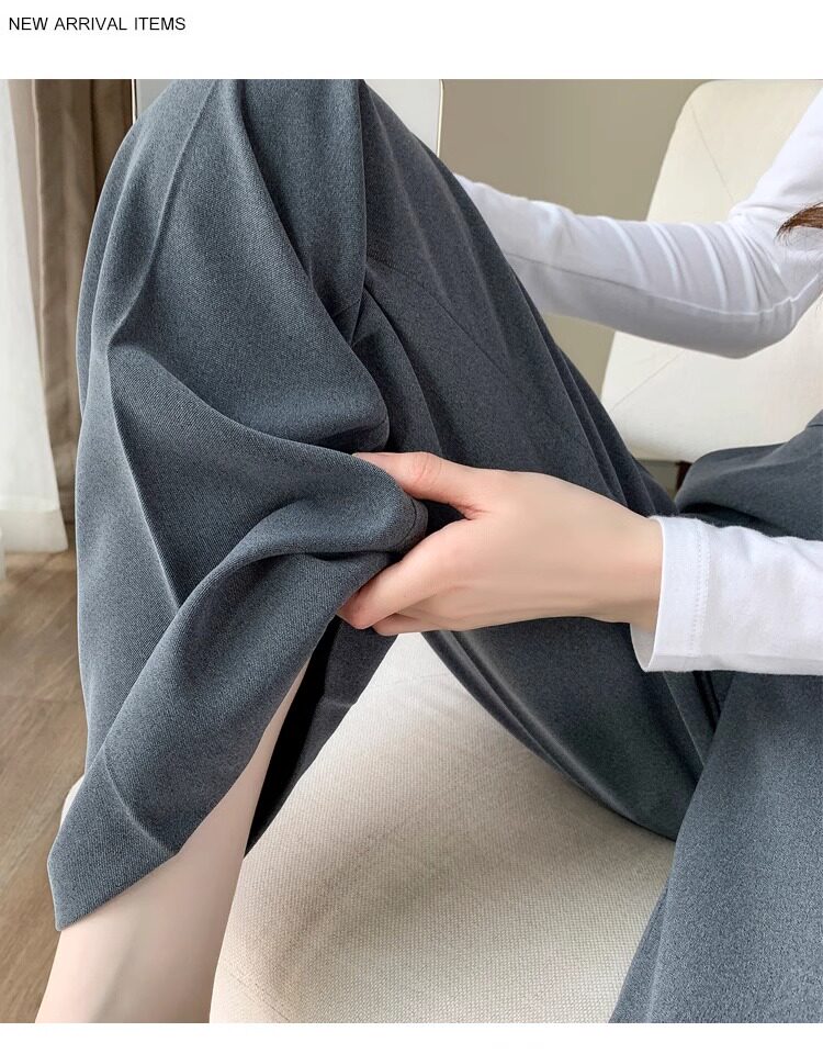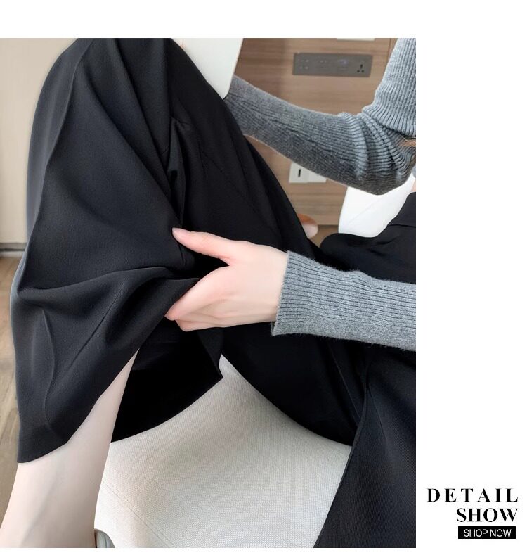黑色西裝褲女春秋小個子高腰濶腿褲寬鬆顯瘦直筒褲職業通勤長褲子
