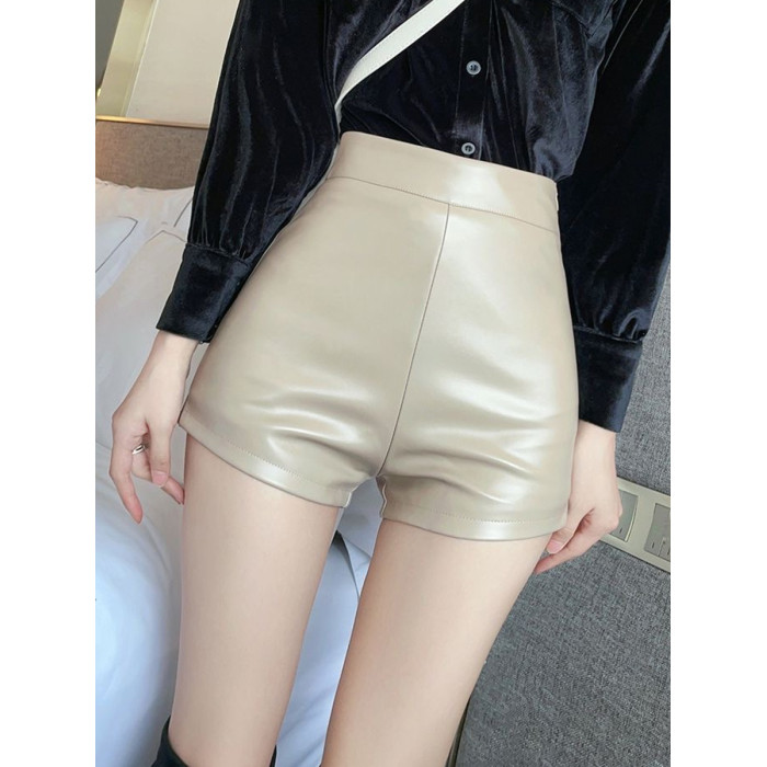 黑色高腰包臀pu皮短褲女士春季新款彈力顯瘦緊身三分皮褲外穿靴褲