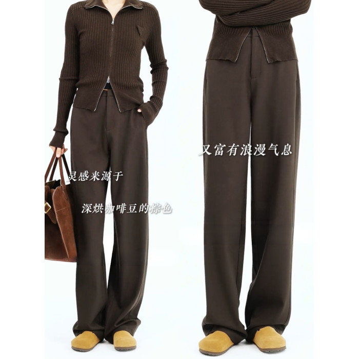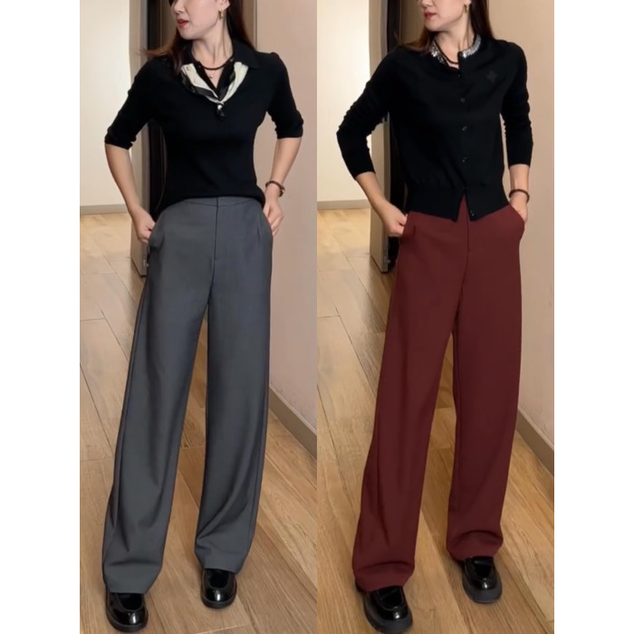 窄版濶腿褲女2026新款春秋款天絲羊毛直筒褲垂感西褲高級灰色褲子