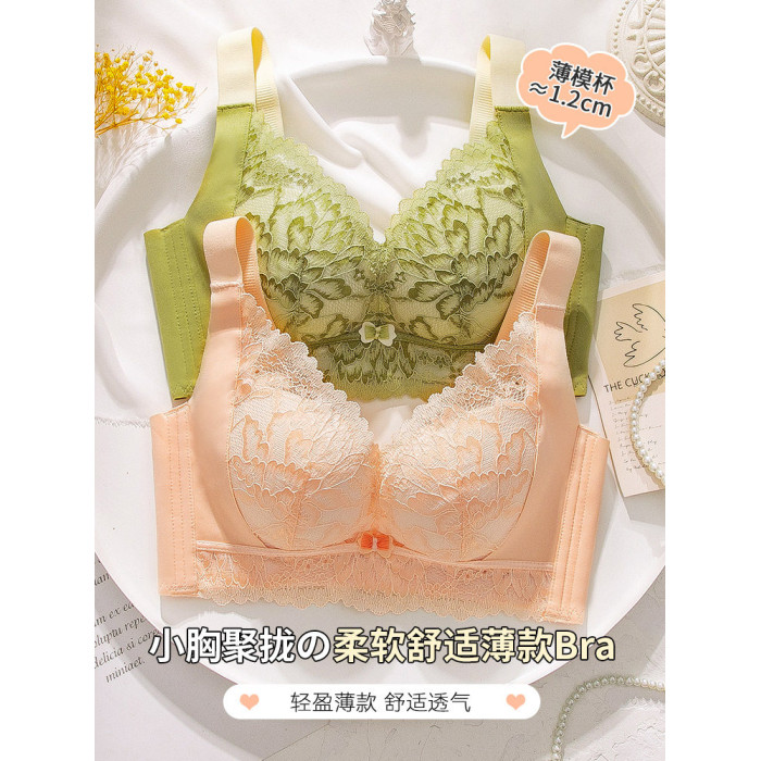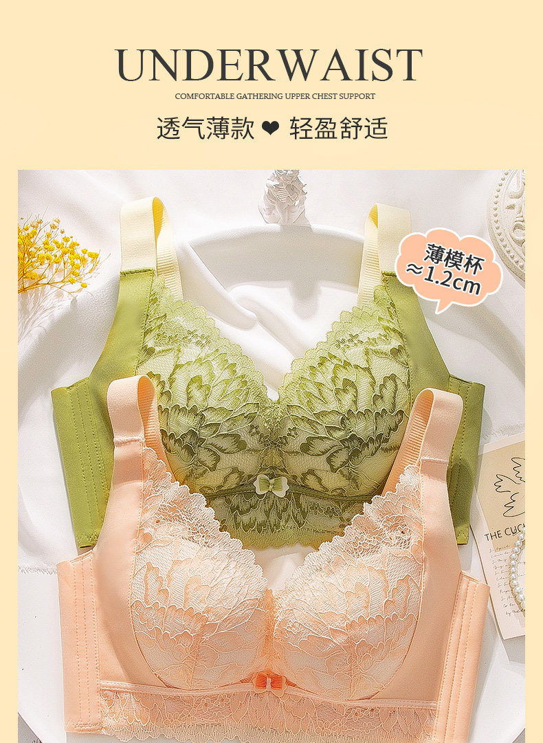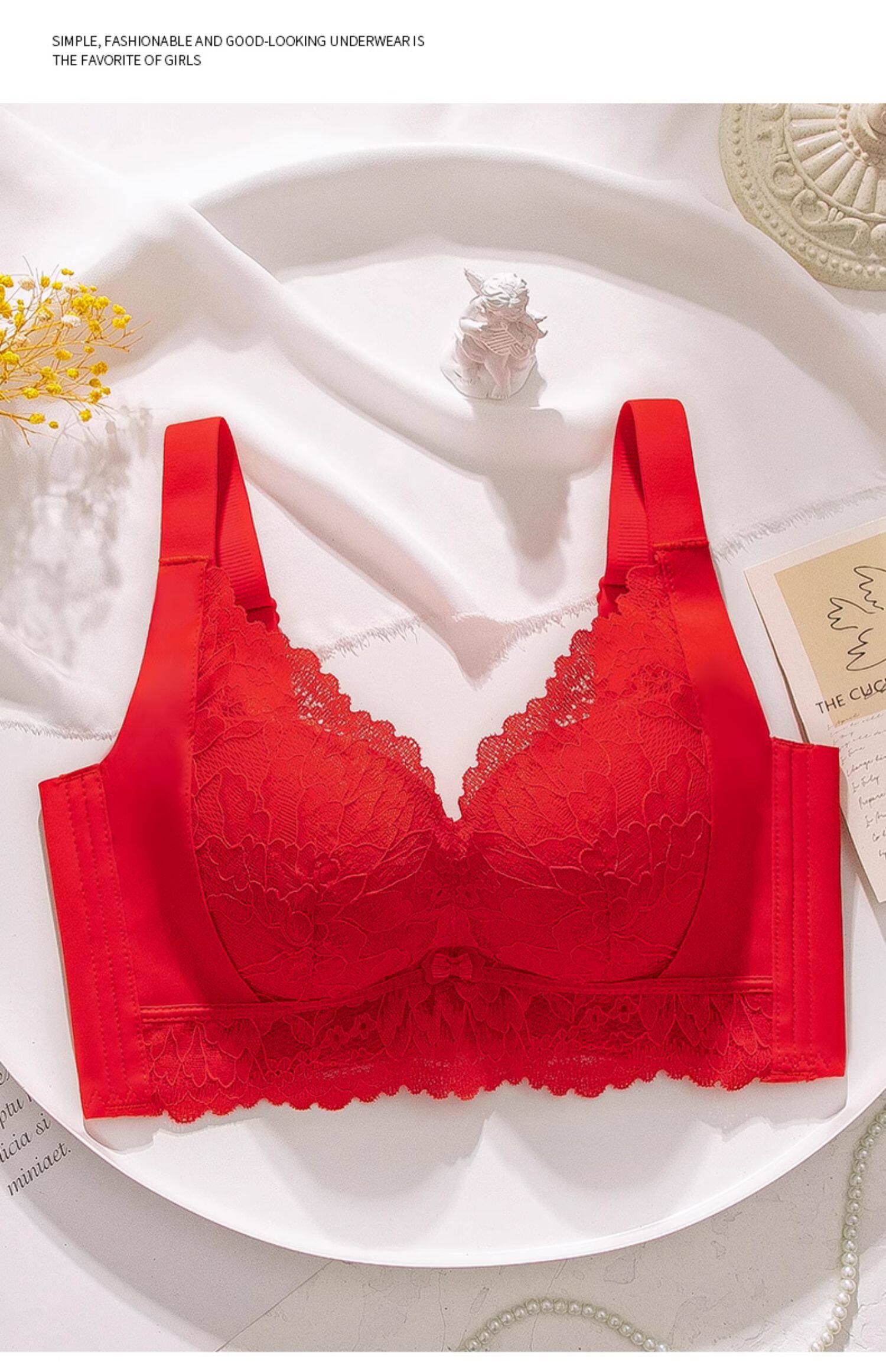 本命年紅色內衣女聚攏小胸薄款1.2cm上托收副乳手掌杯無鋼圈文胸